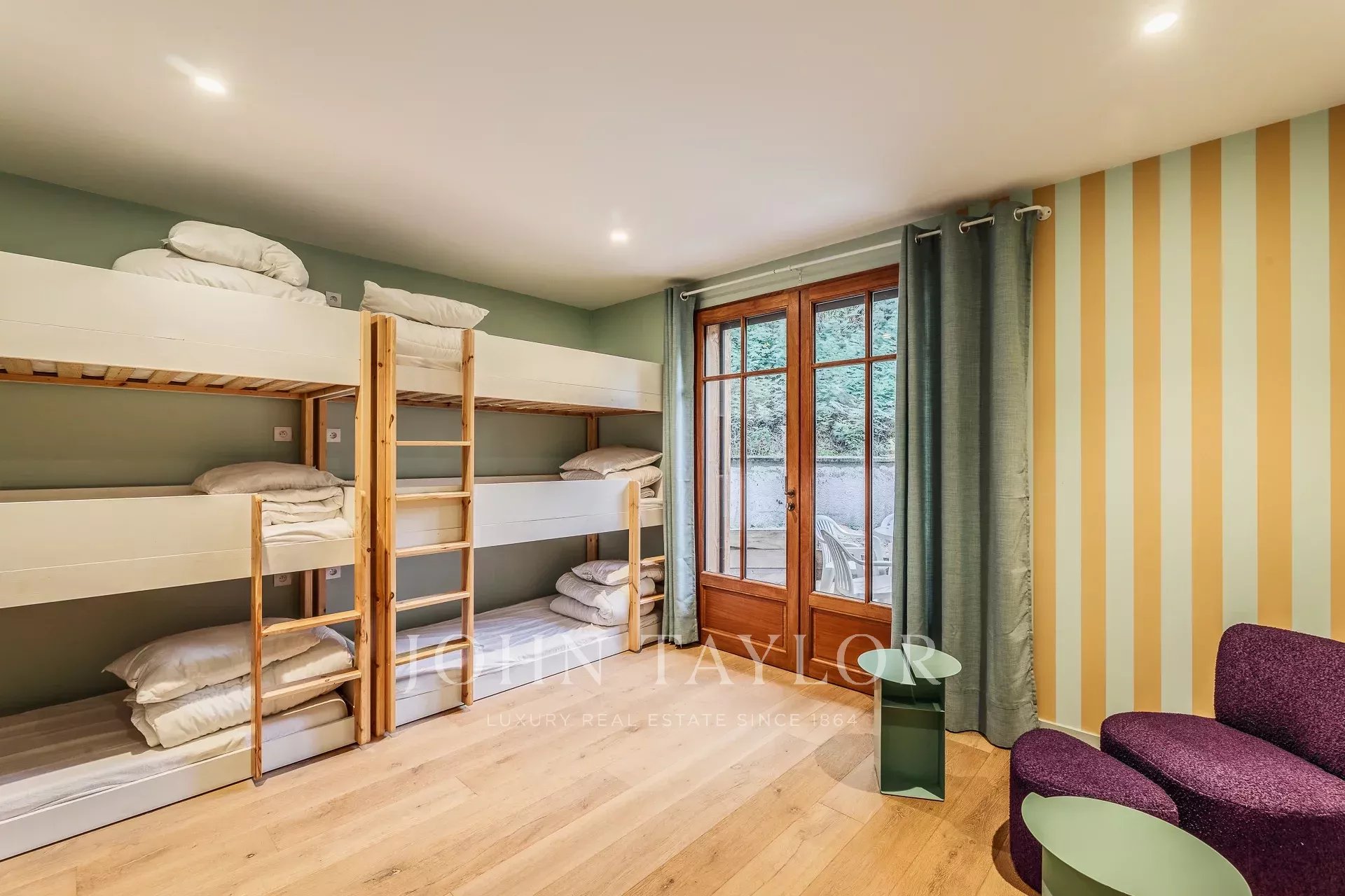Tutto è stato pensato per far sì che ogni ospite sia a proprio agio: al piano terra ci sono due camere matrimoniali, di cui una superba suite padronale, e un ufficio perfetto per il telelavoro. Un ampio dormitorio da sei posti letto accoglie giovani e meno giovani, ognuno con doccia e servizi privati.