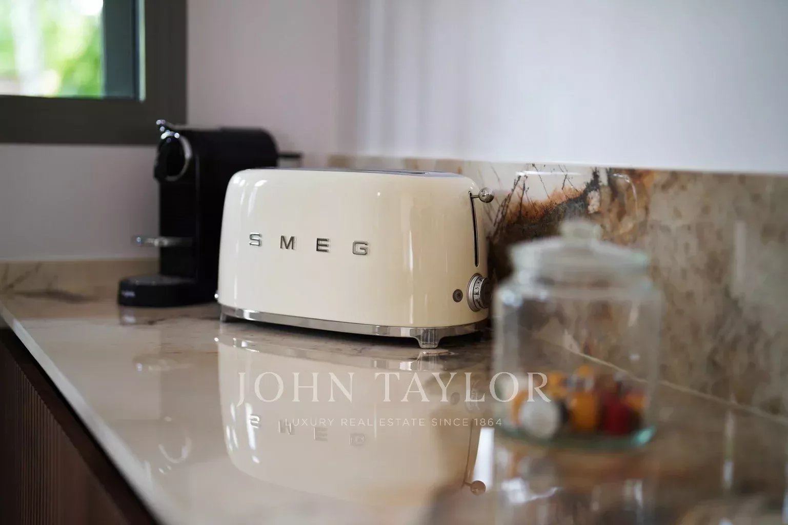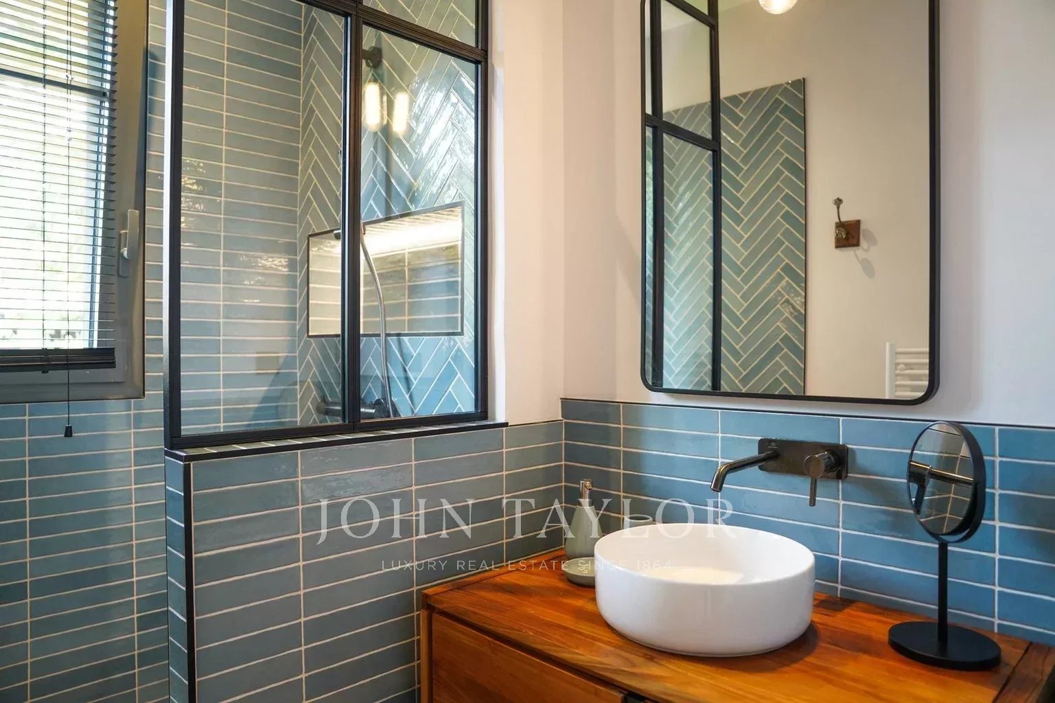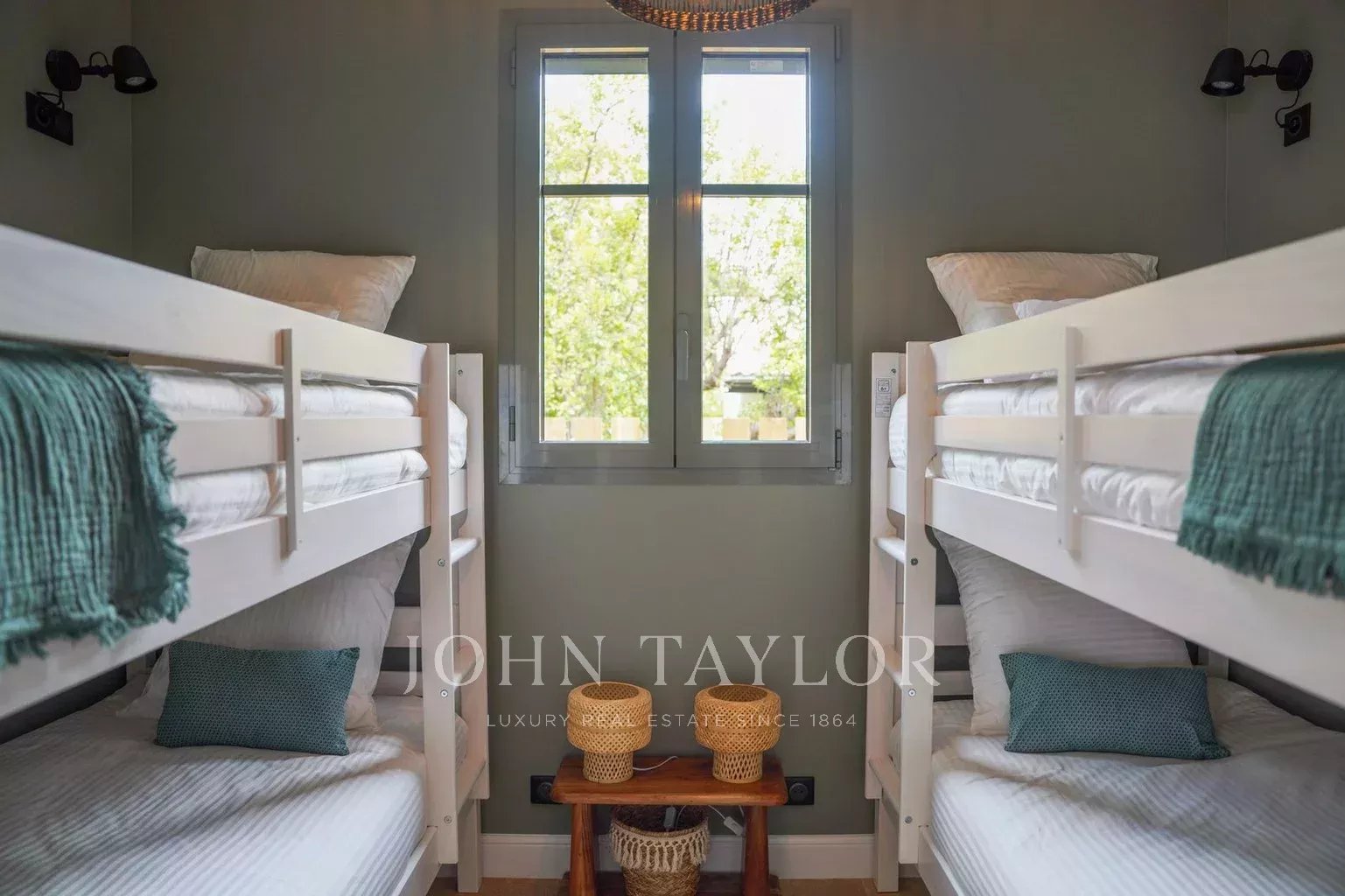 Due terrazze esposte a est e a ovest permettono di godere del sole in qualsiasi momento della giornata. All'esterno si trovano una piscina riscaldata di 6 x 2,5 m protetta da una tapparella immersa, una cucina estiva con plancha e lavello, un WC esterno e un campo da pétanque illuminato da luci "guinguette". L'arredamento da giardino FERMOB comprende un grande tavolo per 10-12 persone, sedie a sdraio e mobili da giardino.