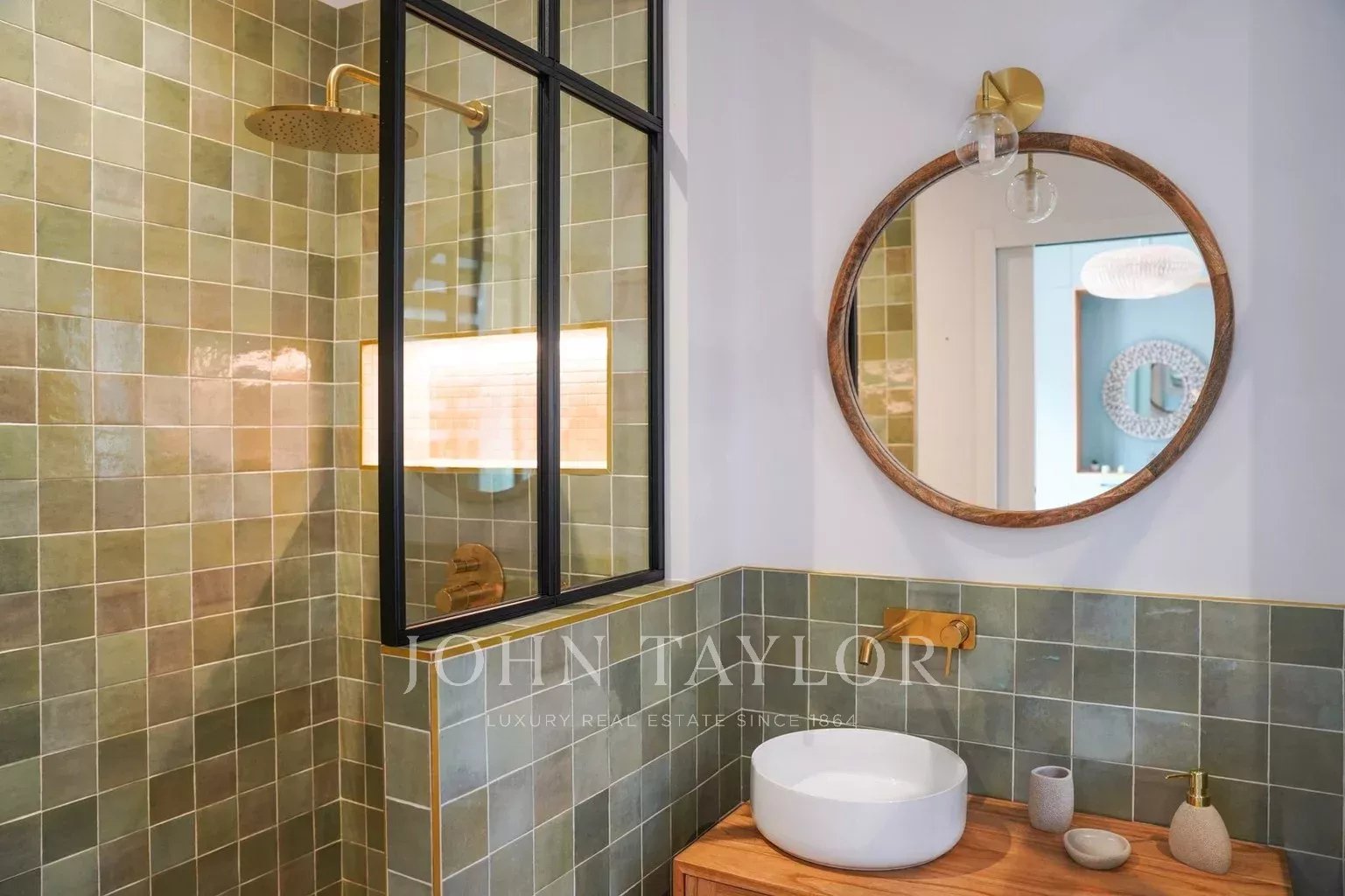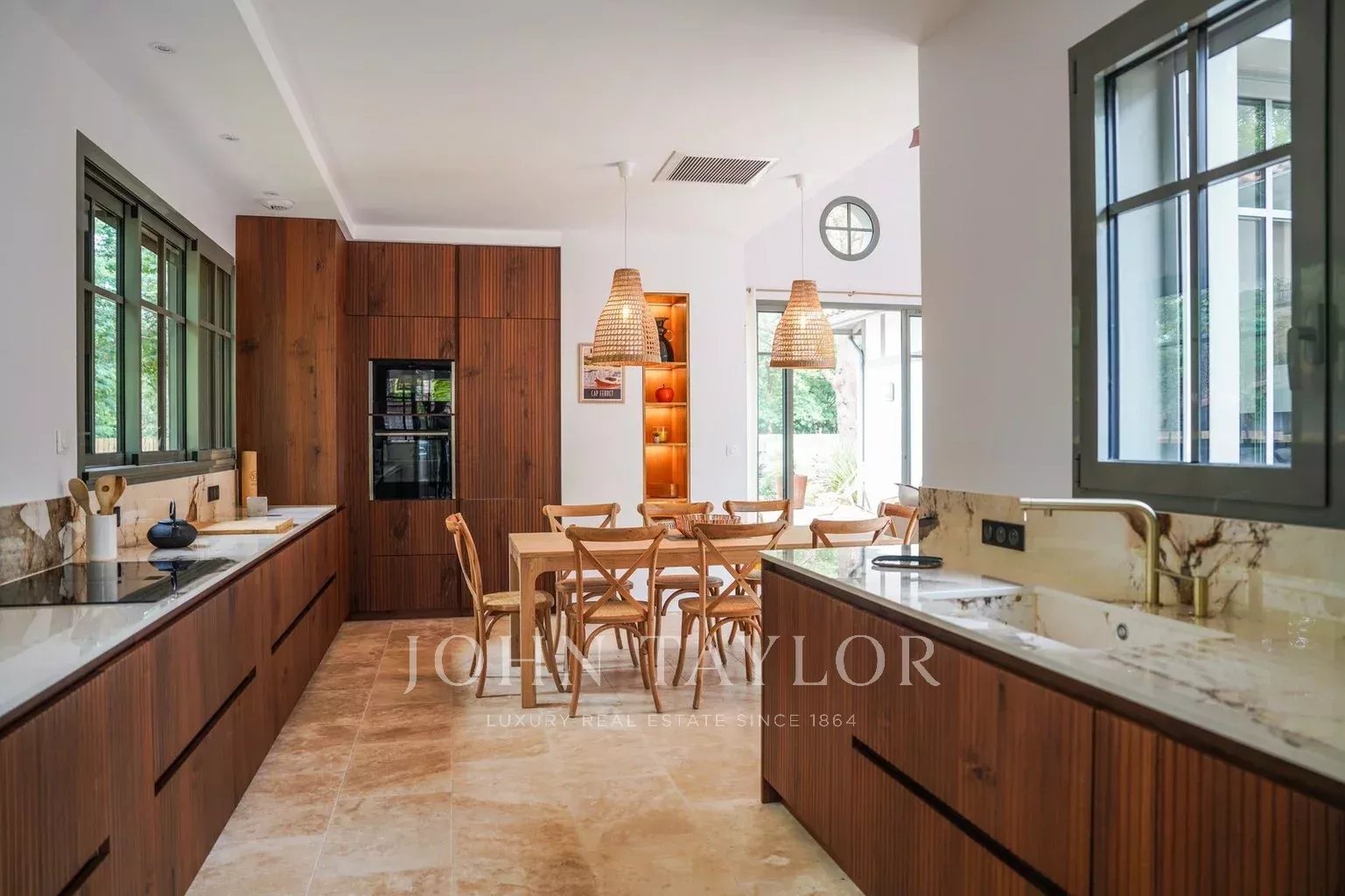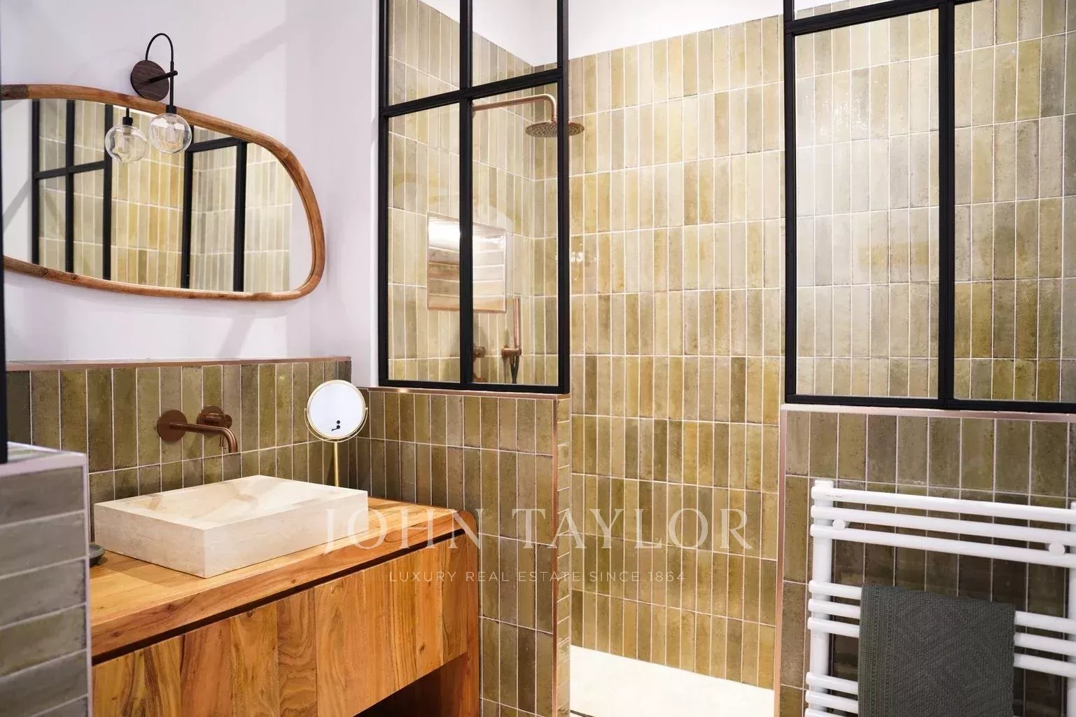 Due terrazze esposte a est e a ovest permettono di godere del sole in qualsiasi momento della giornata. All'esterno si trovano una piscina riscaldata di 6 x 2,5 m protetta da una tapparella immersa, una cucina estiva con plancha e lavello, un WC esterno e un campo da pétanque illuminato da luci "guinguette". L'arredamento da giardino FERMOB comprende un grande tavolo per 10-12 persone, sedie a sdraio e mobili da giardino.