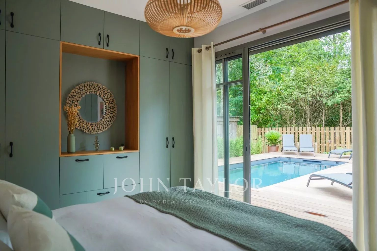 Situata a Petit Piquey, a pochi minuti dalla Pointe aux Chevaux sulla penisola di Cap Ferret, Villa La Musicienne è una nuova proprietà ispirata alle case basco-landesi del bacino. Può ospitare fino a 12 persone ed è ideale per vacanze in famiglia o con amici.