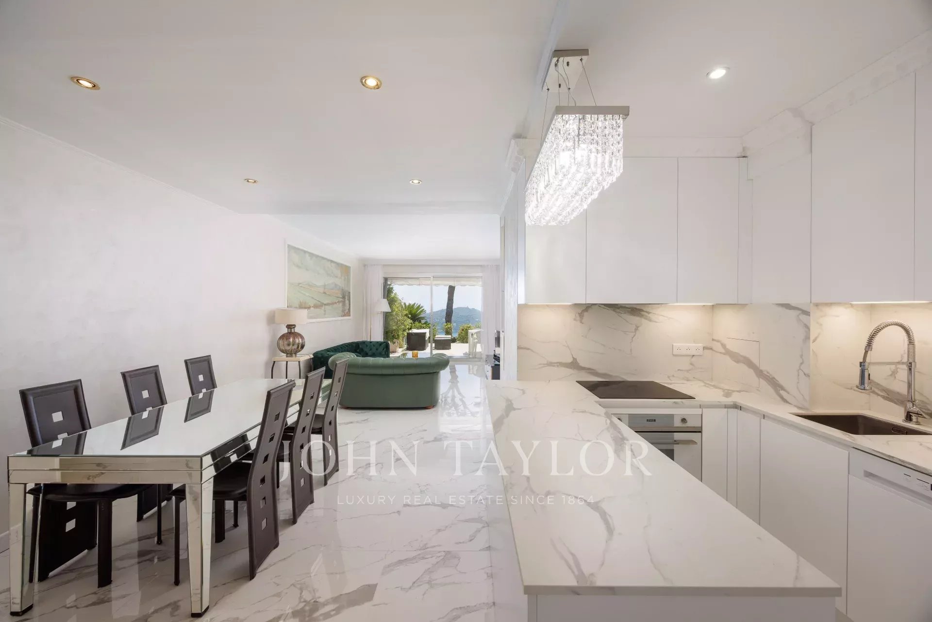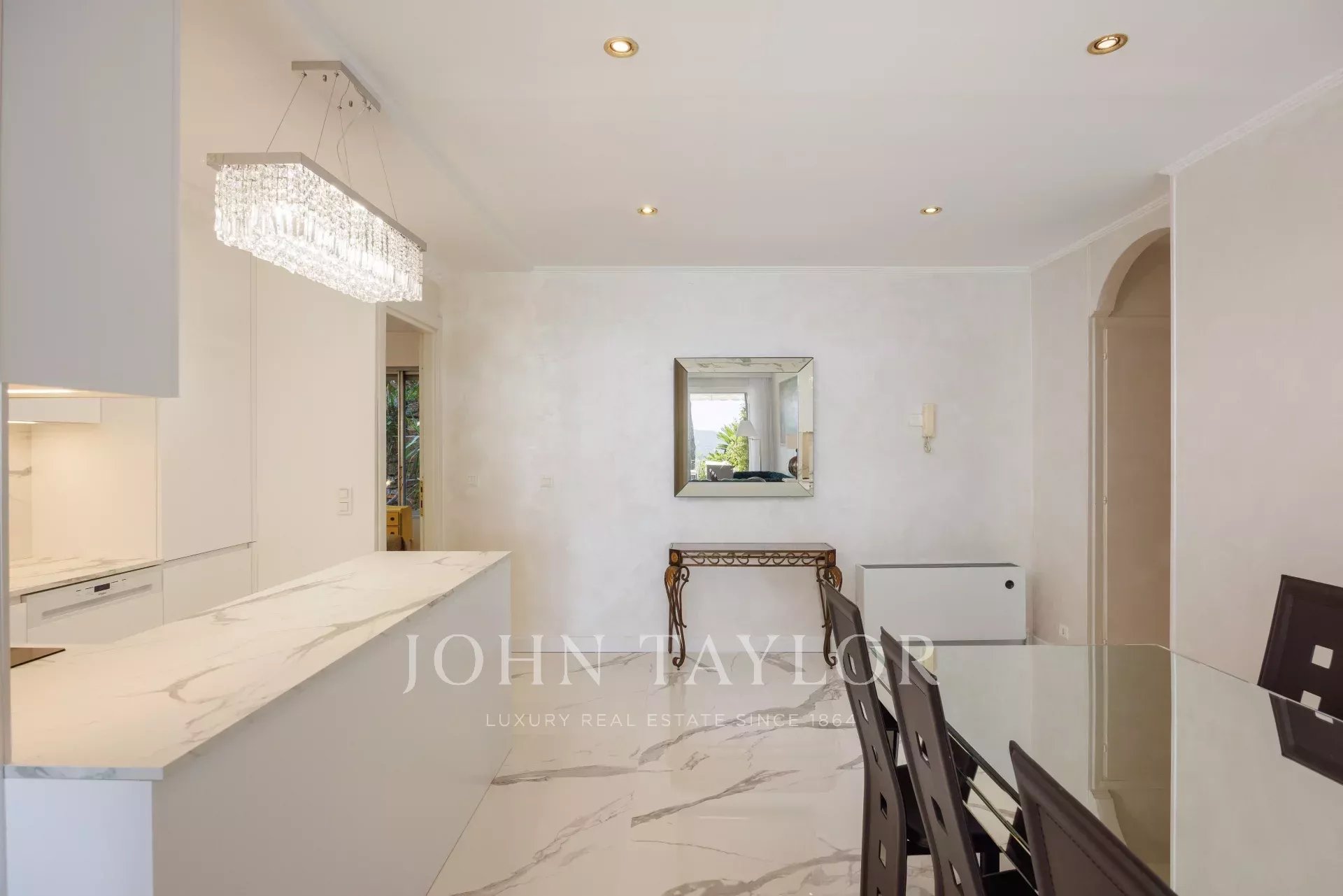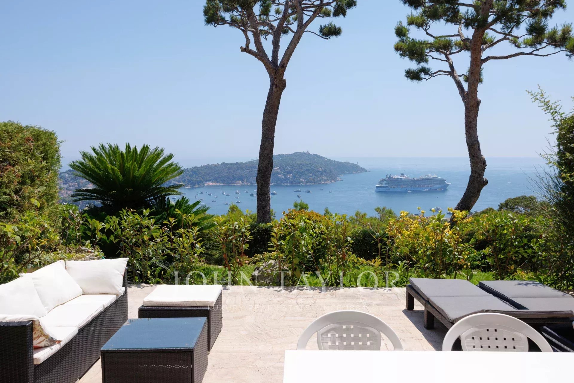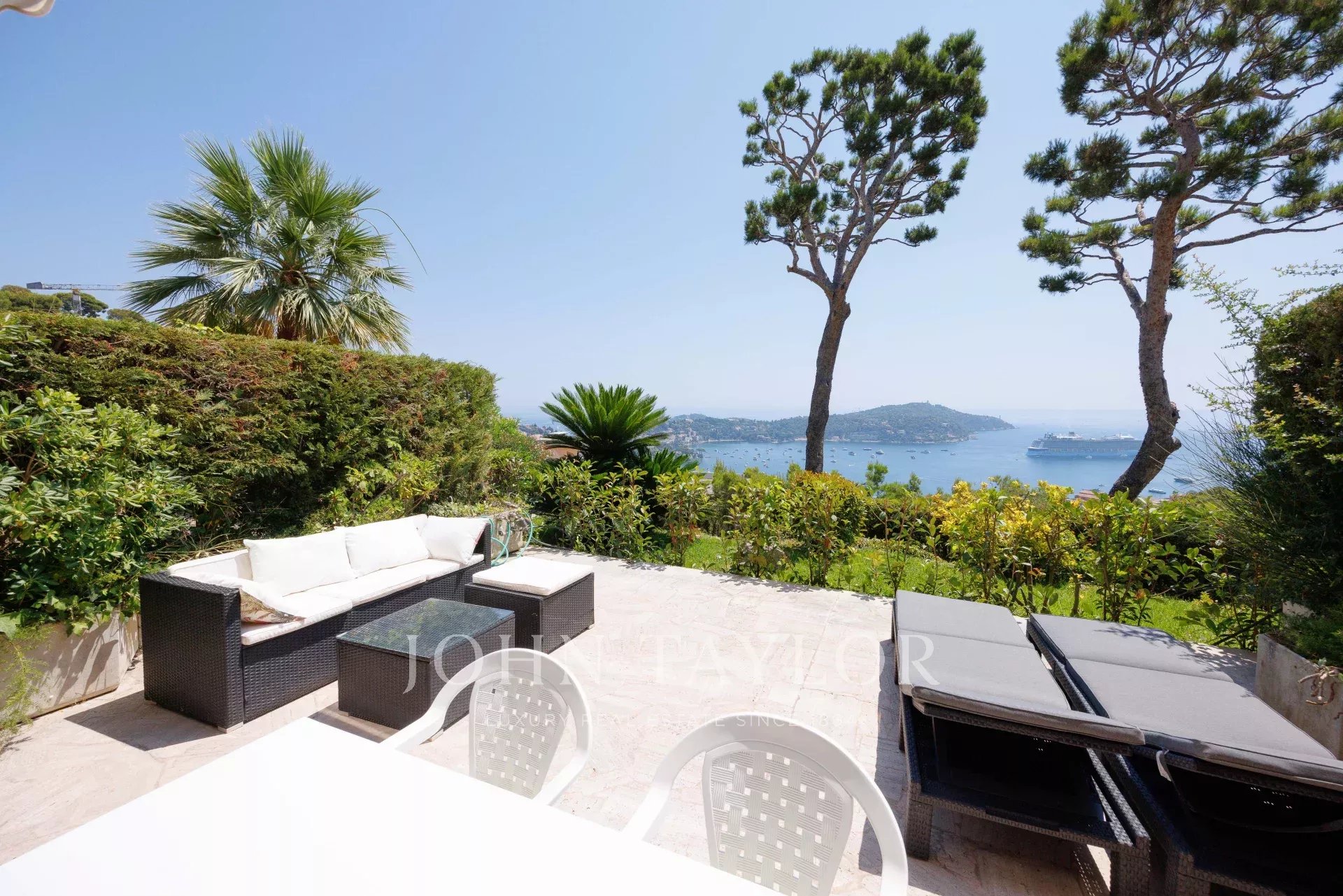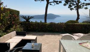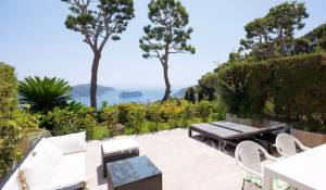 In una residenza lussuosa e sicura, questo piacevole trilocale (ca. 85 m²) recentemente ristrutturato, su un livello di giardino rialzato con una terrazza di 37 m², offre una bella vista sul mare e su Cap Ferrat.