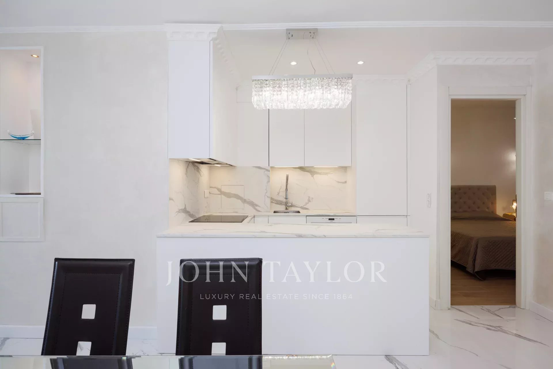 È composto da un ingresso, un soggiorno con TV, una camera da letto con bagno privato che si apre sulla terrazza, una seconda camera da letto con bagno privato con doccia e una cucina a vista attrezzata. Aria condizionata nelle camere da letto.