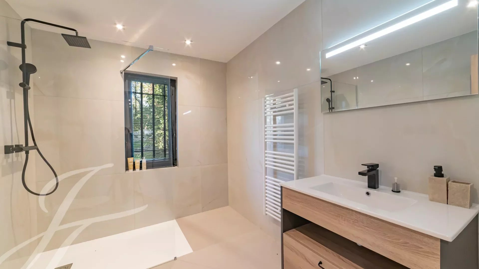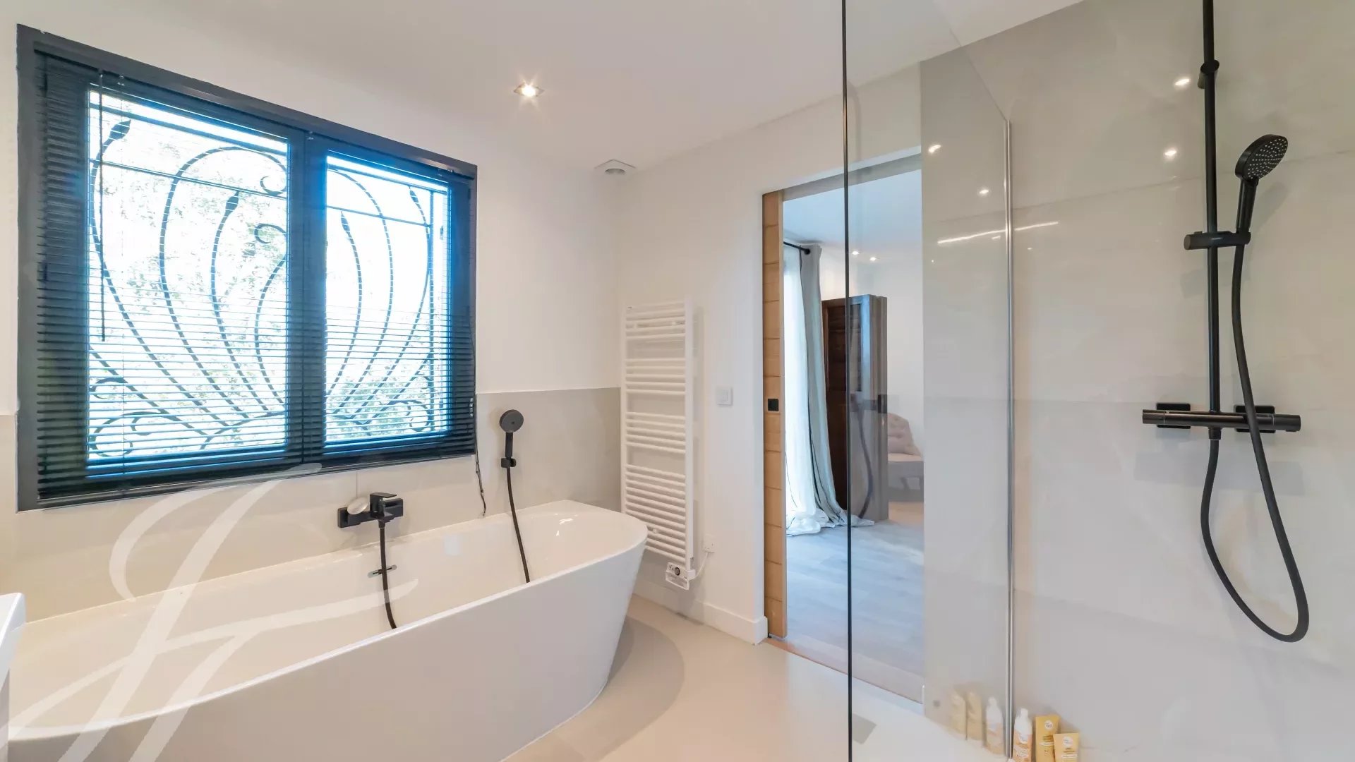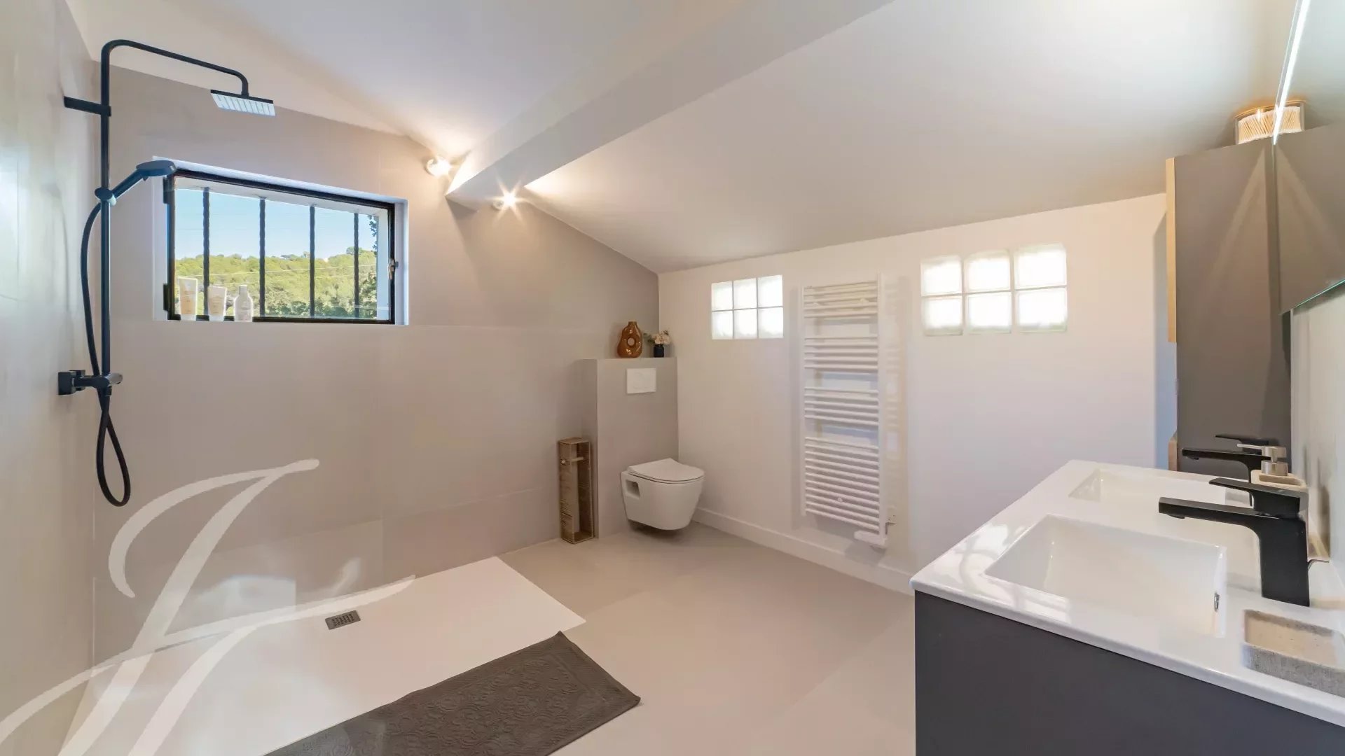 In una zona molto ricercata di Mougins, vicino ai negozi e al villaggio, questa villa di 285 m2 è completamente climatizzata e dispone di una bella piscina.