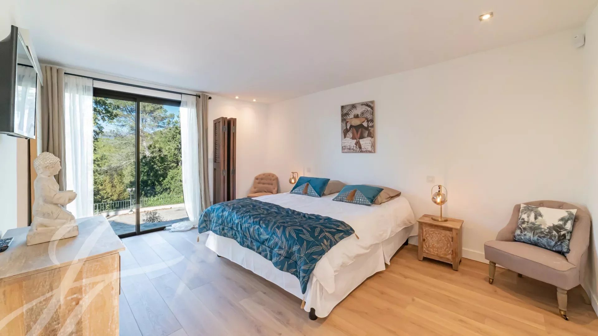 In una zona molto ricercata di Mougins, vicino ai negozi e al villaggio, questa villa di 250 m2 è completamente climatizzata e dispone di una bella piscina.