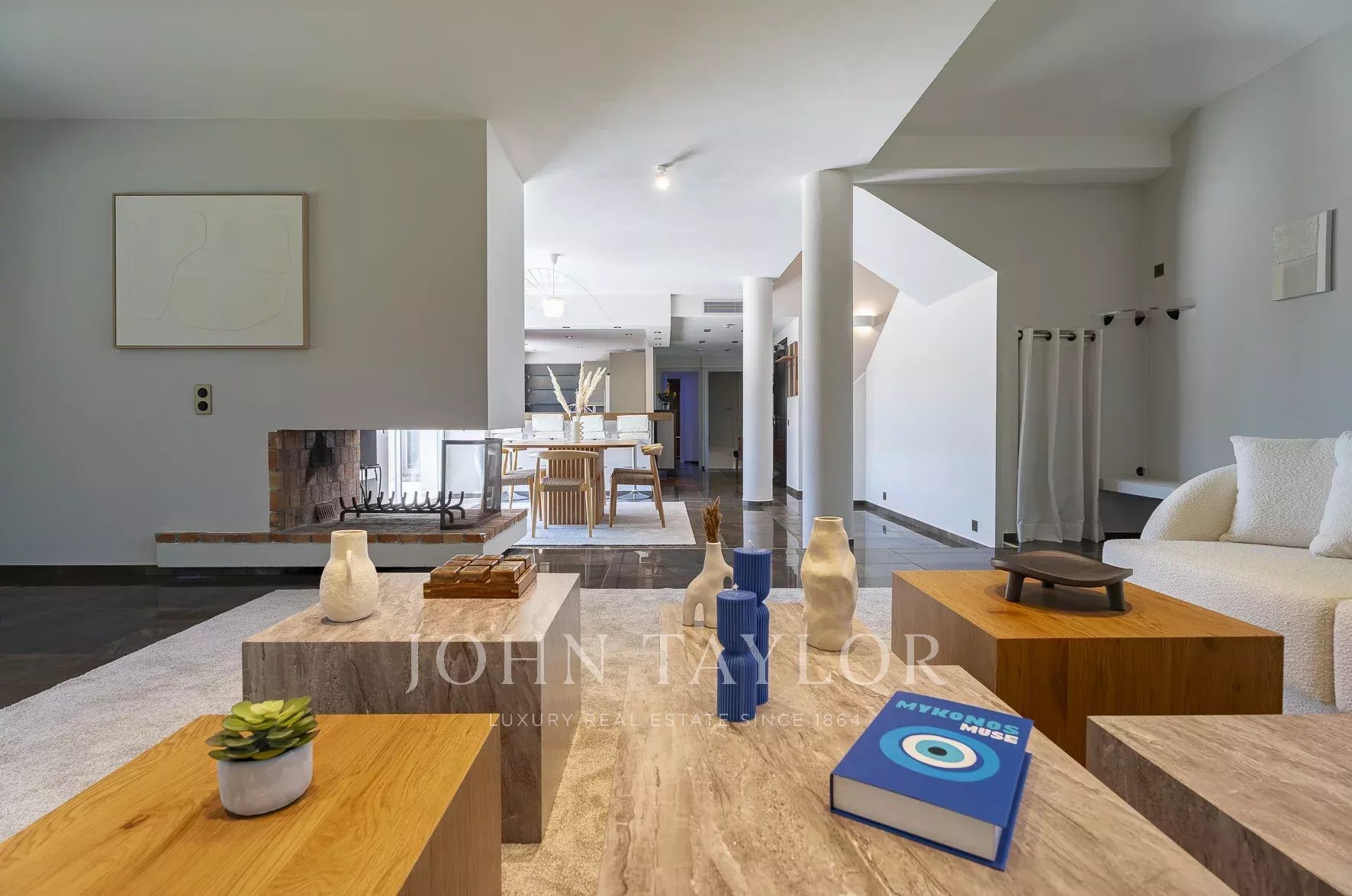 Luminoso soggiorno con camino