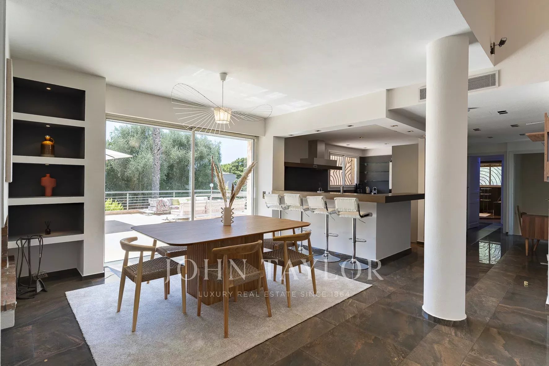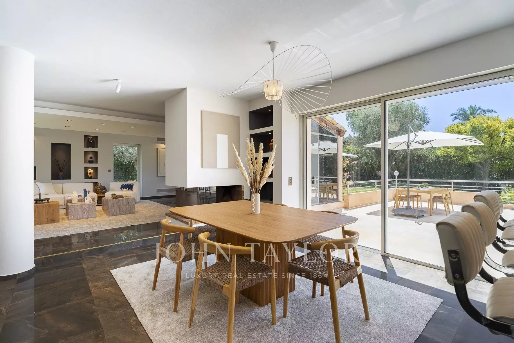 Situata in una zona residenziale di Mougins, vicino al vecchio villaggio, questa villa offre un ambiente di vita tranquillo e raffinato.