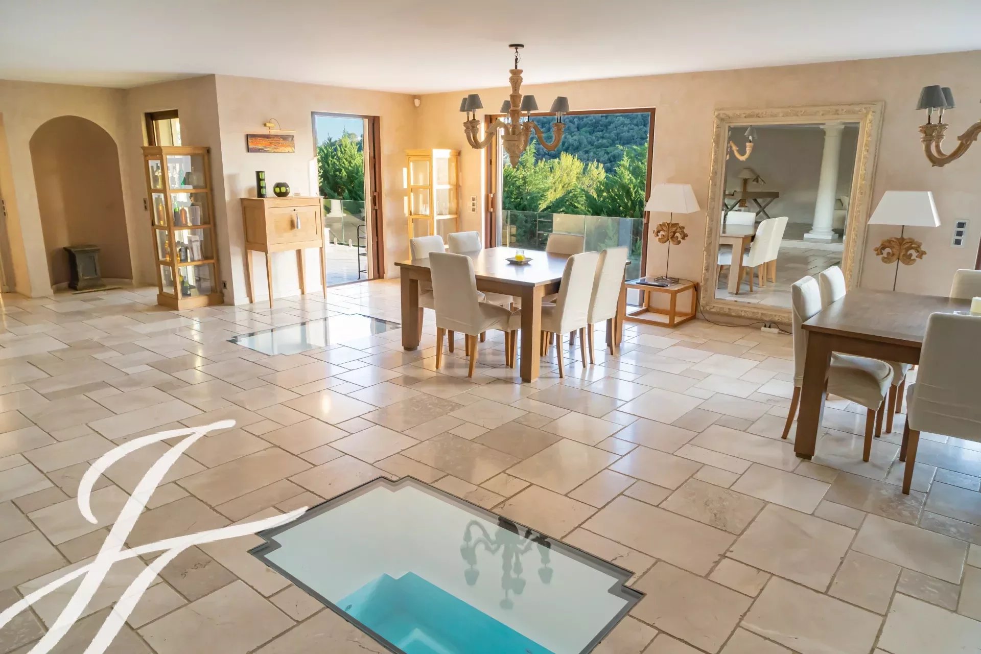 Situata in posizione ideale, a soli 10 minuti da Saint-Paul-de-Vence e dalle spiagge di Cagnes-sur-Mer e a 15 minuti dall'aeroporto di Nizza, questa eccezionale villa di quasi 550 m² è immersa in un terreno paesaggistico di circa 2.488 m², che offre un ambiente di vita lussuoso e sereno.