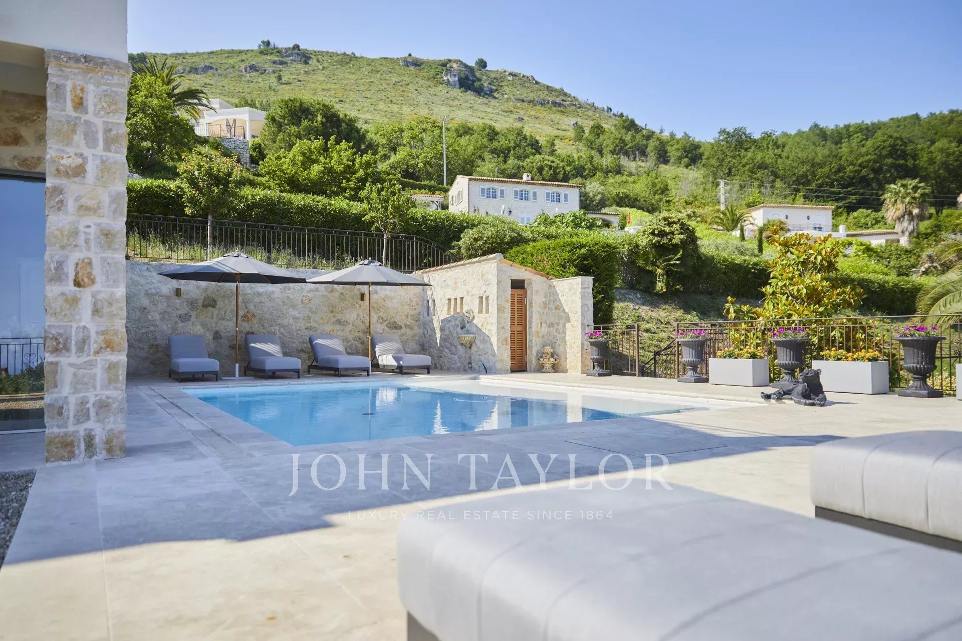 Villa sontuosa di 300m2 situata in totale tranquillità nelle colline sopra Tourrettes-sur-Loup, a due passi dal centro storico e dai sentieri escursionistici. Vista magnifica sul mare e sulle colline circostanti.