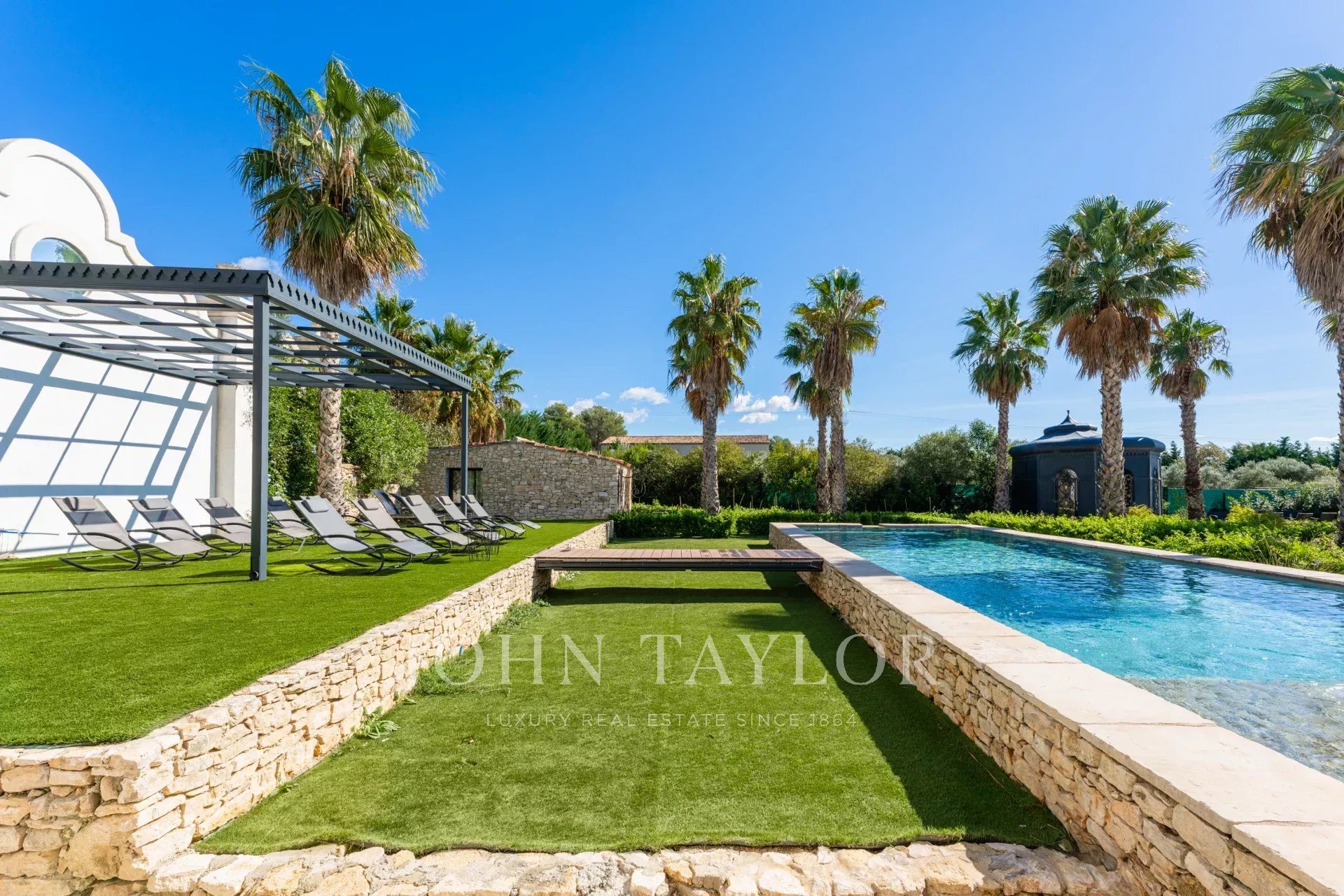 La villa principale offre 6 spaziose camere da letto, ognuna con bagno privato, che garantiscono comfort e privacy per soggiorni indimenticabili. I vasti giardini, veri paradisi di pace, invitano a rilassarsi in un ambiente elegante e raffinato. Potrete inoltre usufruire della piscina esterna e del solarium, ideali per rilassarvi sotto il mite sole provenzale.