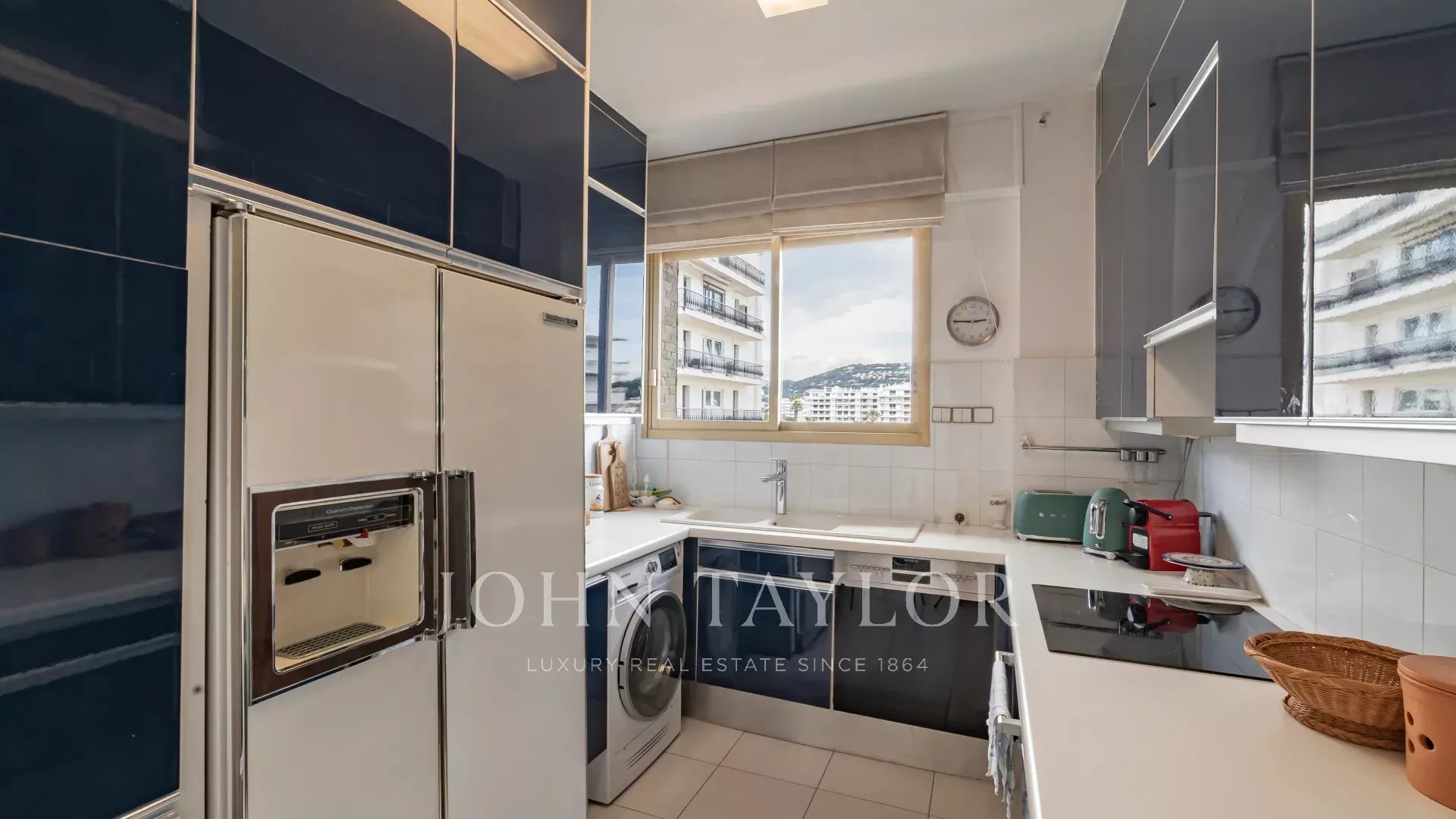 Splendido appartamento duplex all'ultimo piano di un residence sulla Croisette, vicino a Port Canto. Offre una vista ininterrotta sul mare, sull'Esterel e sul porto. L'appartamento occupa il 5° e il 6° piano, con una superficie abitabile di circa 151,43 m² (Loi Carrez), completata da circa 75 m² di terrazze: 25 m² al 5° piano e 50 m² al 6°.