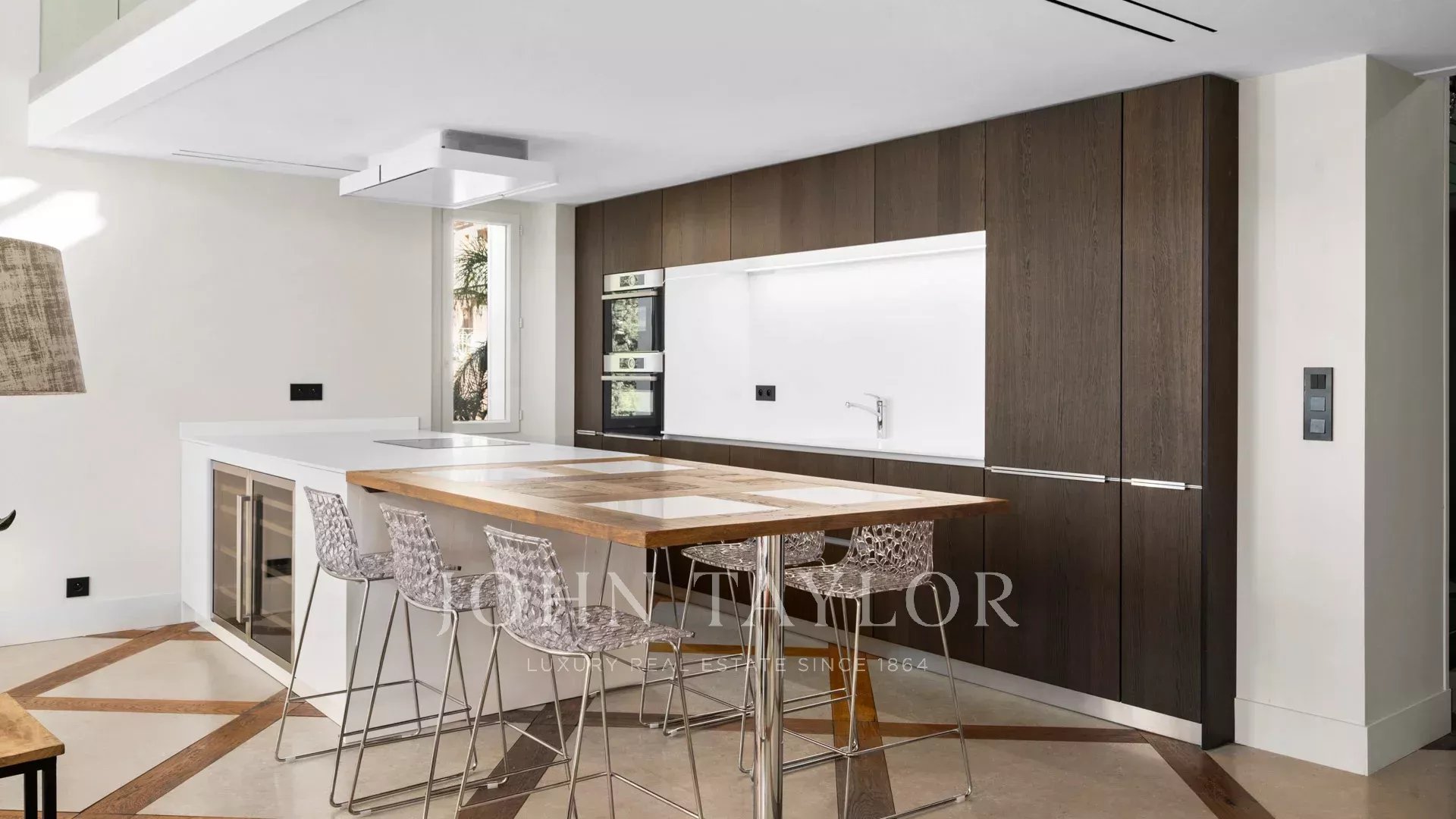 È composto da un soggiorno/sala da pranzo esposto a sud, una cucina completamente attrezzata, una biblioteca/studio al piano rialzato, tre camere da letto e tre bagni con doccia.