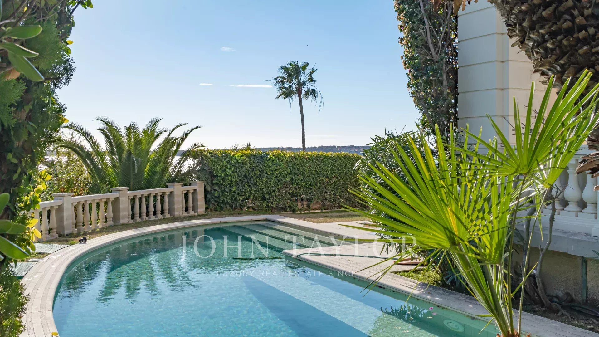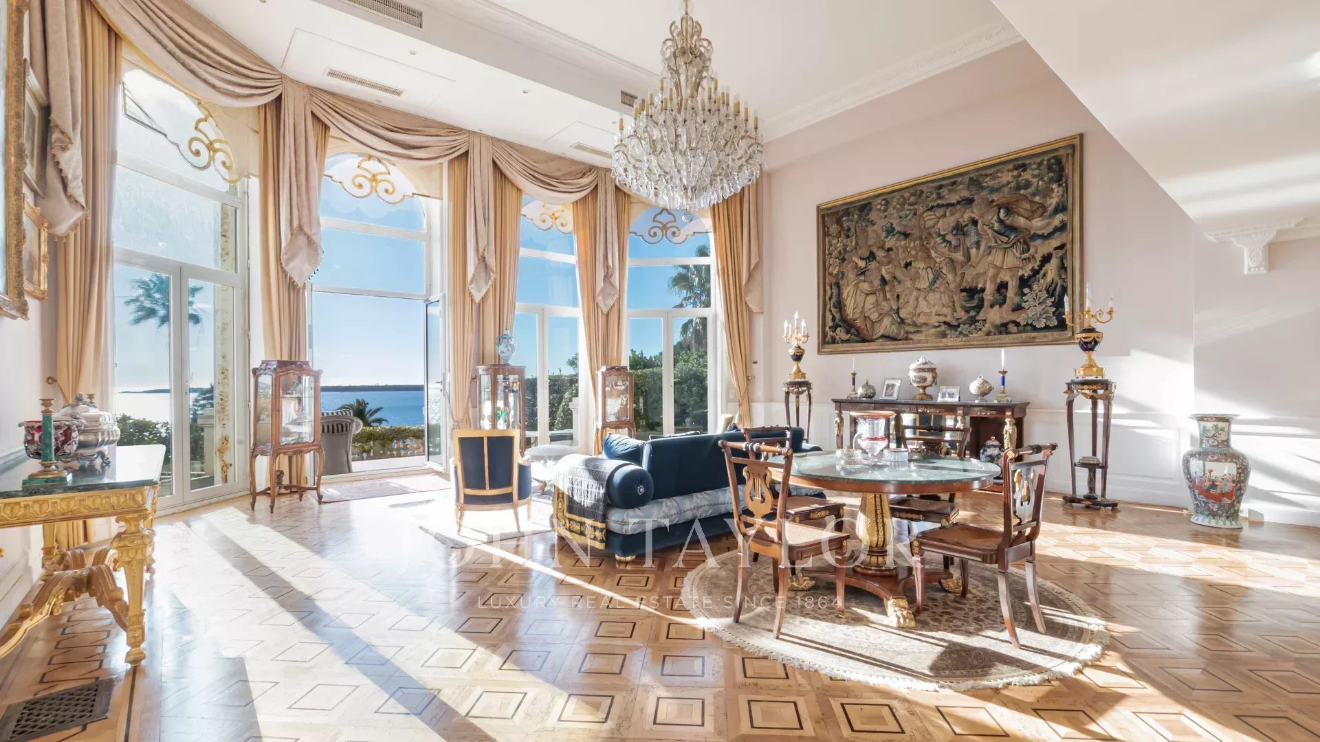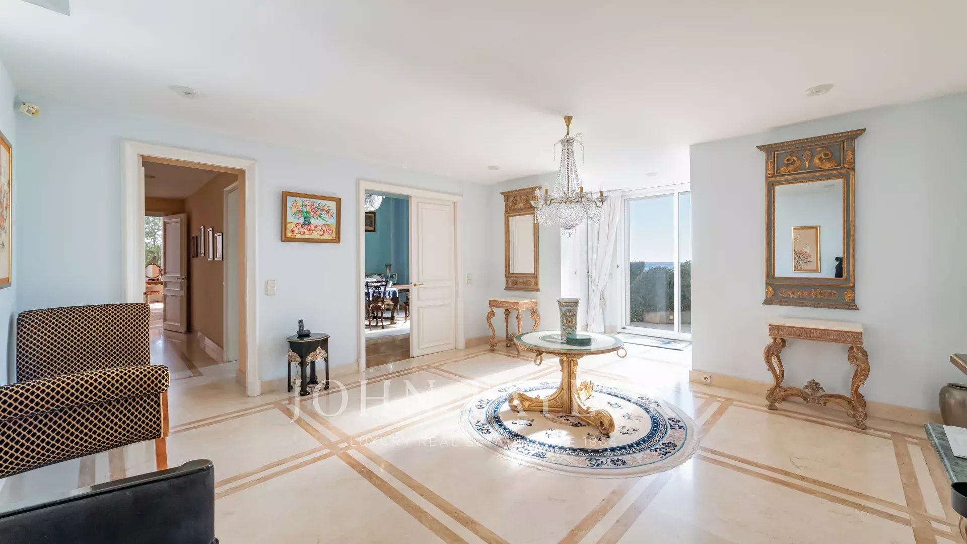 Questo superbo appartamento a livello del giardino vanta circa 450 m² di spazio abitativo. Come la maestosa e luminosa sala di ricevimento con vista sul mare e sull'isola di Sainte Marguerite, la maggior parte delle stanze ha grandi finestre che collegano la casa alla campagna circostante. L'appartamento dispone di 4 camere da letto con bagno, tra cui una bellissima camera da letto principale e uno studio di servizio.