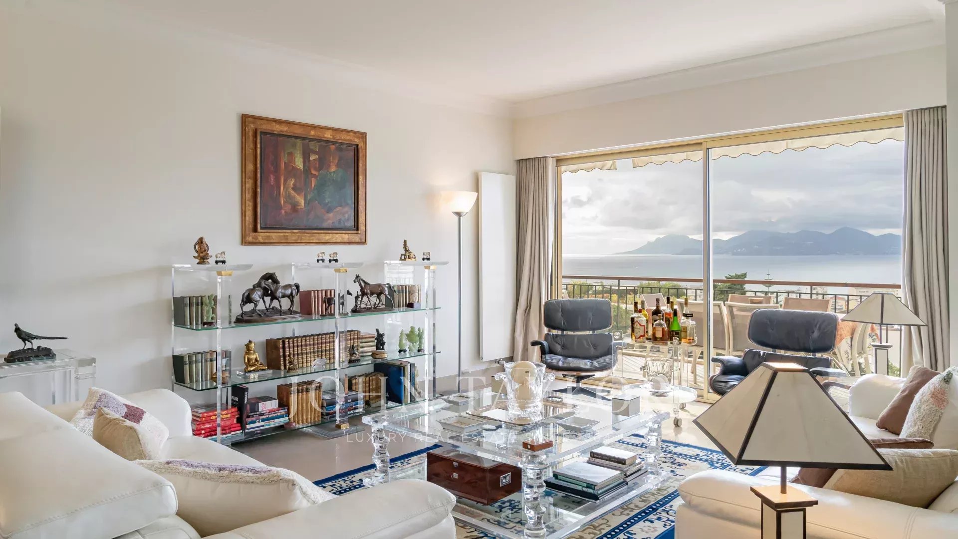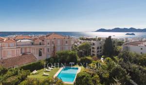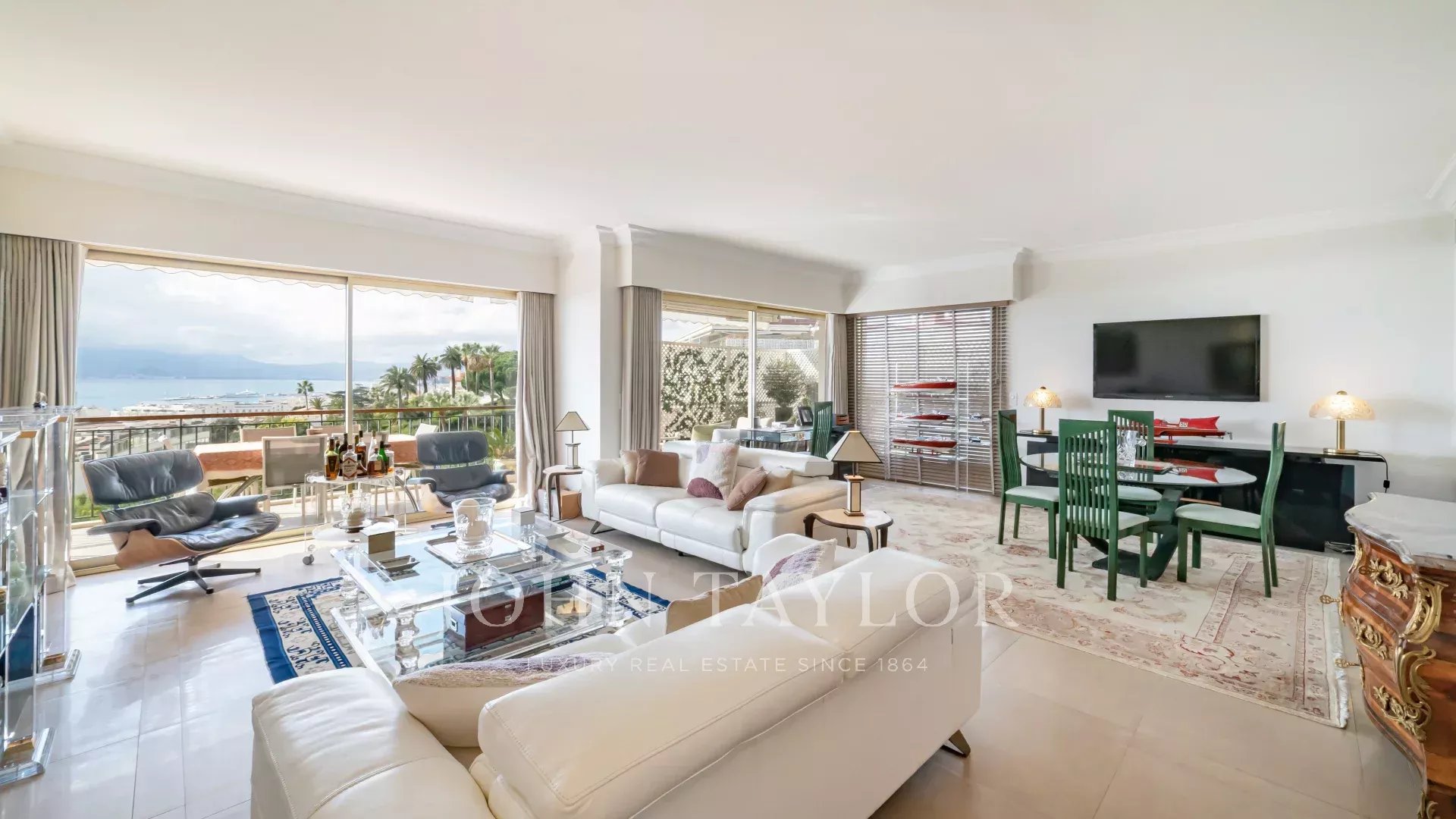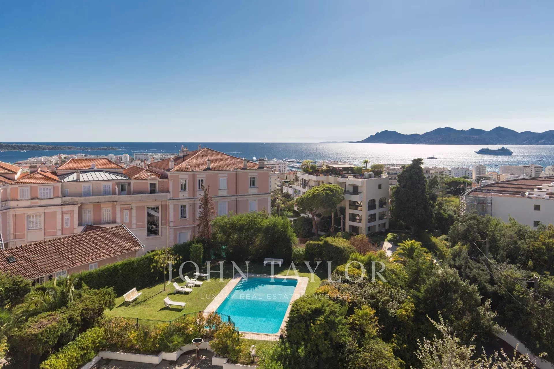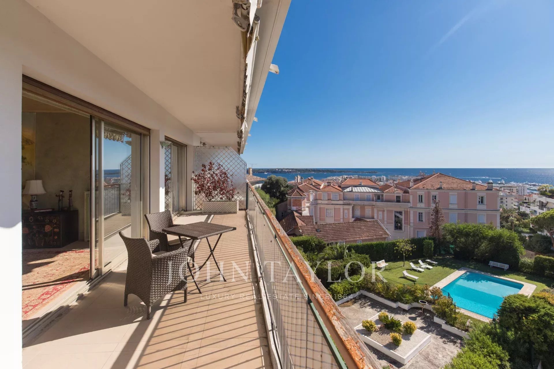 In un piccolo residence sicuro con piscina, a pochi passi dai negozi e dalla Croisette, magnifico appartamento d'angolo di 4 locali con vista panoramica mozzafiato sul mare.