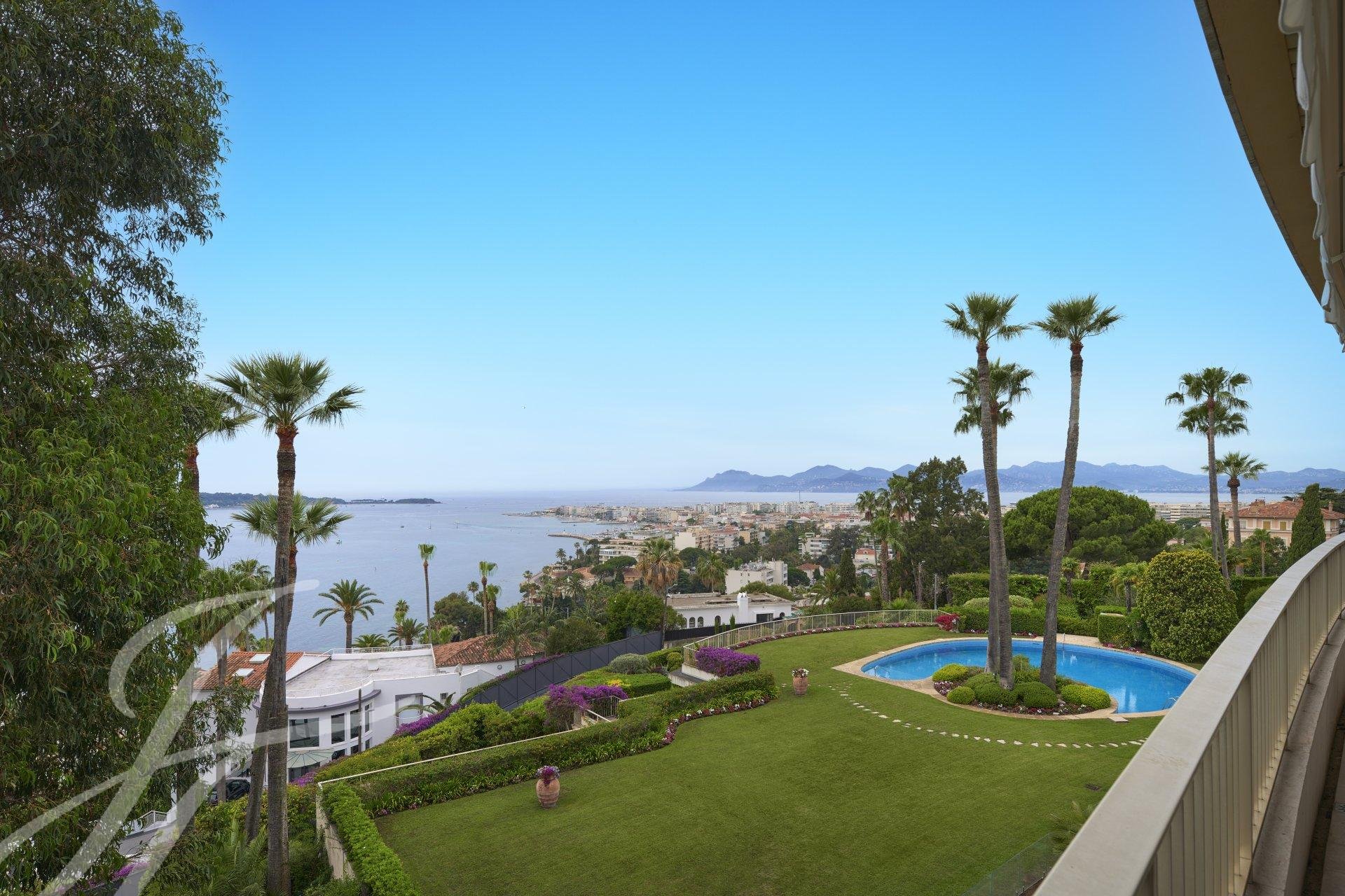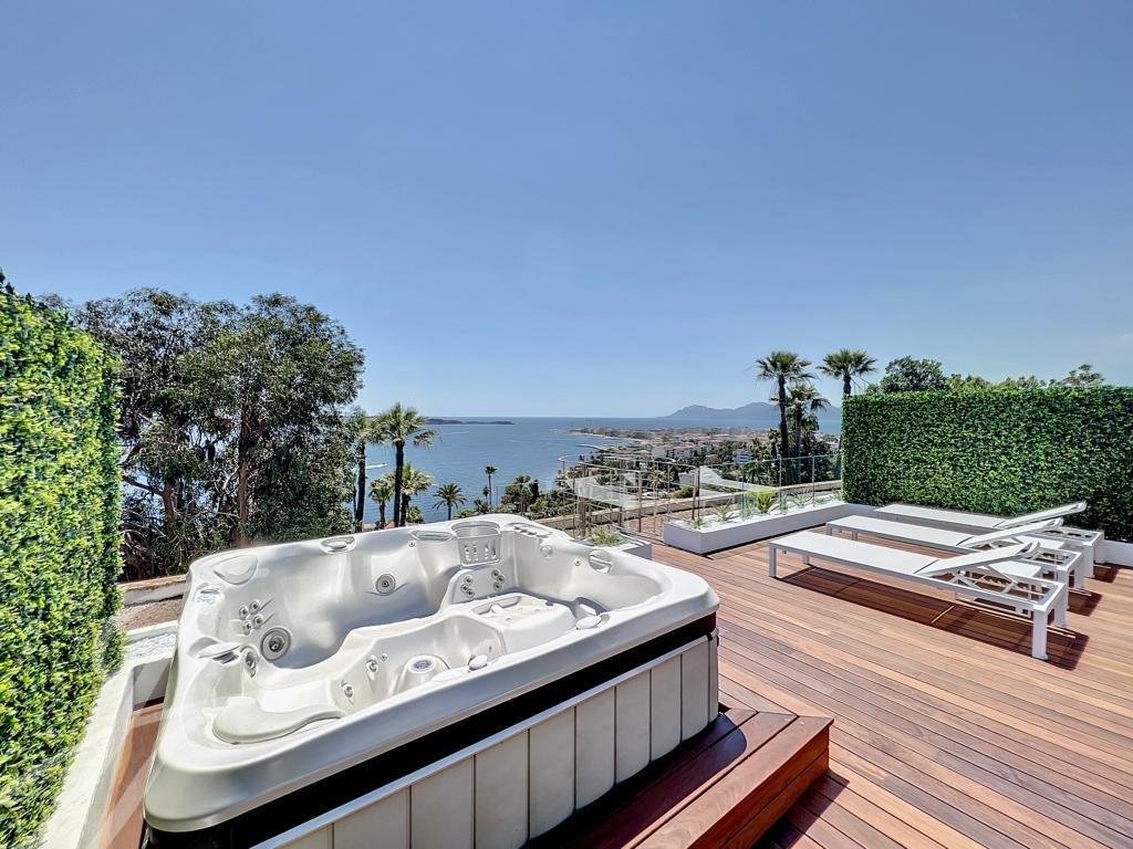 In una residenza di lusso, questo appartamento di 144 m² all'ultimo piano offre una vista panoramica unica sul mare e sulla baia di Cannes.