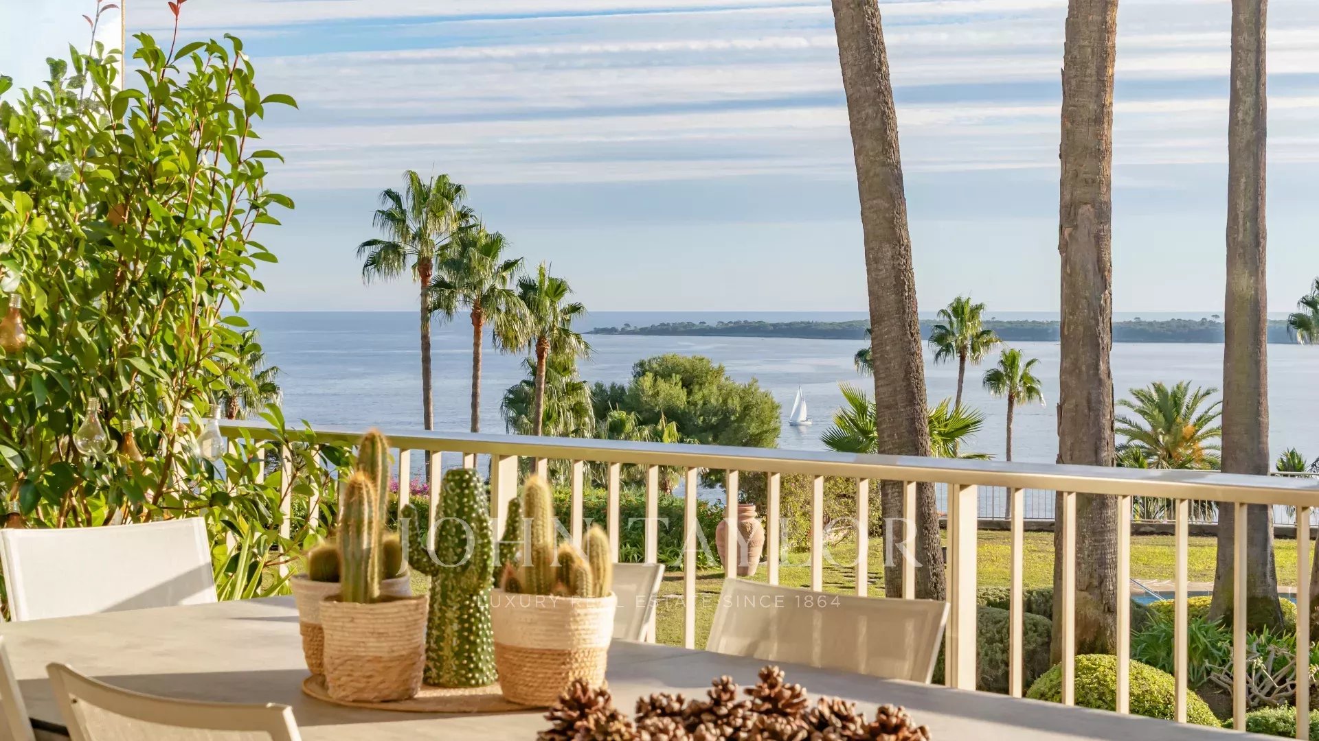 In una residenza di lusso, attraente appartamento d'angolo di 127 m² con ampia terrazza e vista panoramica unica sul mare e sulle isole di Lérins.