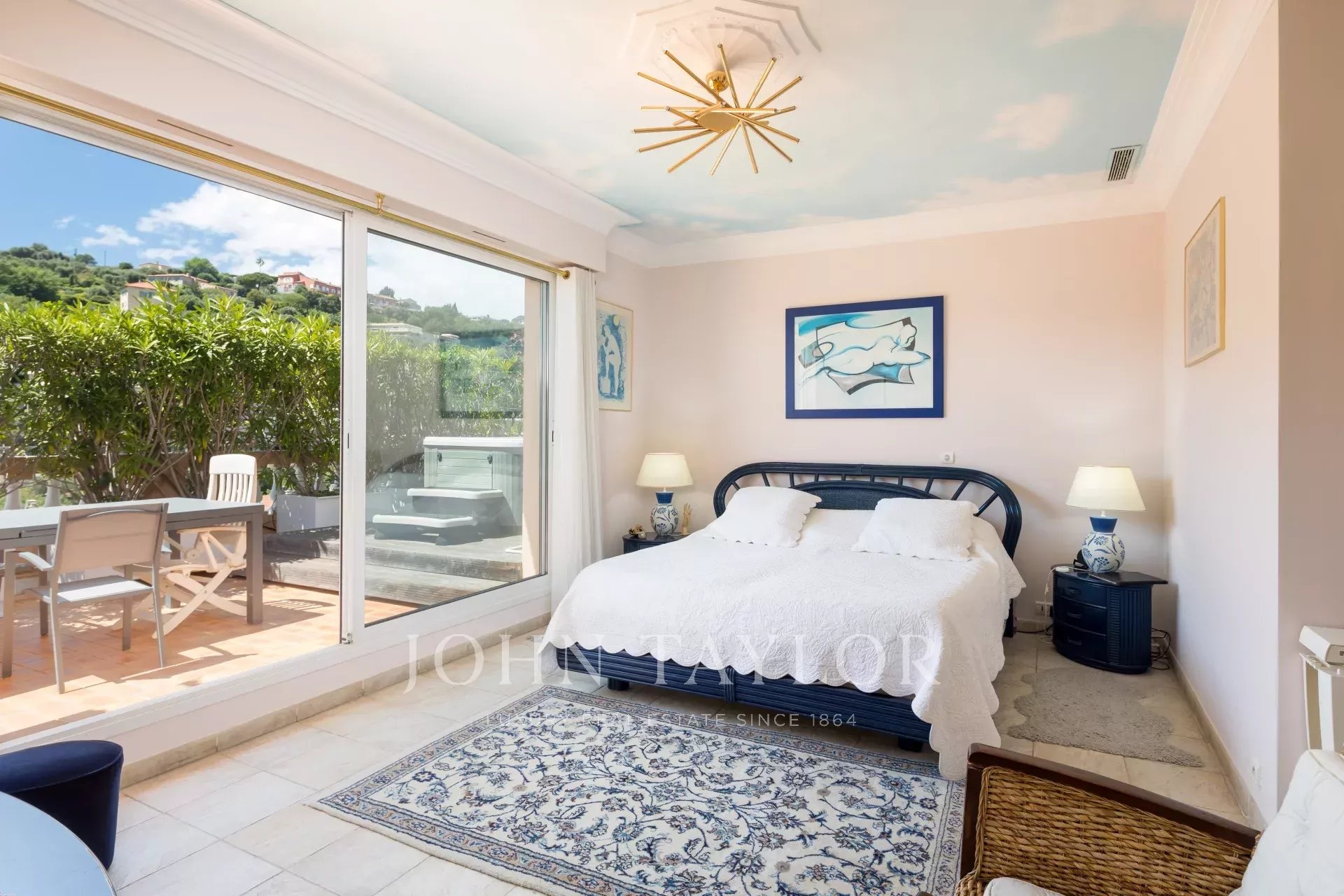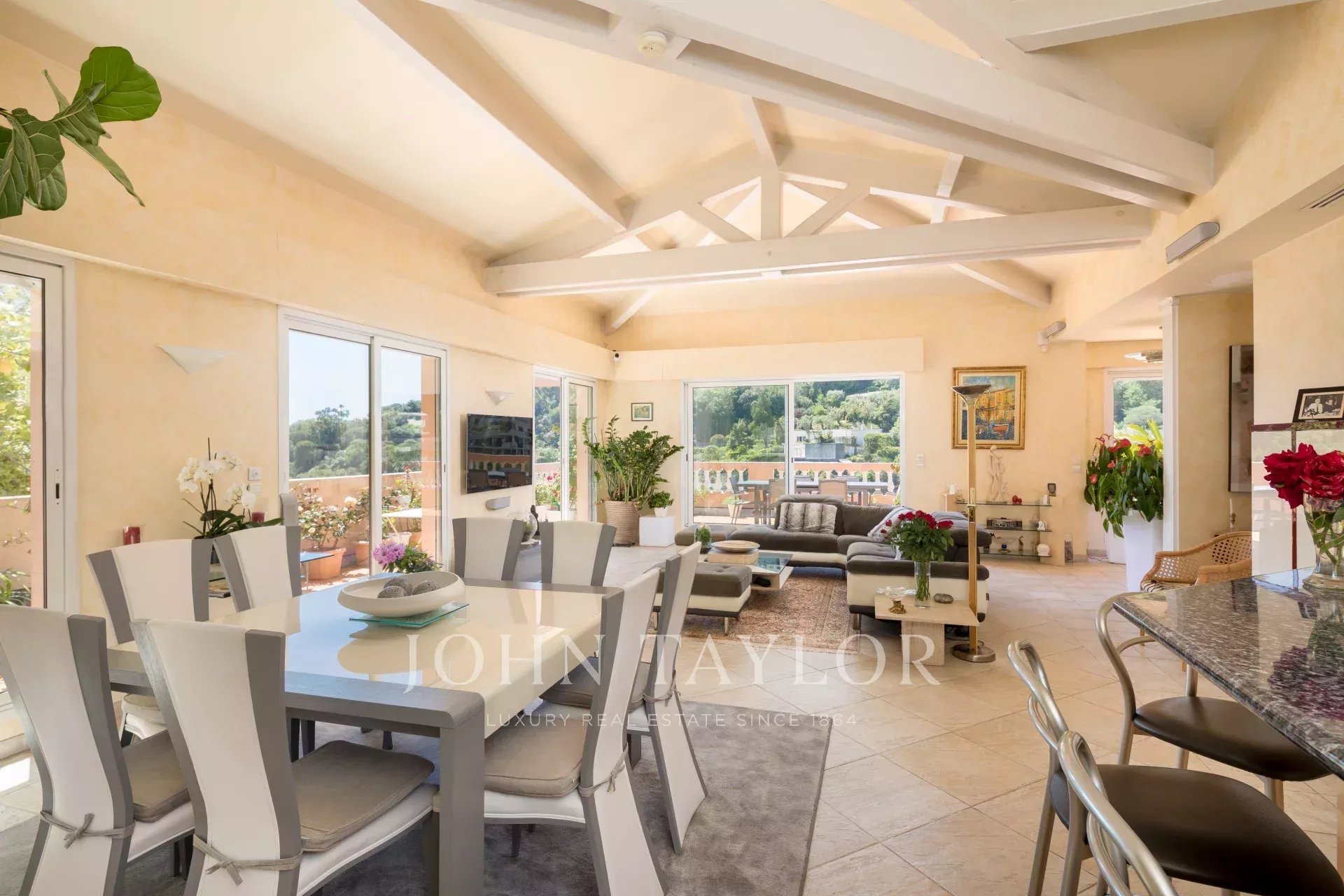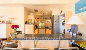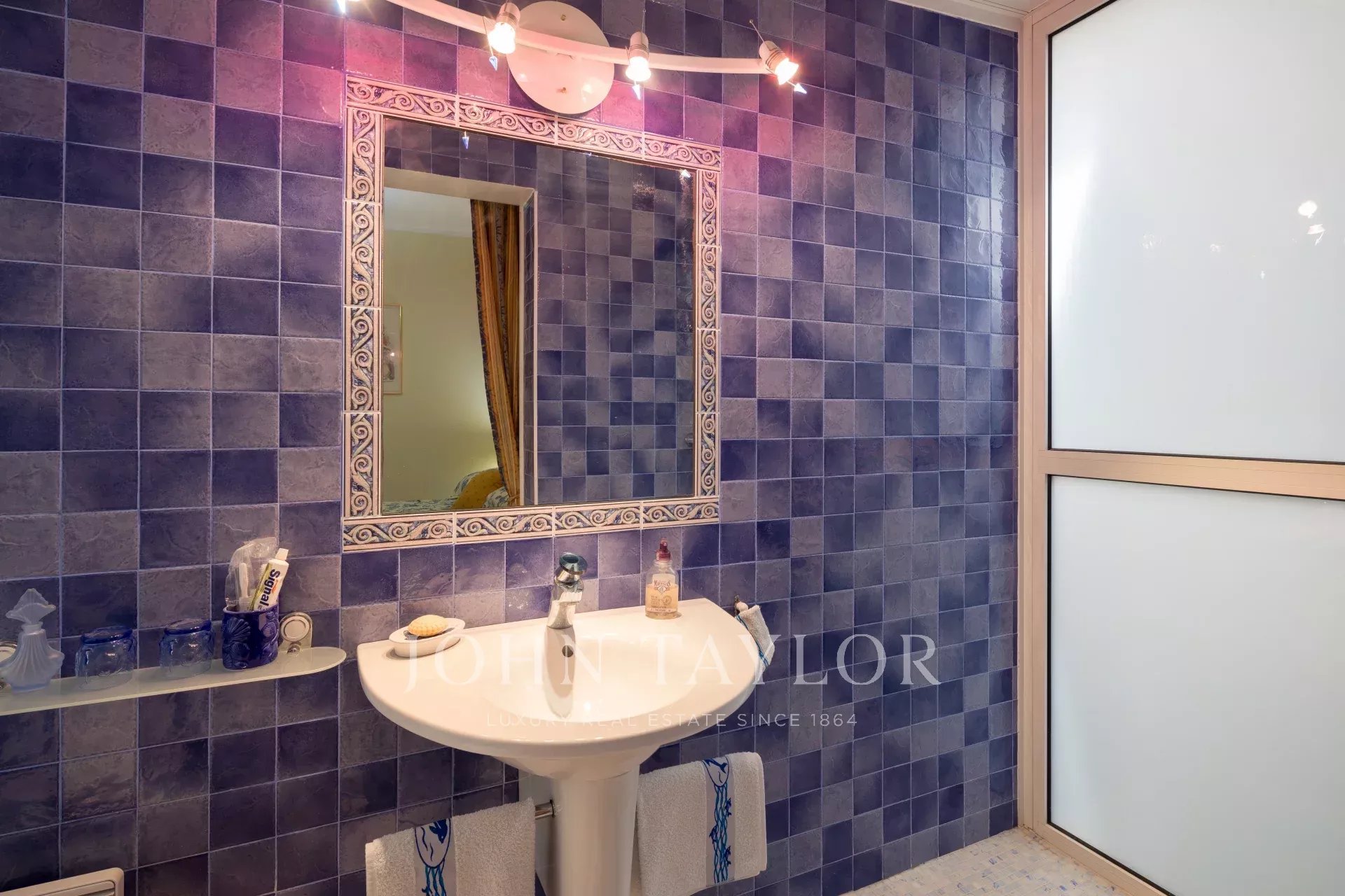 Occupando l'intero ultimo piano di una residenza a misura d'uomo perfettamente mantenuta, esposta a sud/ovest e completamente climatizzata, questo superbo appartamento/villa sul tetto di 174,13 m2 Carrez, servito direttamente da un ascensore, offre una vasta terrazza circolare con una splendida vista panoramica sul mare, su parte della città e sulle colline.
