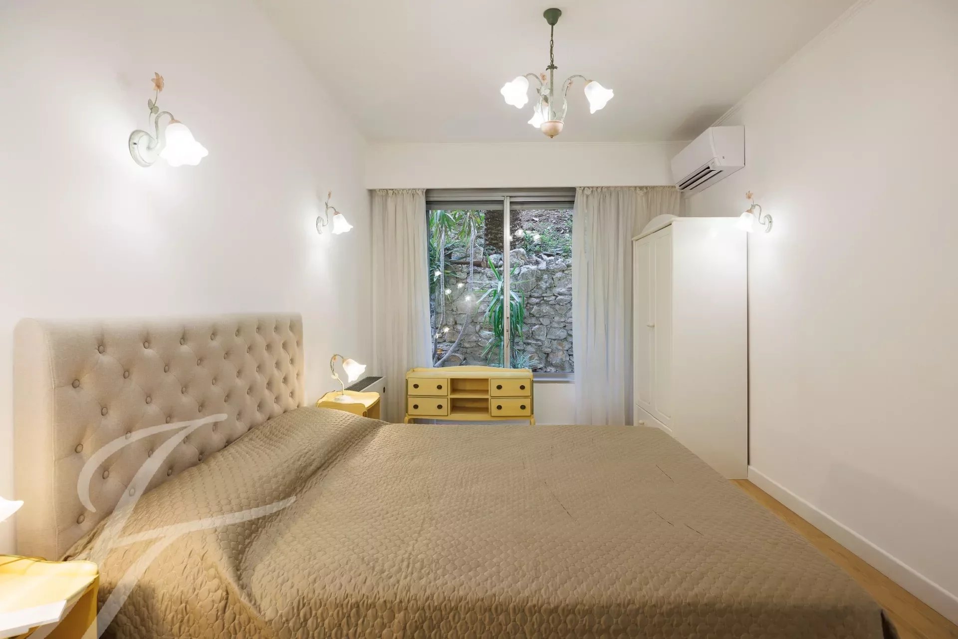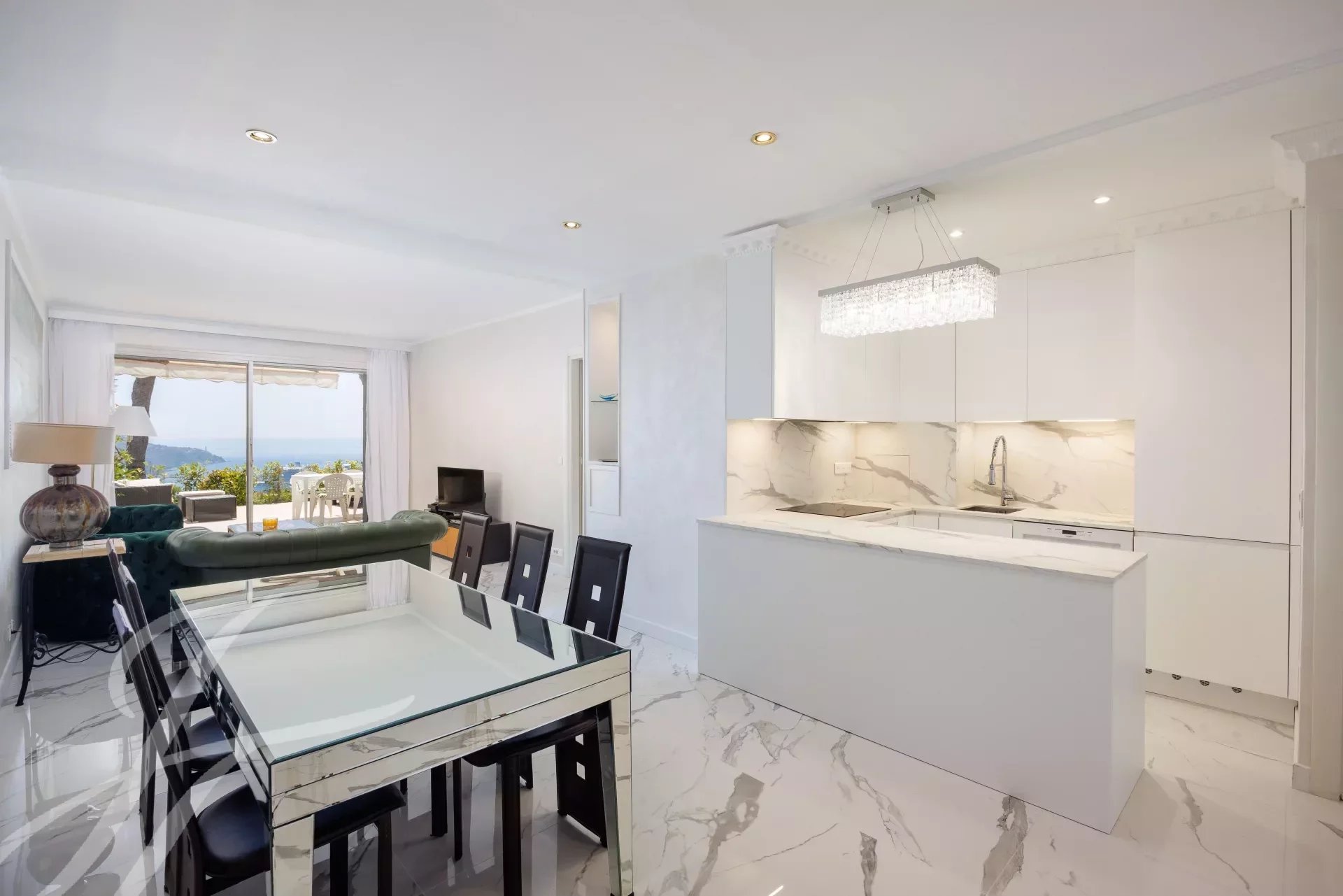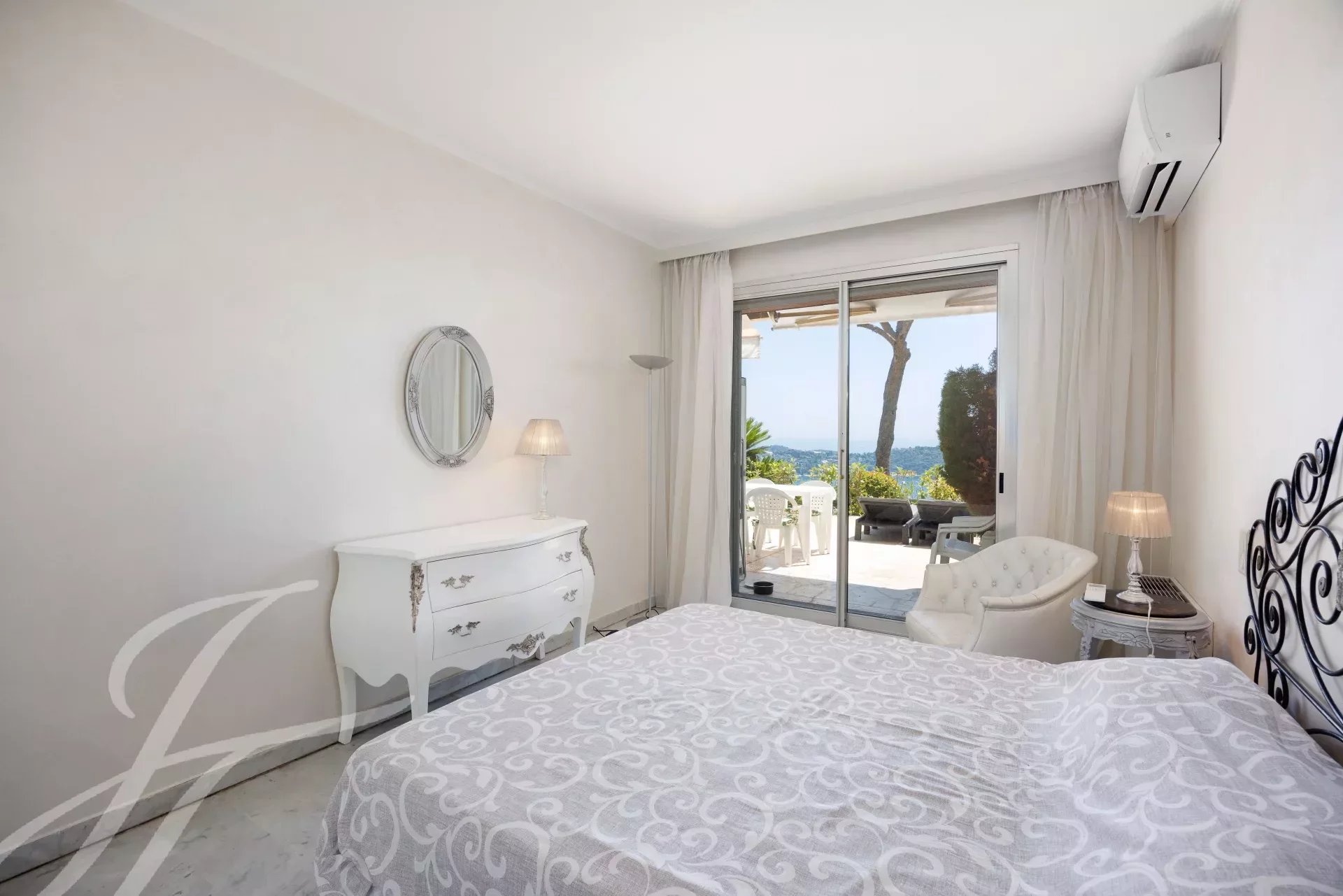 In un residence di lusso sicuro con custode, alla fine di un vicolo cieco e in assoluta tranquillità, appartamento al piano terra completamente ristrutturato con terrazza di 37 m² con vista mozzafiato sulla baia e su Cap Ferrat.