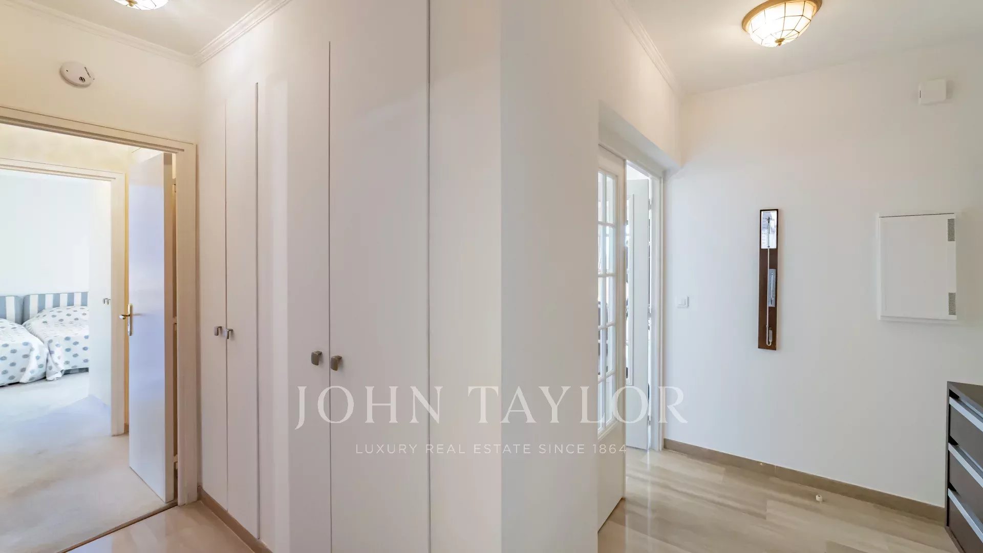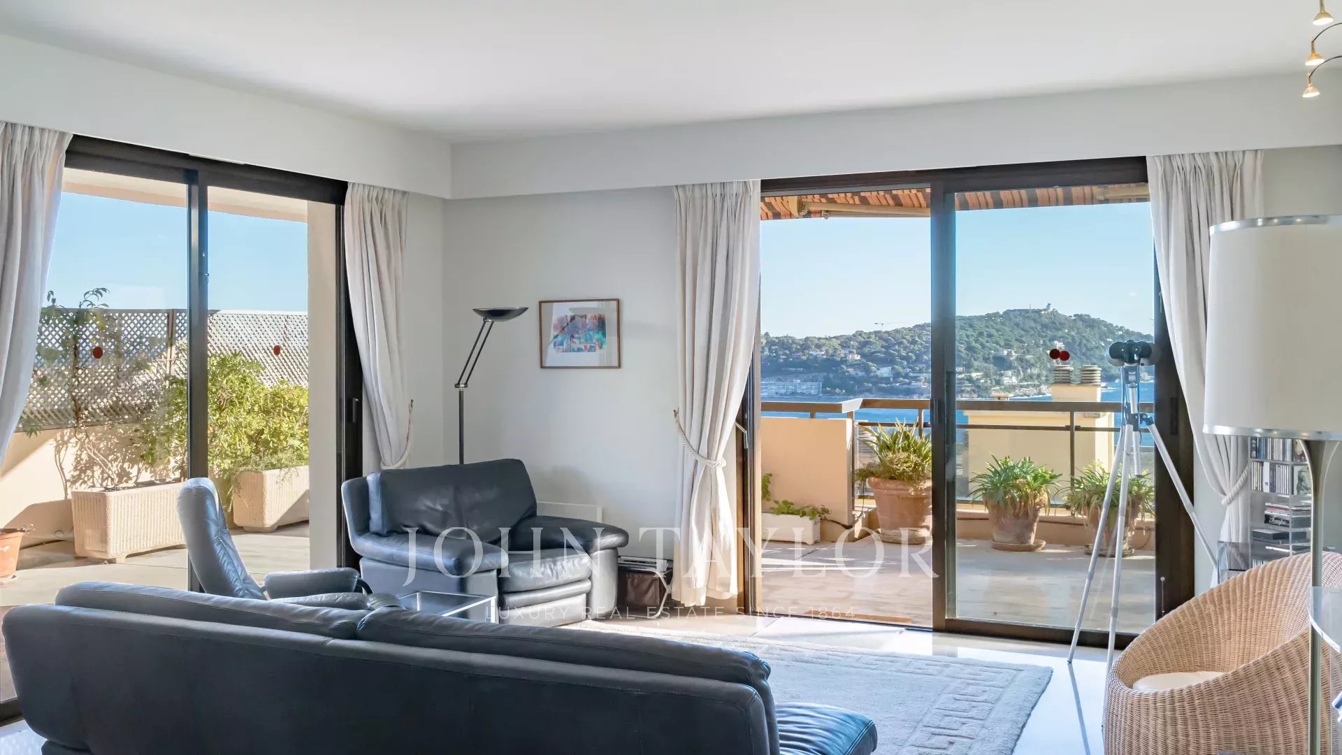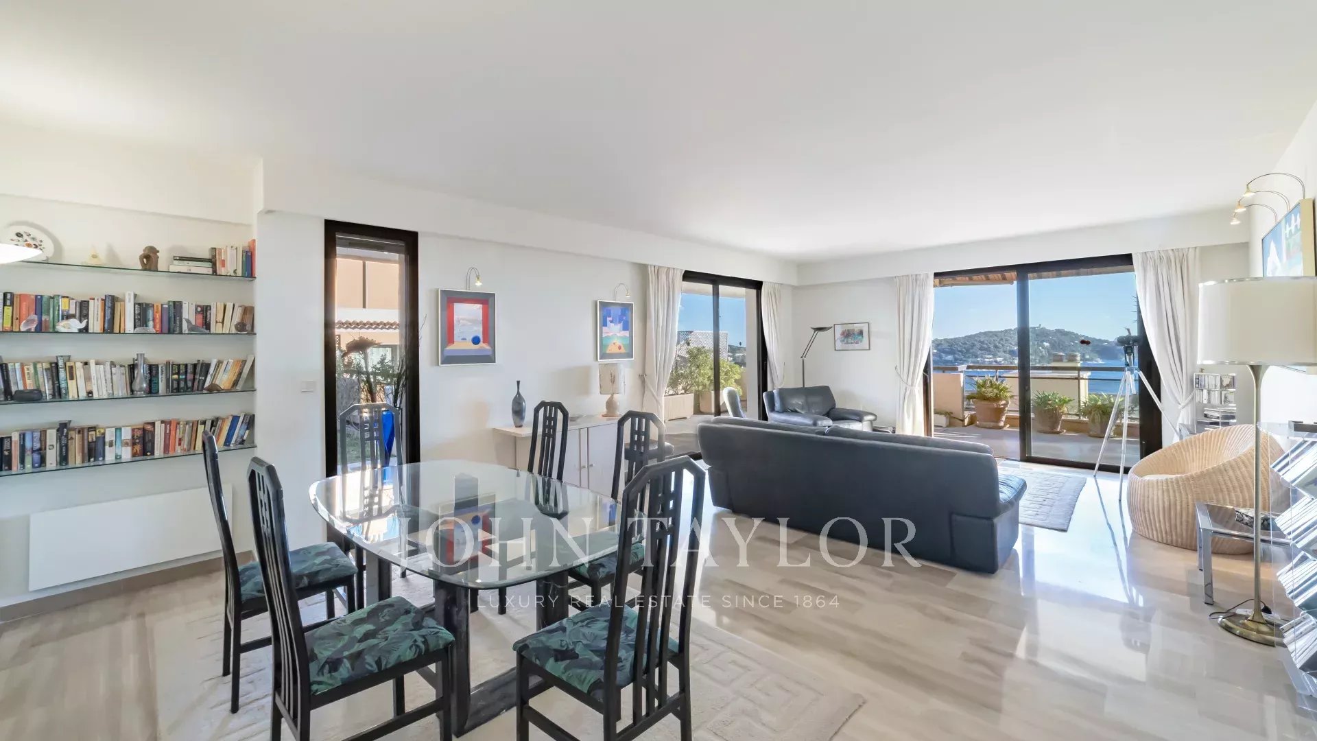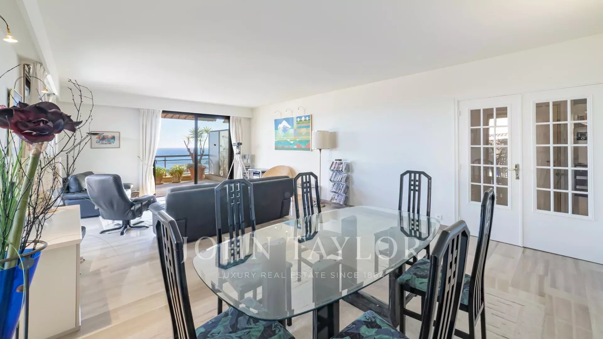 L'appartamento è composto da un ingresso, un ampio soggiorno di quasi 40 m² che si apre su una grande terrazza con vista sul mare, una piccola cucina, un WC, due camere da letto, un bagno e una doccia.