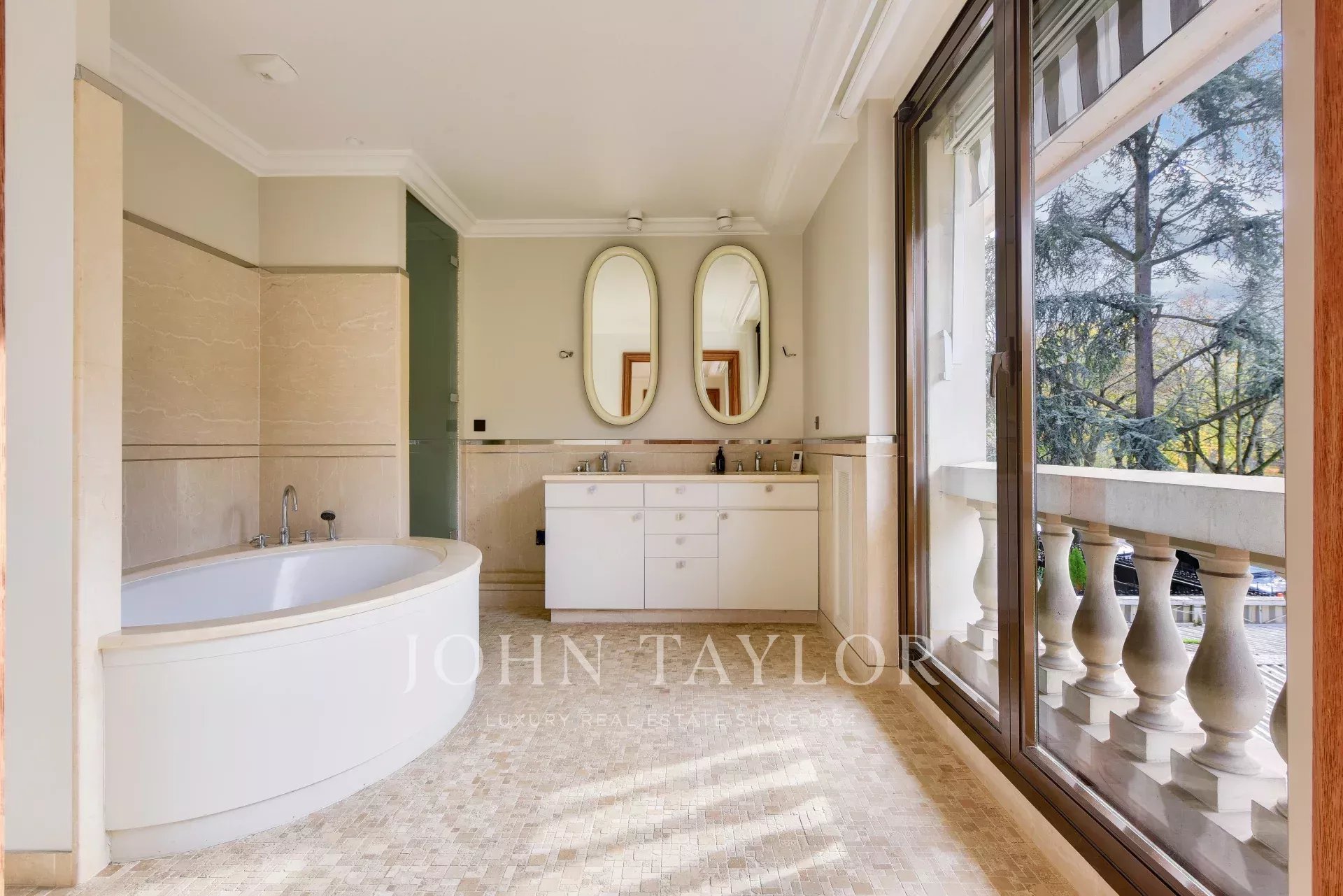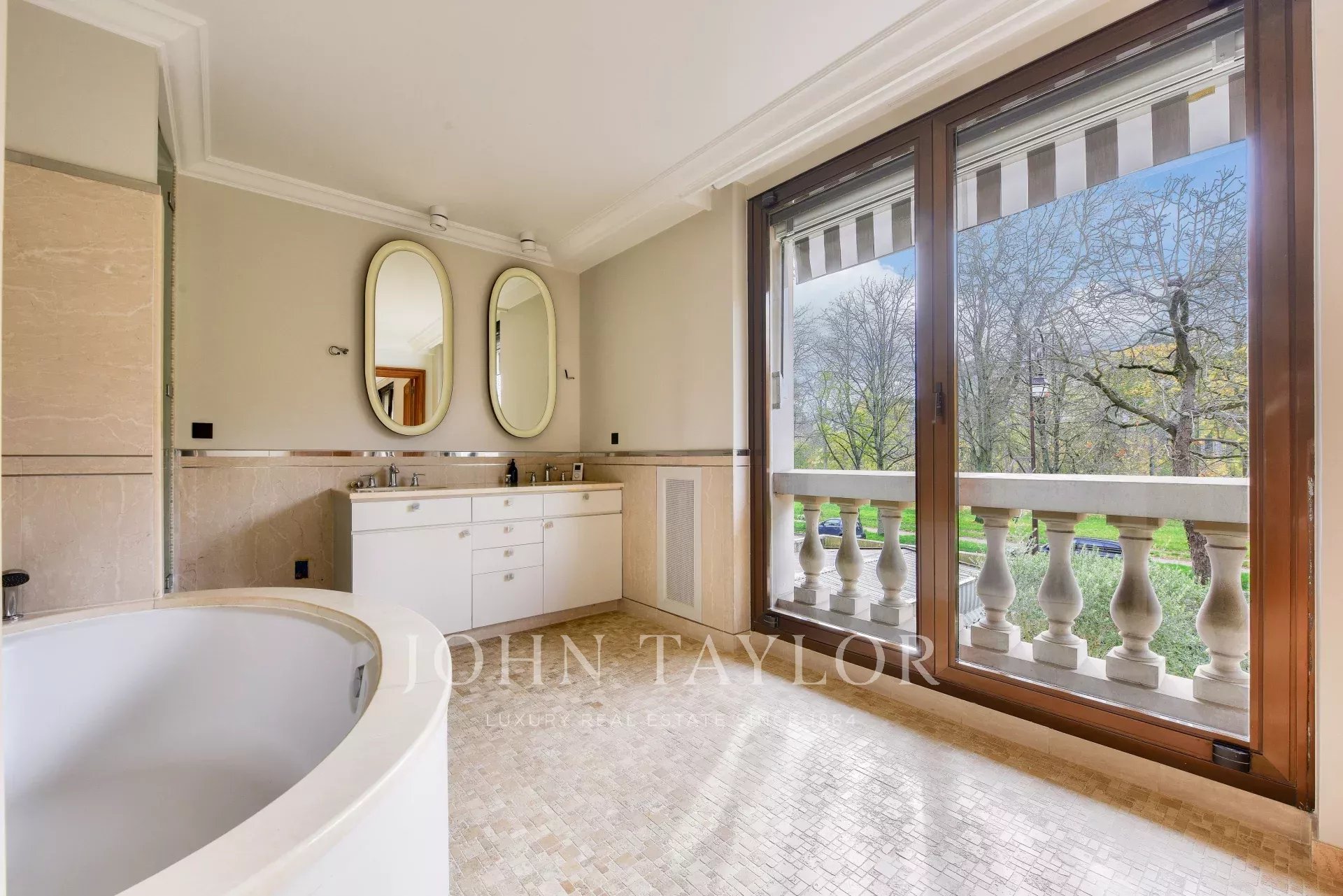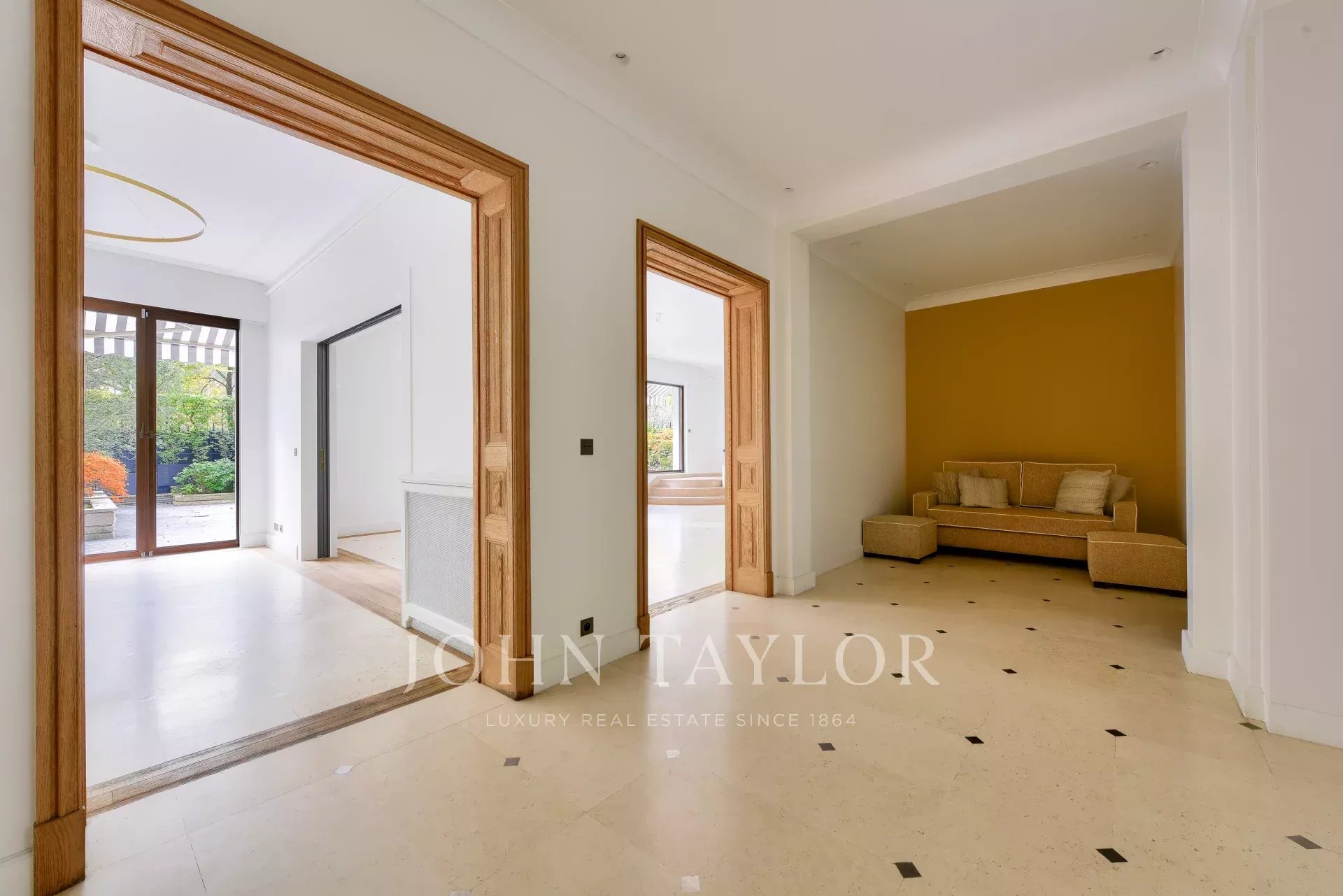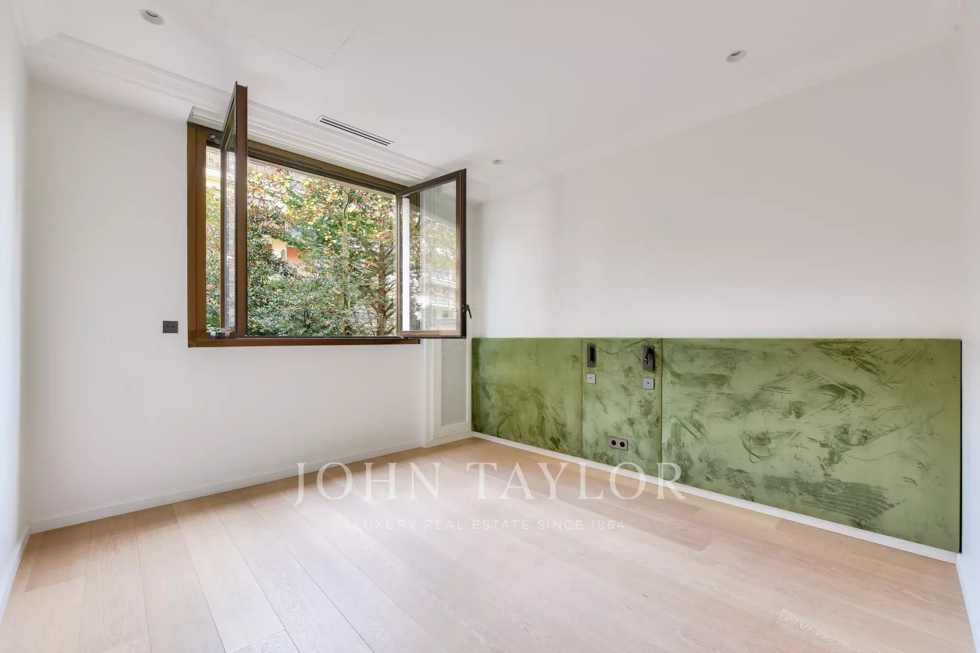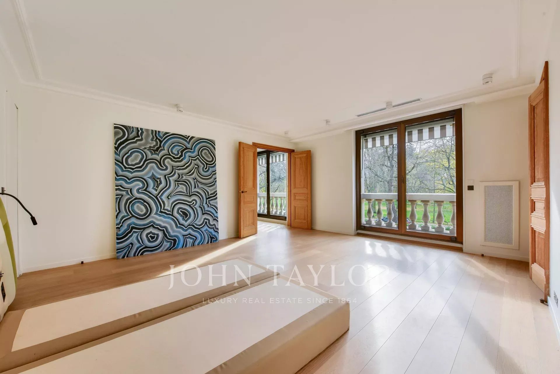 Situato in posizione ideale di fronte al Bois de Boulogne, questo appartamento triplo in un sontuoso edificio sicuro offre una vista ininterrotta sul bosco e sui giardini circostanti.