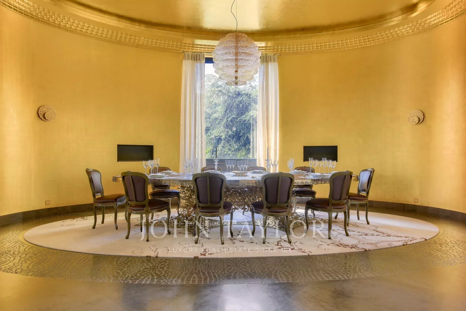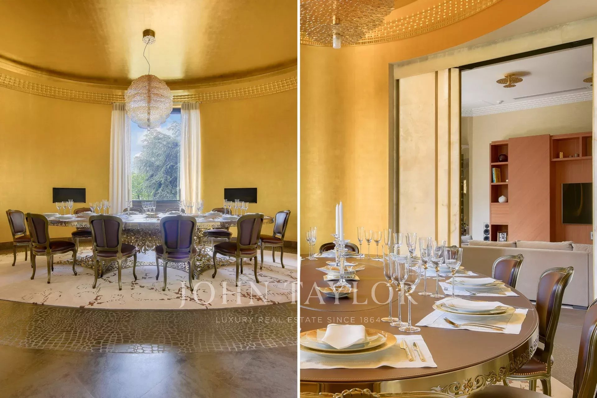 Sala da pranzo unica con 2 caminetti e laminata d'oro