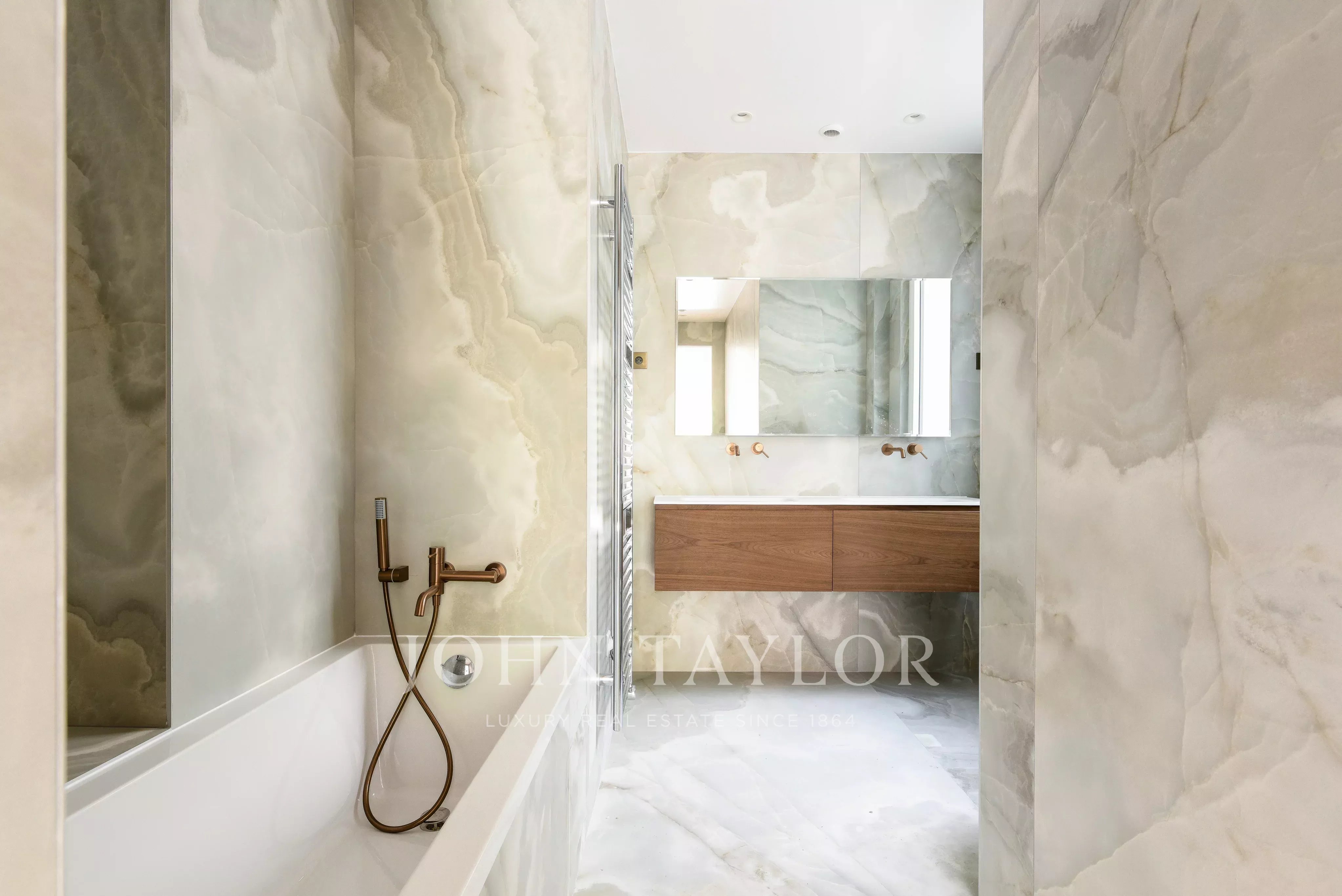 In un antico edificio di ottimo livello con ascensore e custode, vi offriamo un appartamento di 212,67 m² esposto a sud al 1° piano con soffitti alti.