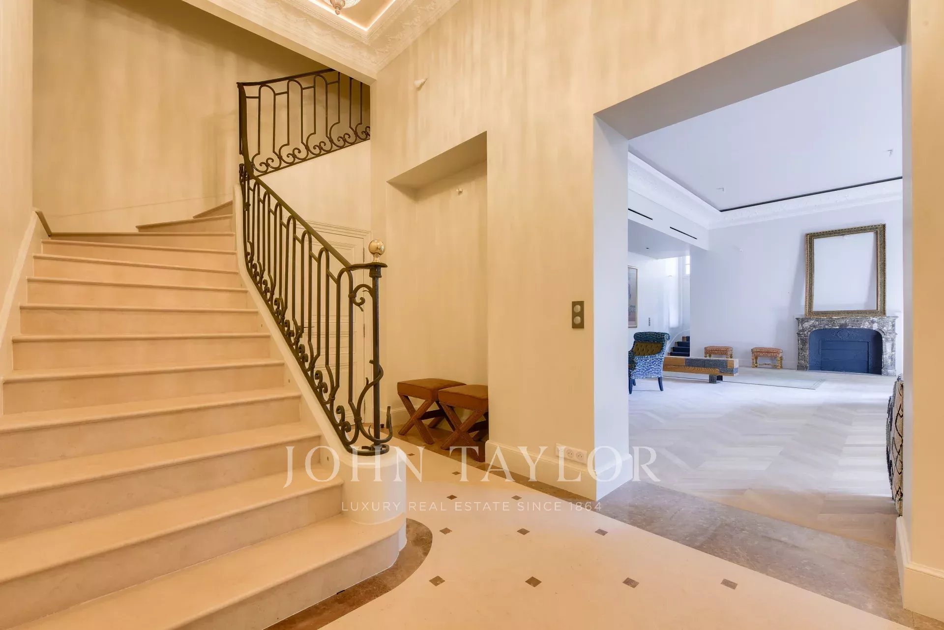 In uno dei più bei palazzi di Avenue d'Iéna, direttamente affacciato su Place des Etats-Unis, John Taylor Paris propone questo sublime appartamento triplex di 290 m², completamente ristrutturato, climatizzato e in assoluta tranquillità.