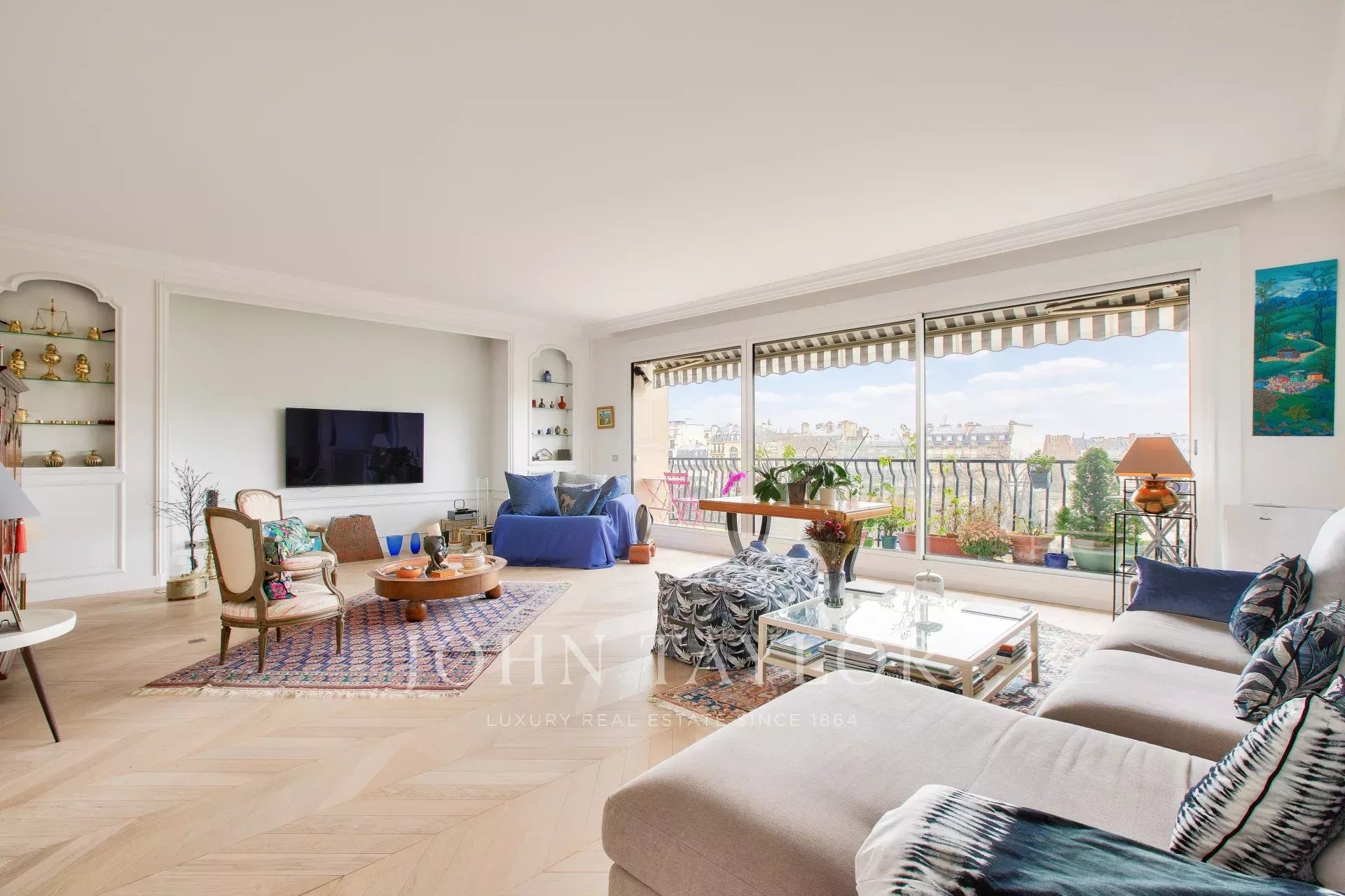 Questo luminoso appartamento per famiglie e ricevimenti gode di una posizione eccezionale in un viale prestigioso tra l'Arco di Trionfo e il Bois de Boulogne.