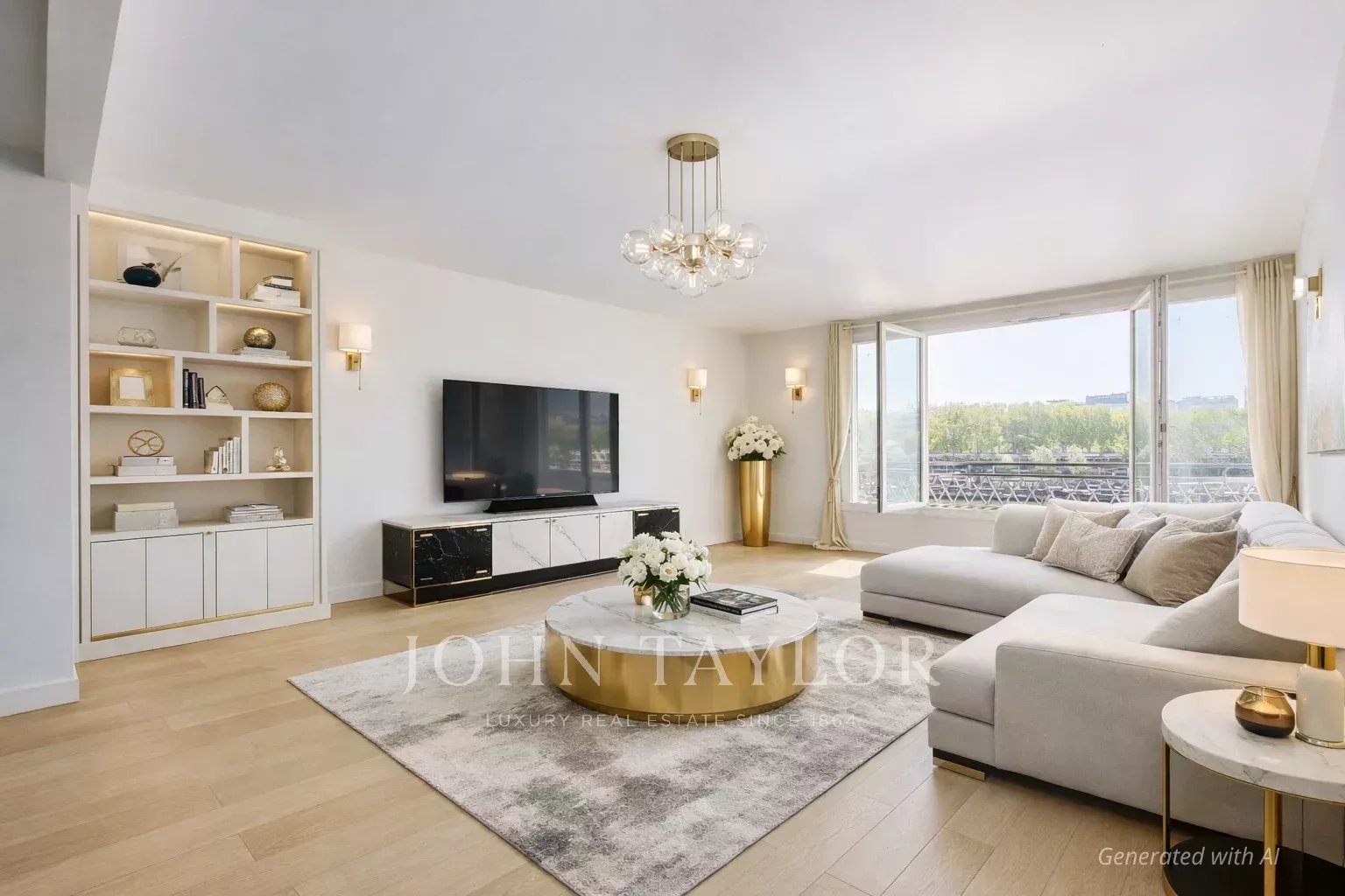 Tra i giardini del Trocadéro e i negozi di Passy, vi proponiamo questo luminoso e arioso appartamento di 97 m² con una vista unica e abbagliante sulla Torre Eiffel e sulla Senna.
