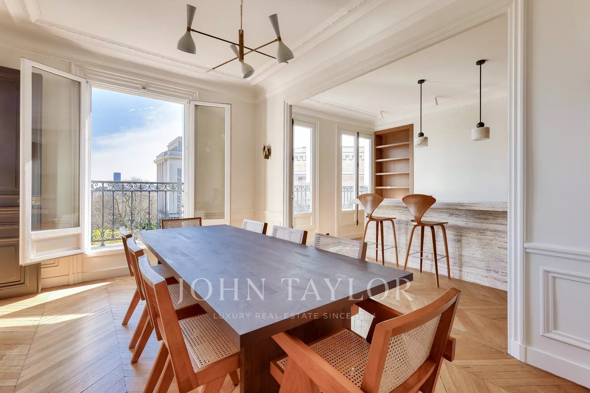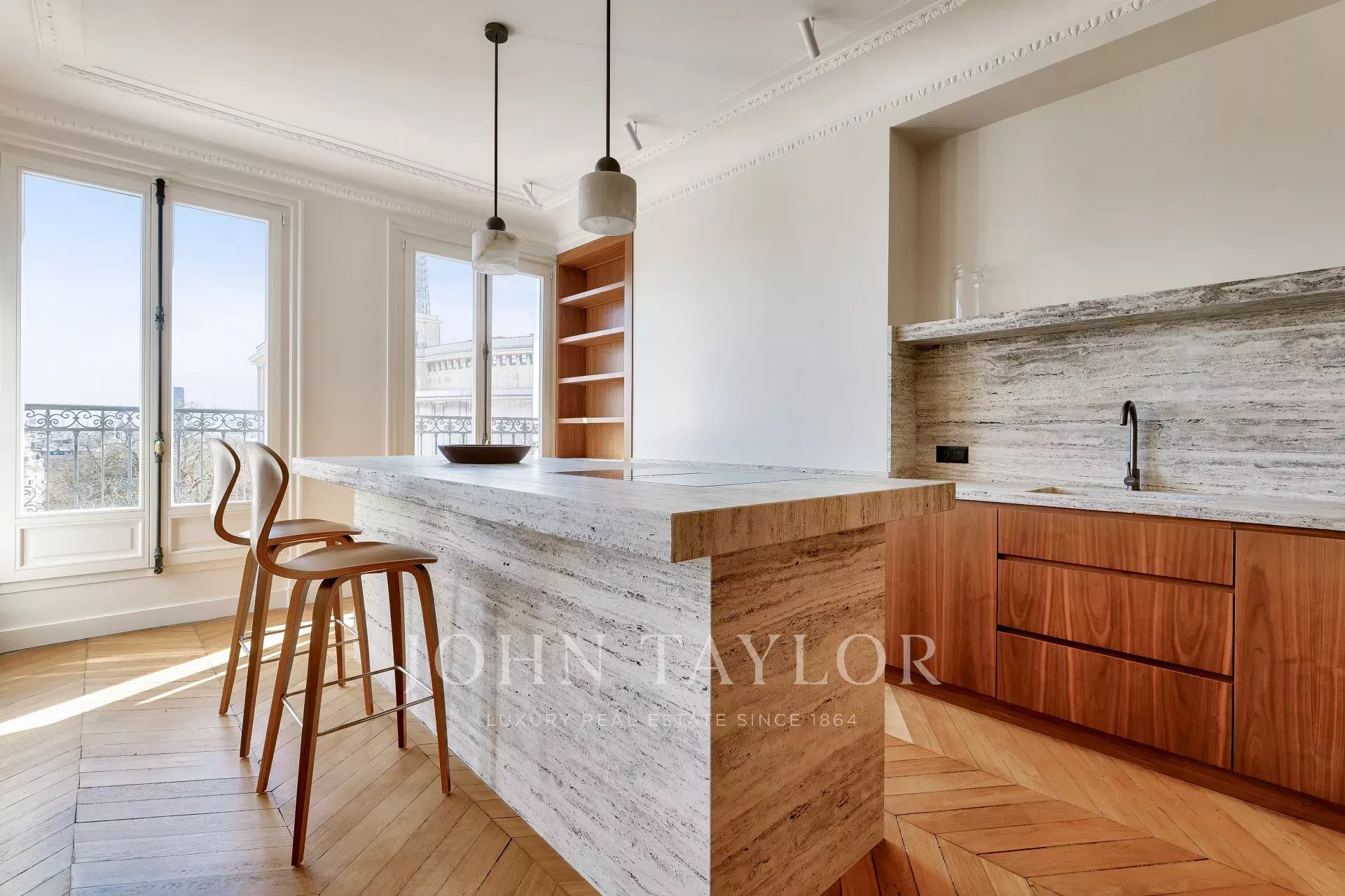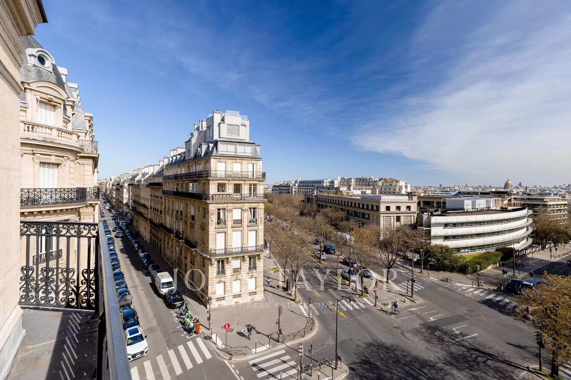 TOUR EIFFEL - A due passi da Place du Trocadéro, in cima a un edificio in pietra serena perfettamente mantenuto e sorvegliato da un custode, si trova questo eccezionale appartamento di 210 m², completamente ristrutturato e arredato con una rara attenzione ai dettagli.