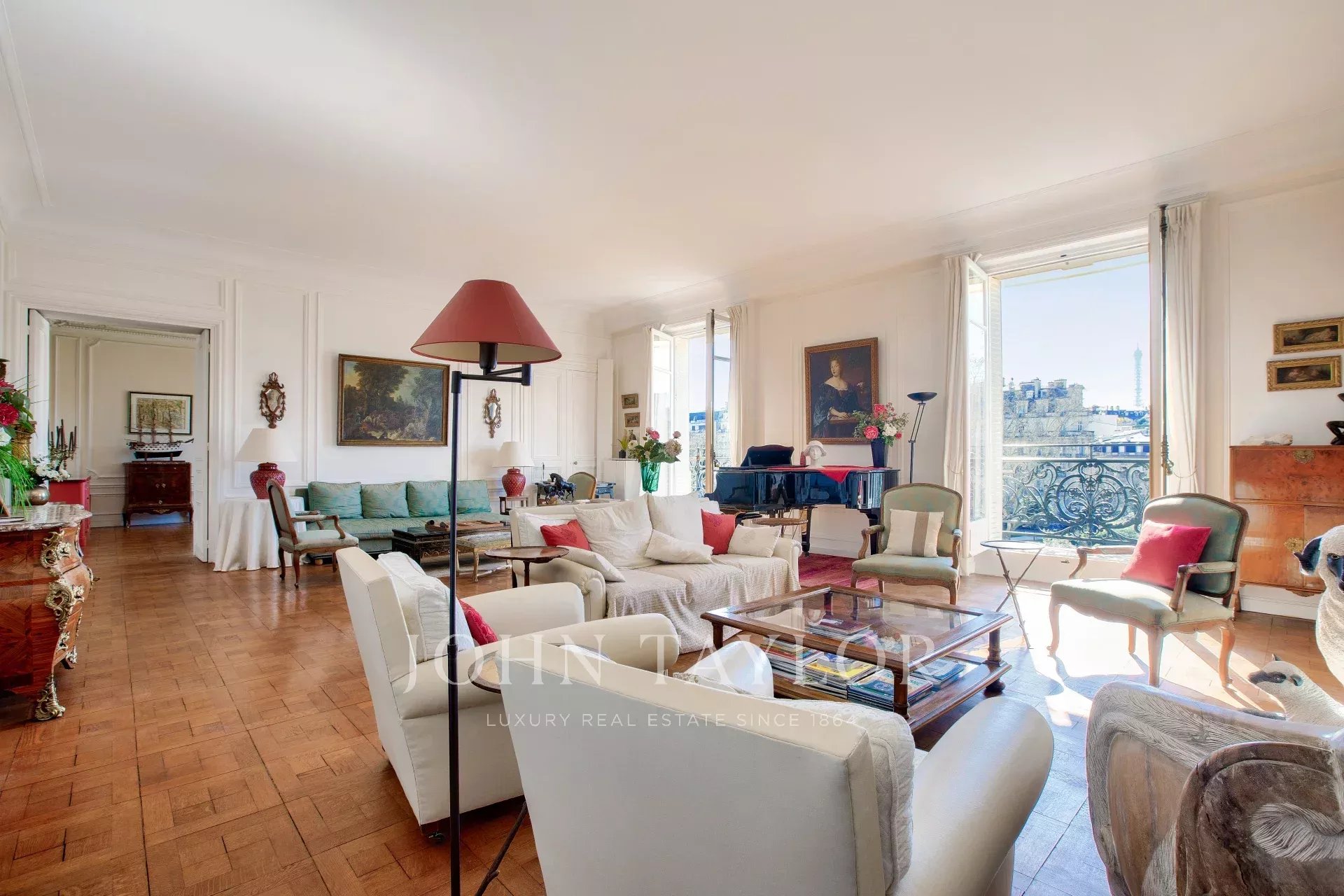 - un doppio soggiorno esposto a sud con vista su Avenue Foch