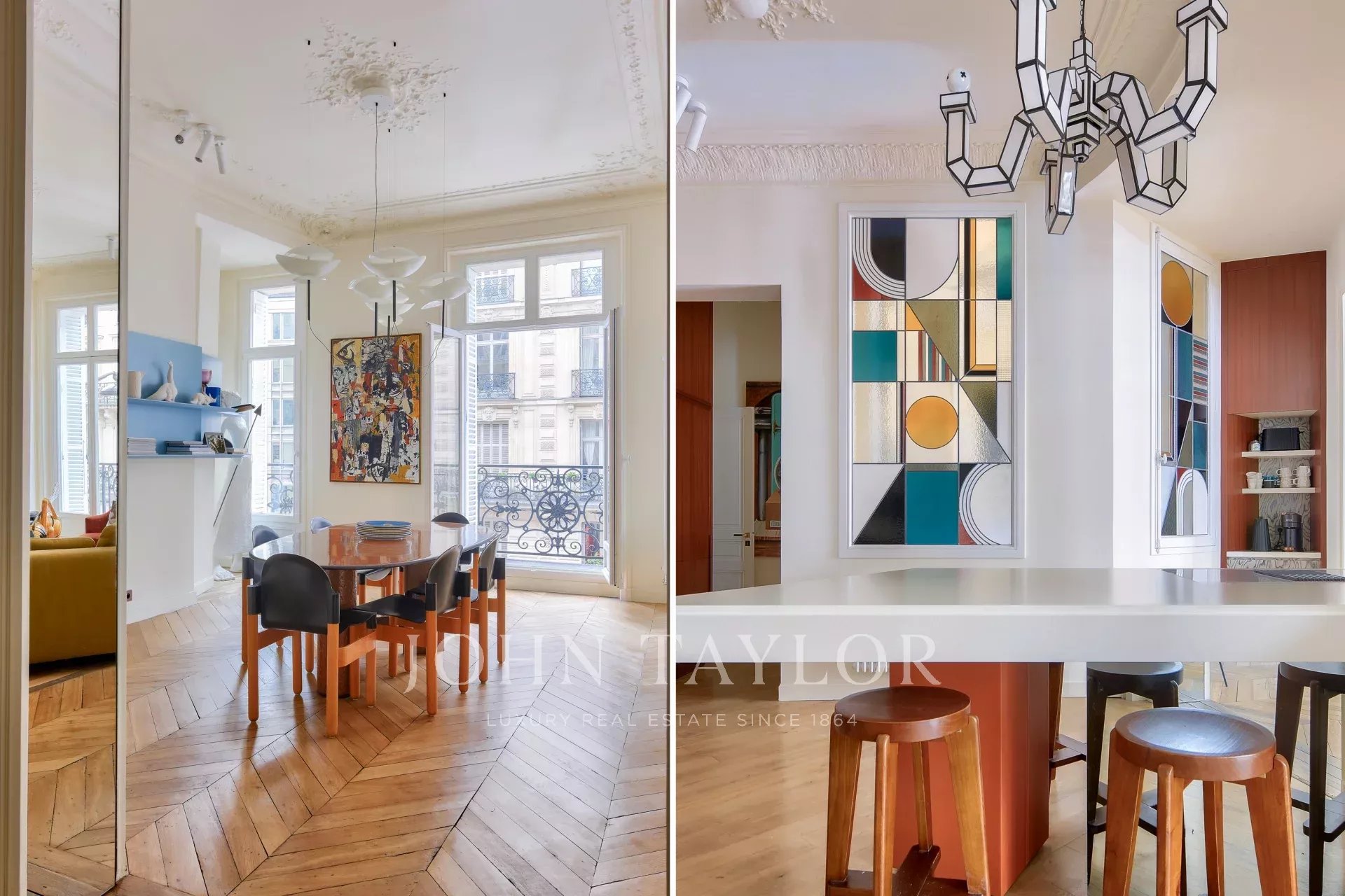 Nel cuore del 2° arrondissement, al 2° piano con ascensore, appartamento di 110 m² con balcone e soffitti alti 3,60 m, completamente ristrutturato da un architetto.
