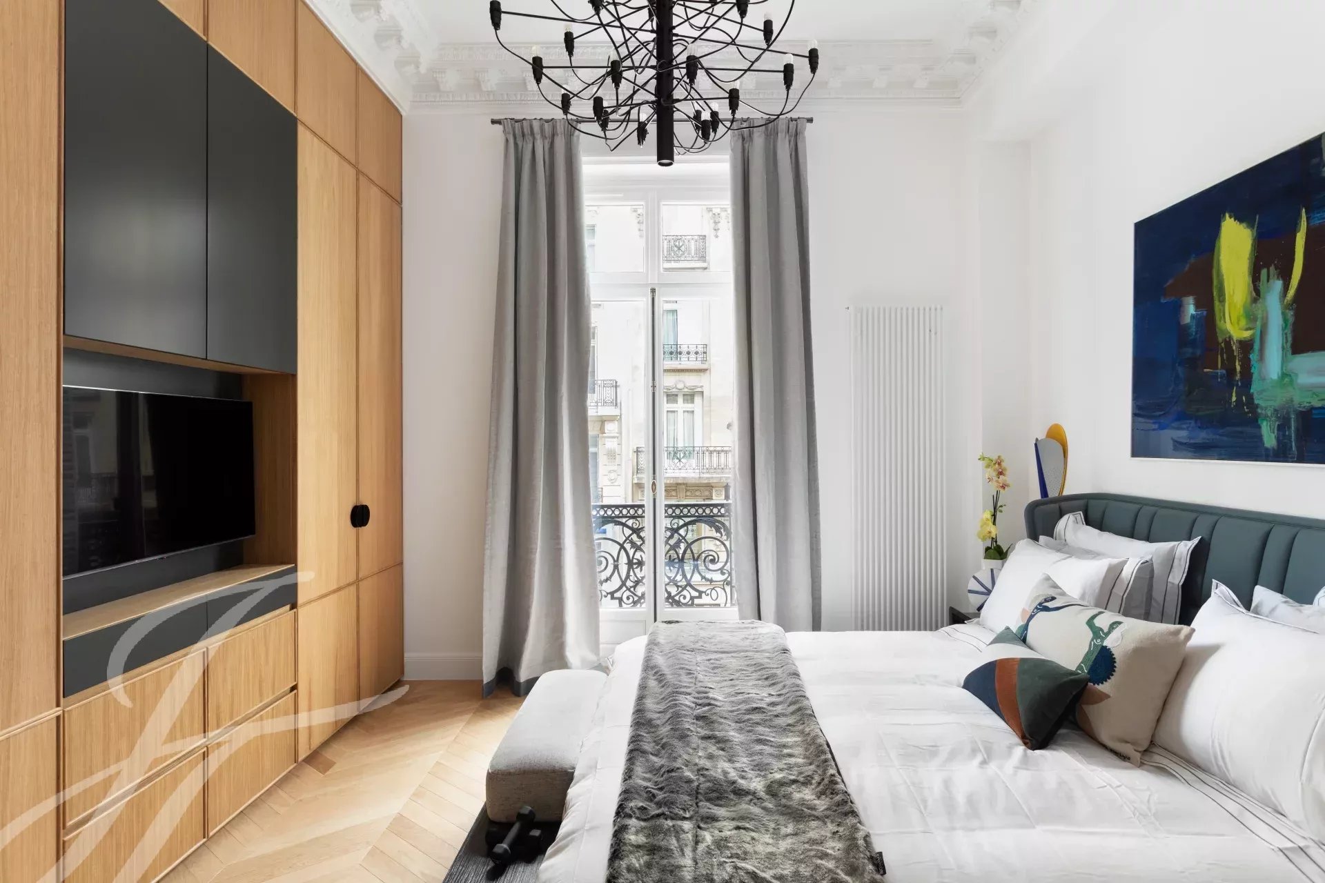A due passi dagli hotel Four Seasons e Bulgari, tra l'avenue Marceau e l'avenue George V, bellissimo appartamento interamente ristrutturato da un architetto al 2° piano di un bell'edificio in pietra serena. Venduto completamente arredato e decorato, comprende :