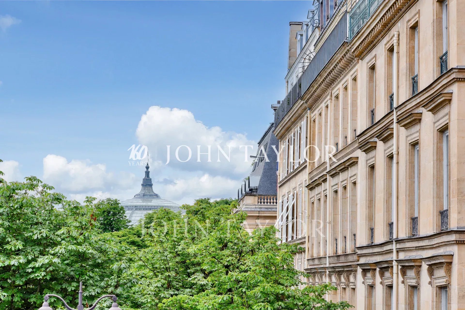 - un'ampia sala di ricevimento con un balcone esposto a sud che offre una rara vista sul Palais de l'Elysées e sui tetti di vetro del Grand Palais