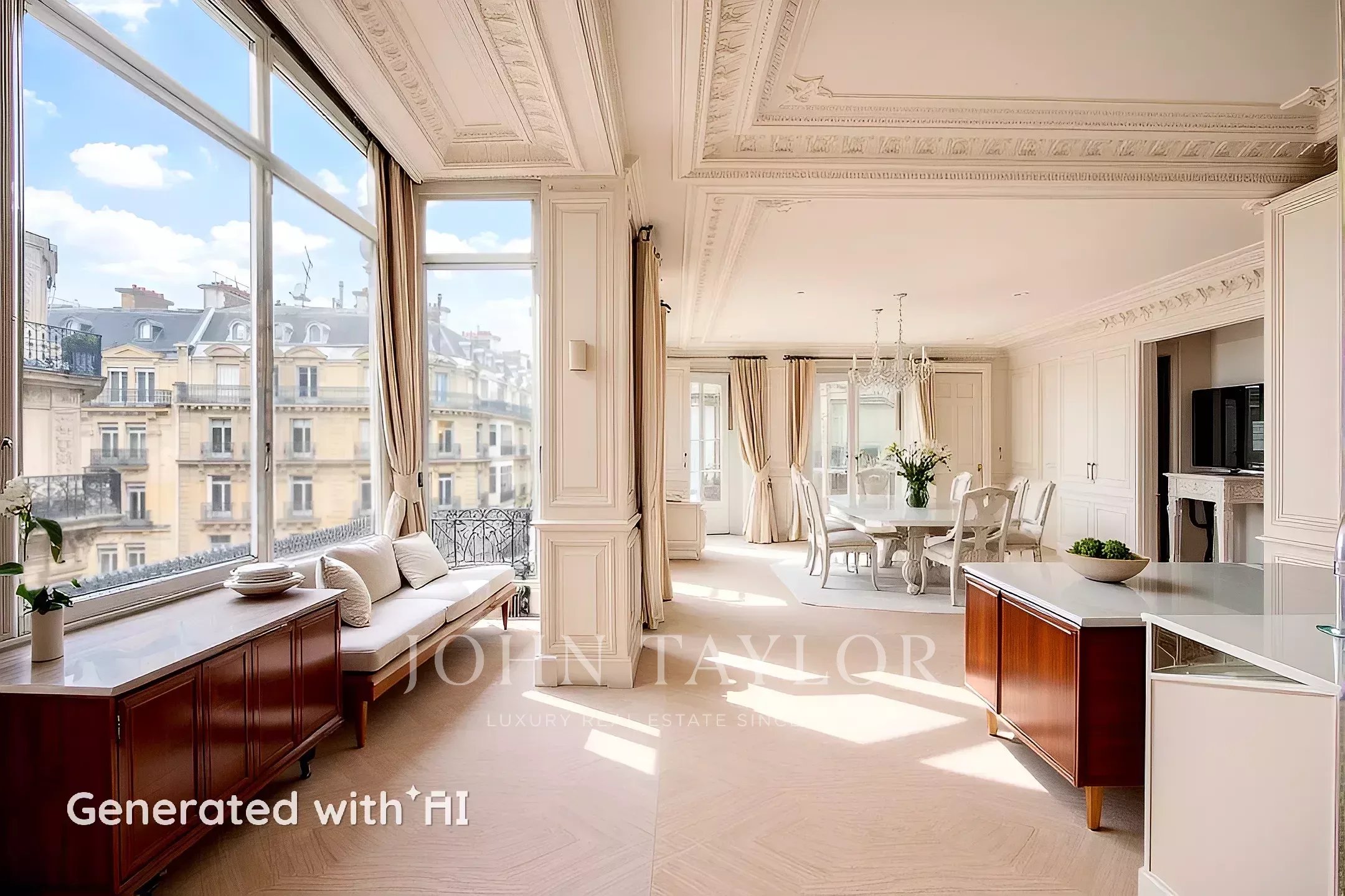 Nel cuore del Triangolo d'Oro, vicino all'Avenue George V, in un edificio in stile Haussmann splendidamente costruito con guardie di sicurezza, vi offriamo un appartamento di 167 m².