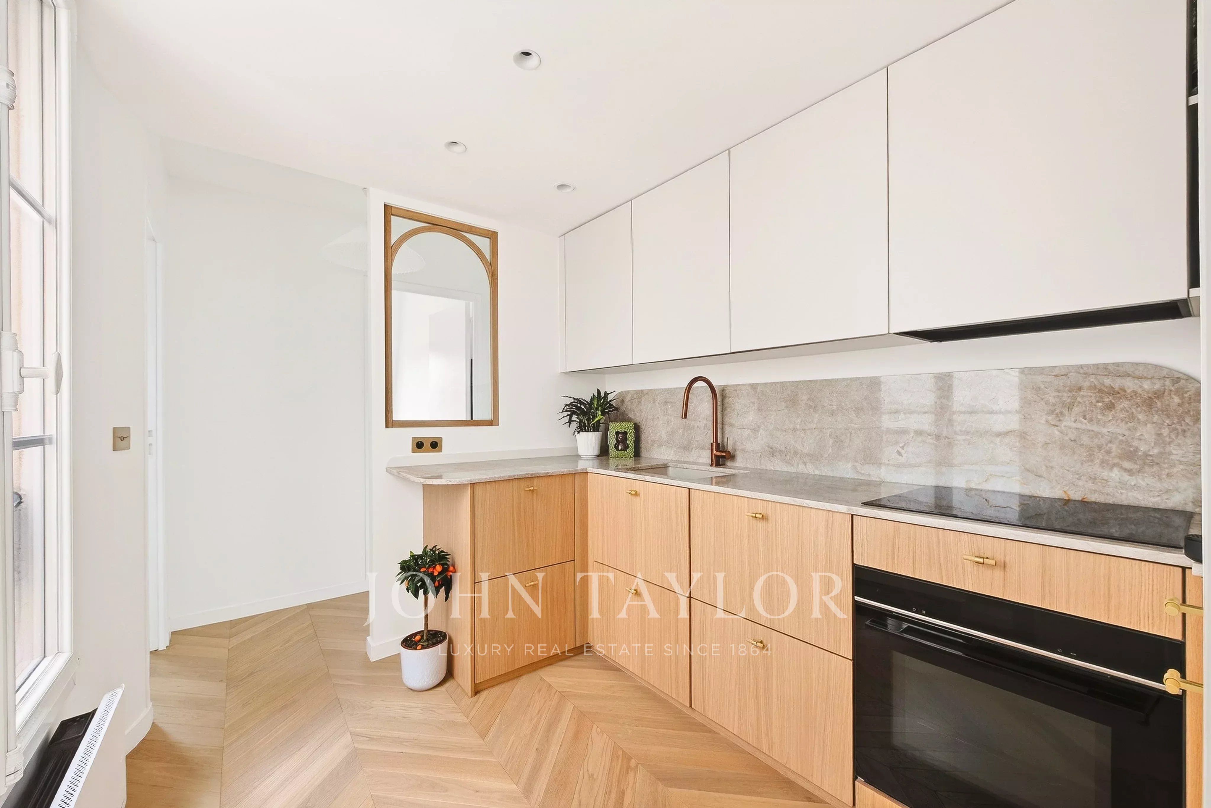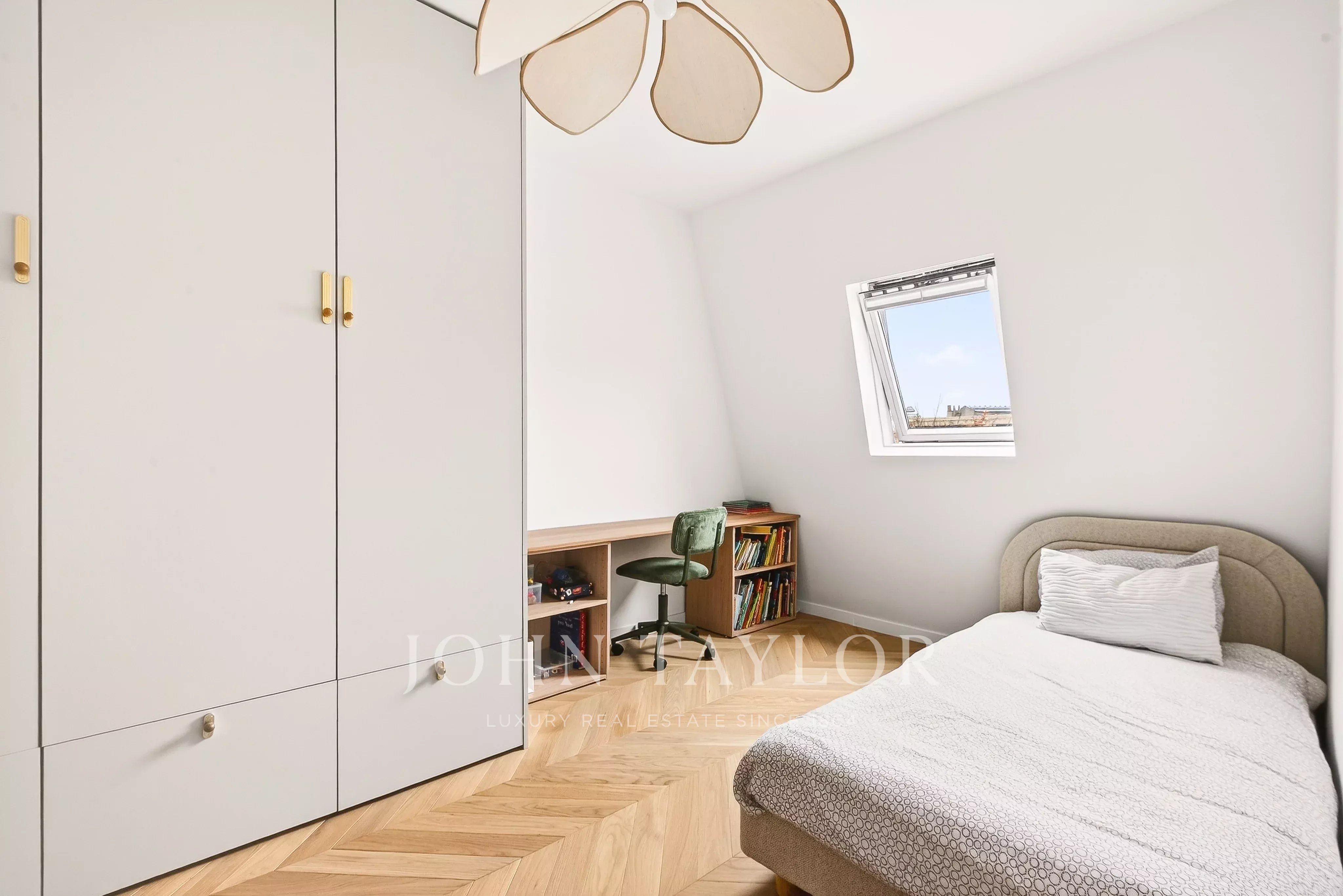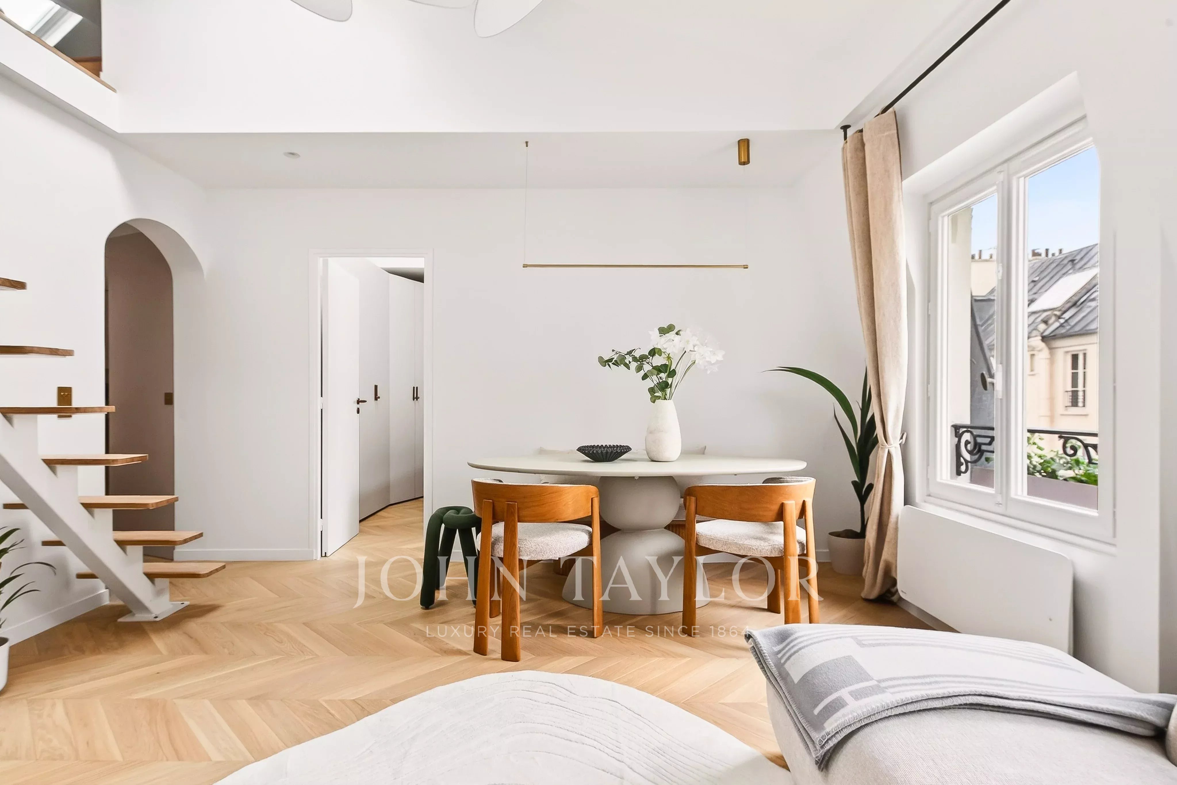 A pochi passi dai Giardini di Lussemburgo e dalla scuola Alsaziana, proponiamo al 5° e ultimo piano di un edificio custodito e sicuro questo duplex nuovo, arredato, di 80m² abitabili (60 m² Carrez).