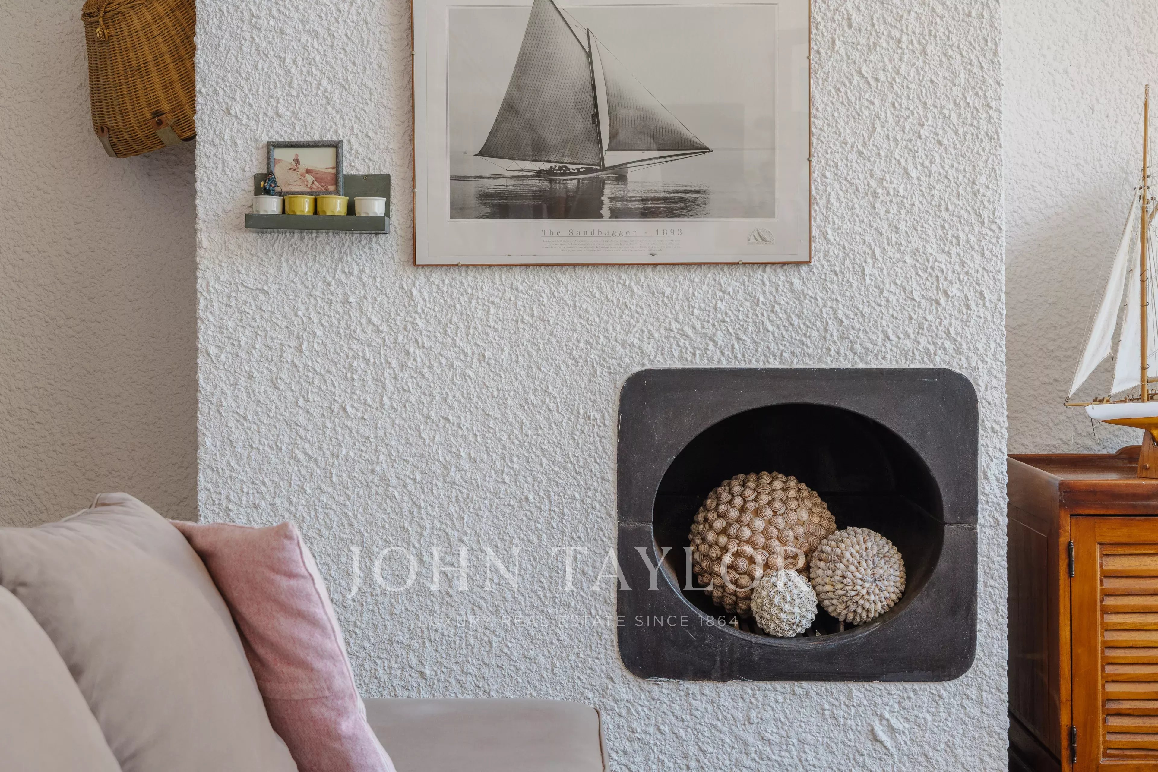 La cucina aperta, dal design "marino" d'epoca, si integra con notevole sensibilità nello spirito del luogo, creando un'atmosfera al tempo stesso nostalgica e senza tempo.