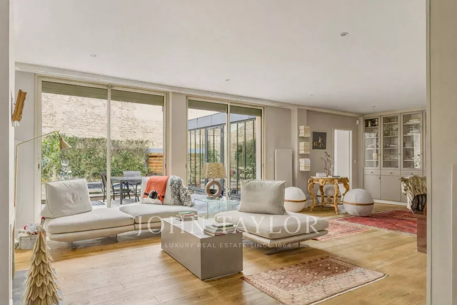 Questo splendido appartamento duplex di 220 m² si presenta come una casa completamente ristrutturata, con un ascensore privato per ogni livello e un ampio giardino di 70 m² con piscina. Un indirizzo discreto e tranquillo in un edificio con aree comuni eleganti e perfettamente curate.