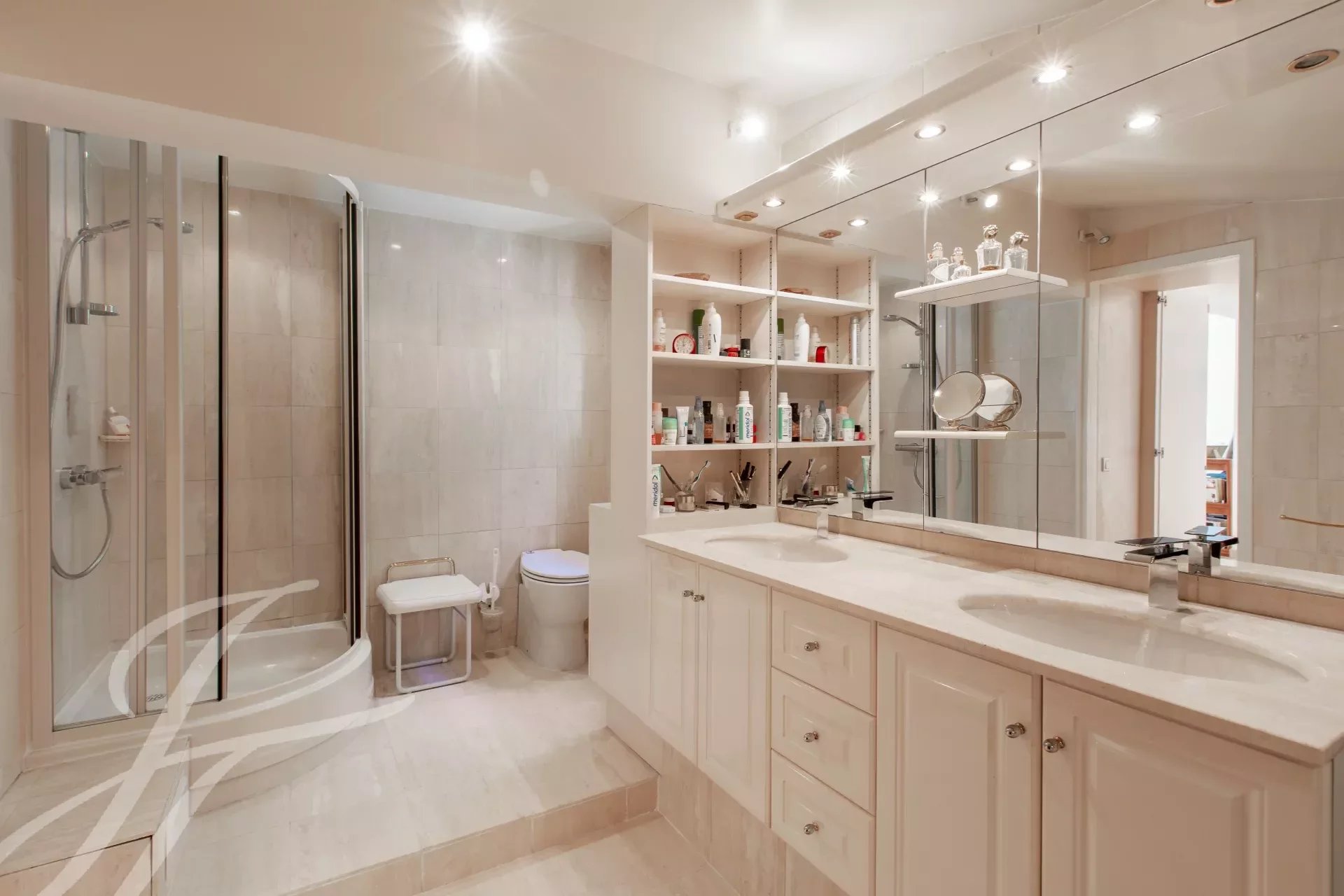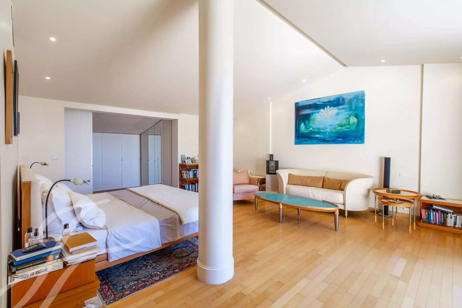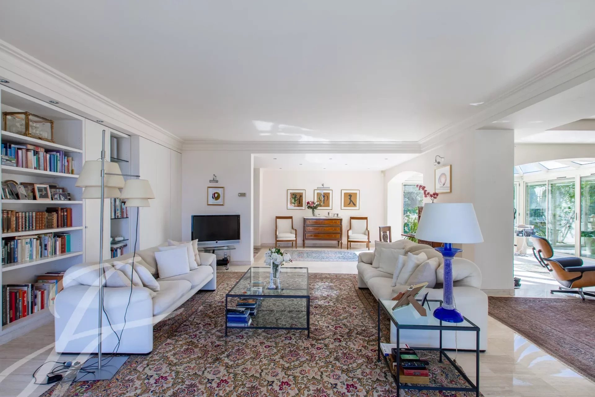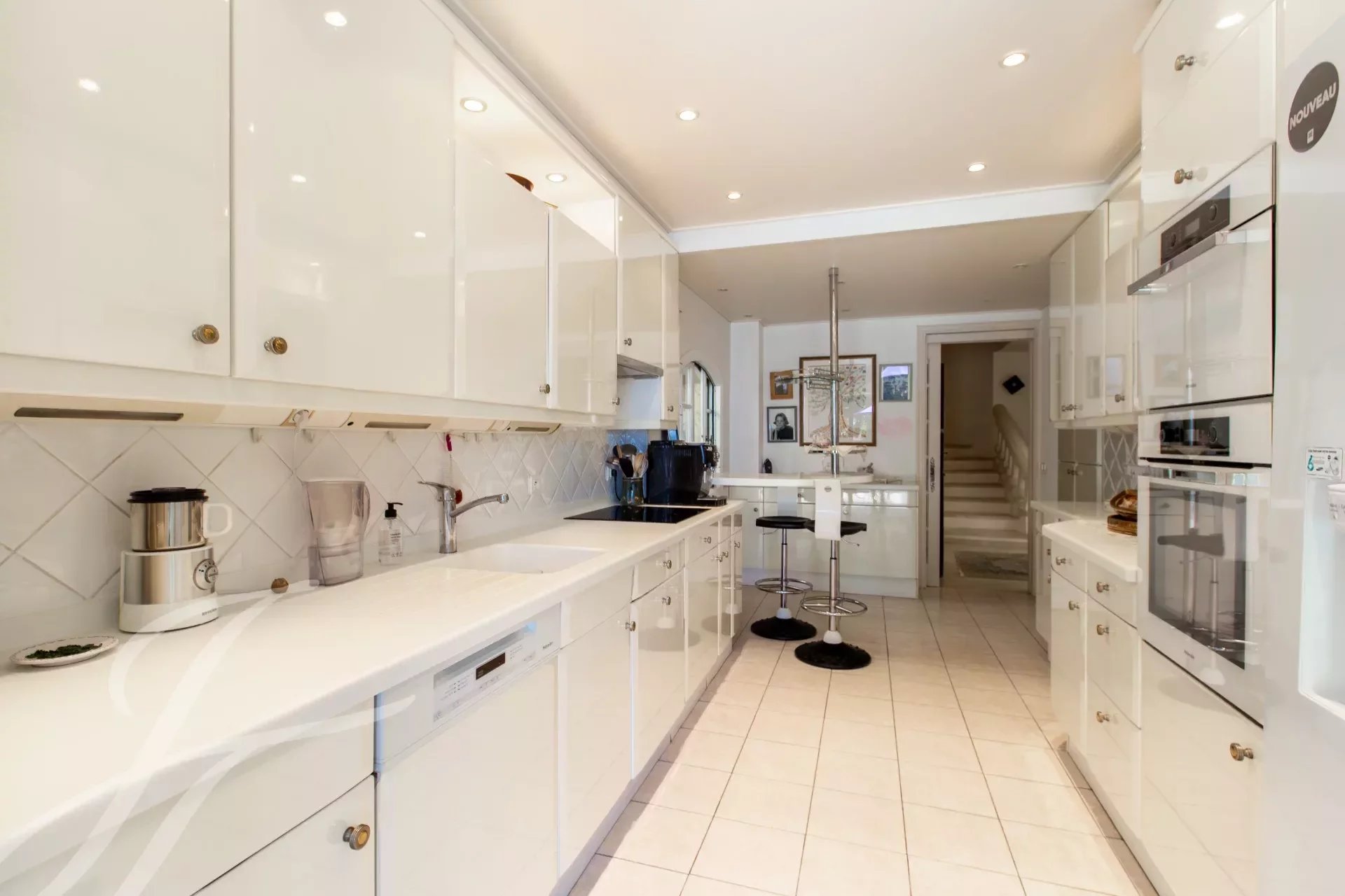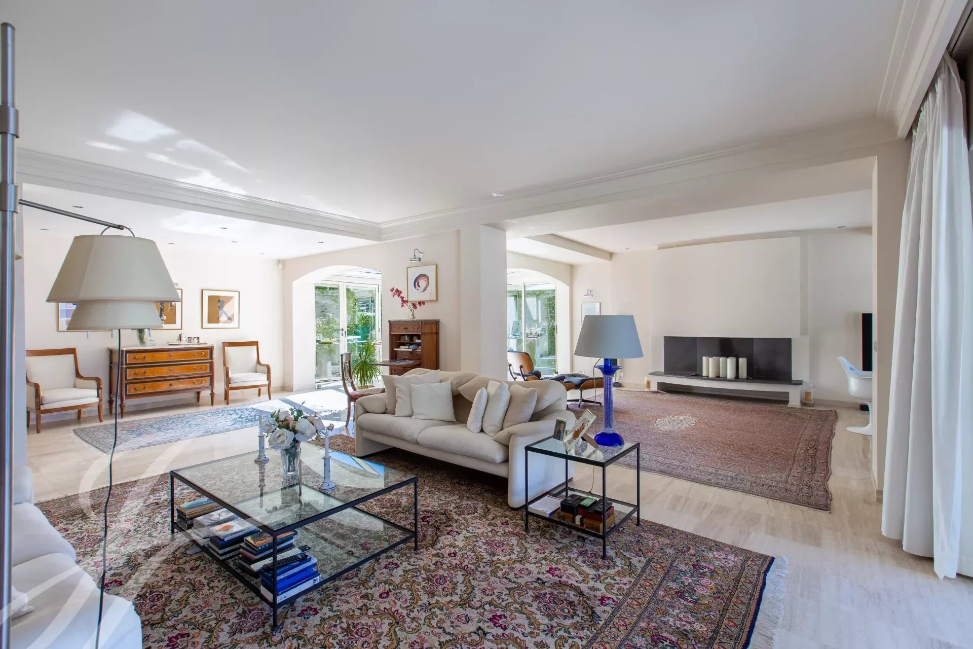 Piano terra: ingresso, soggiorno con camino e sala da pranzo di 66 m², studio/veranda, cucina separata, WC, due camere da letto e bagno. Il primo piano comprende una camera da letto principale di 44 m² che si apre su una terrazza sul tetto di 33 m², spogliatoio, bagno e toilette.
