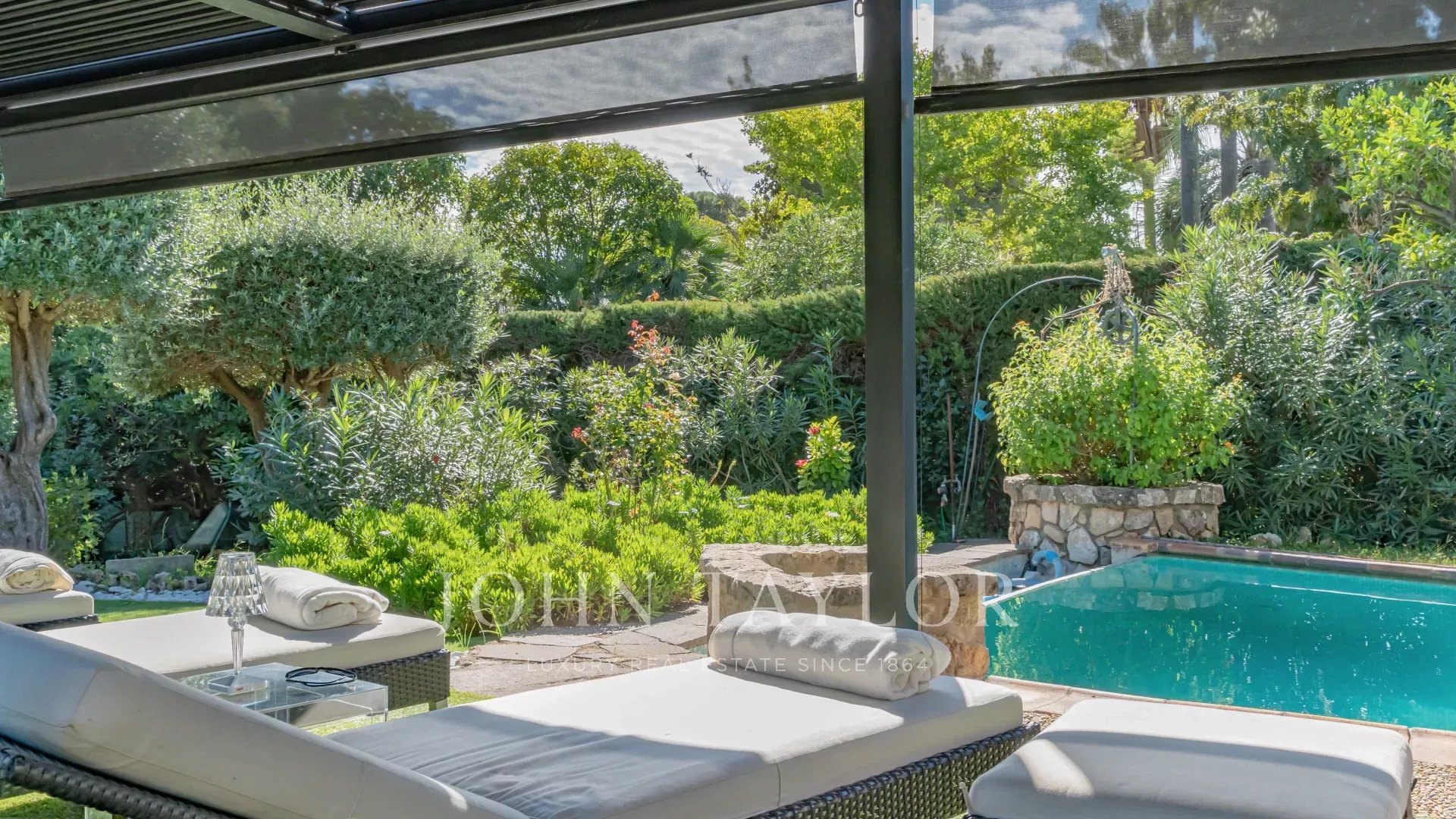 Vicina al centro della città, questa villa gode di un ambiente verde. Il suo spazio esterno, piantumato con molte specie mediterranee, presenta diverse terrazze che circondano la piscina.