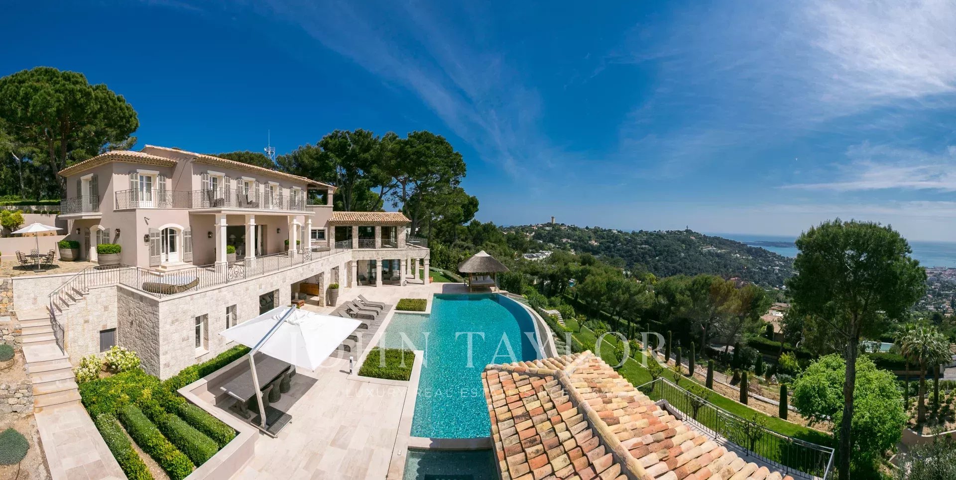 Co-esclusività. Situata sulle alture della collina più ambita di Cannes, questa sontuosa proprietà gode di una vista spettacolare sulla baia, sulle isole Lérins e sul massiccio dell'Estérel.