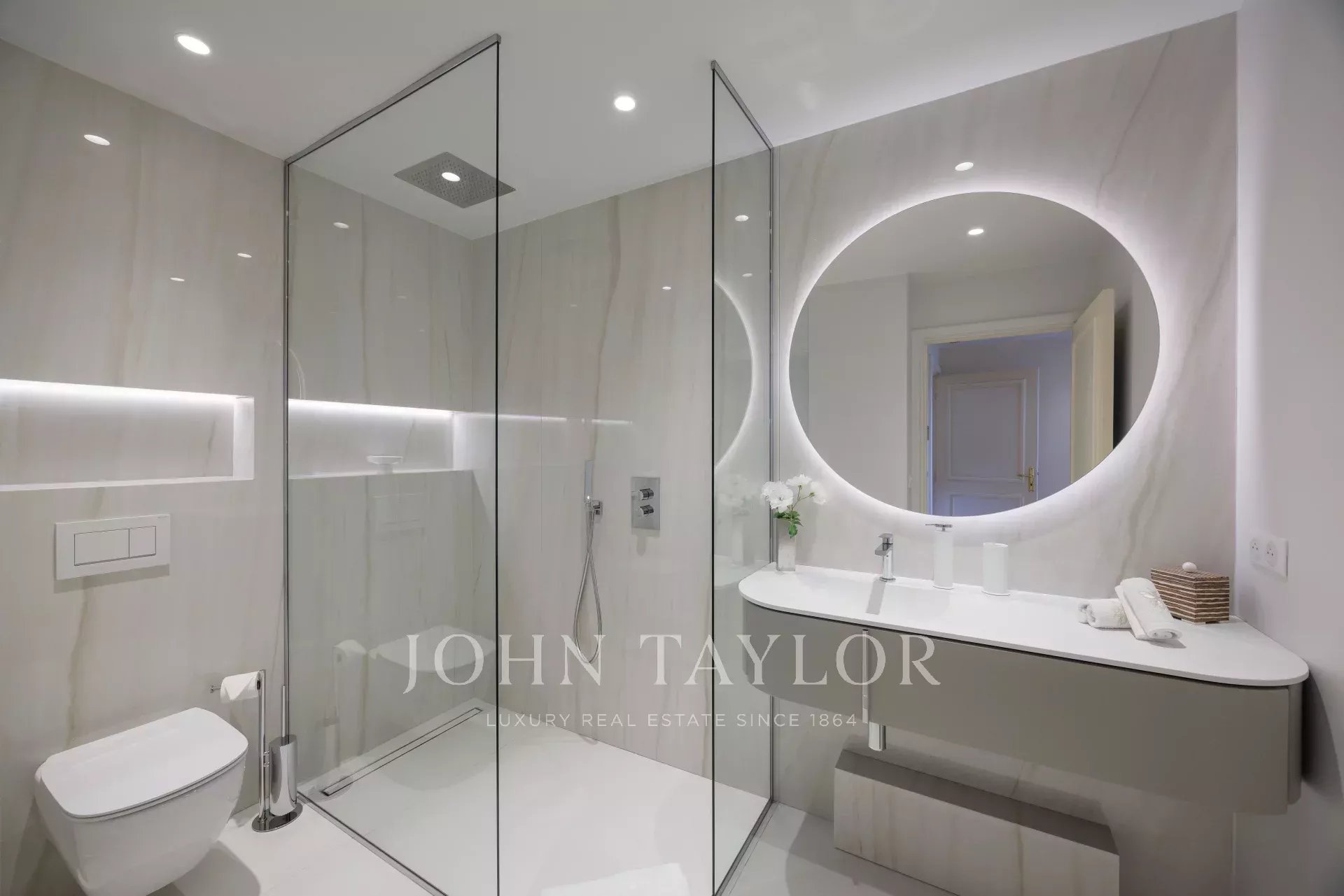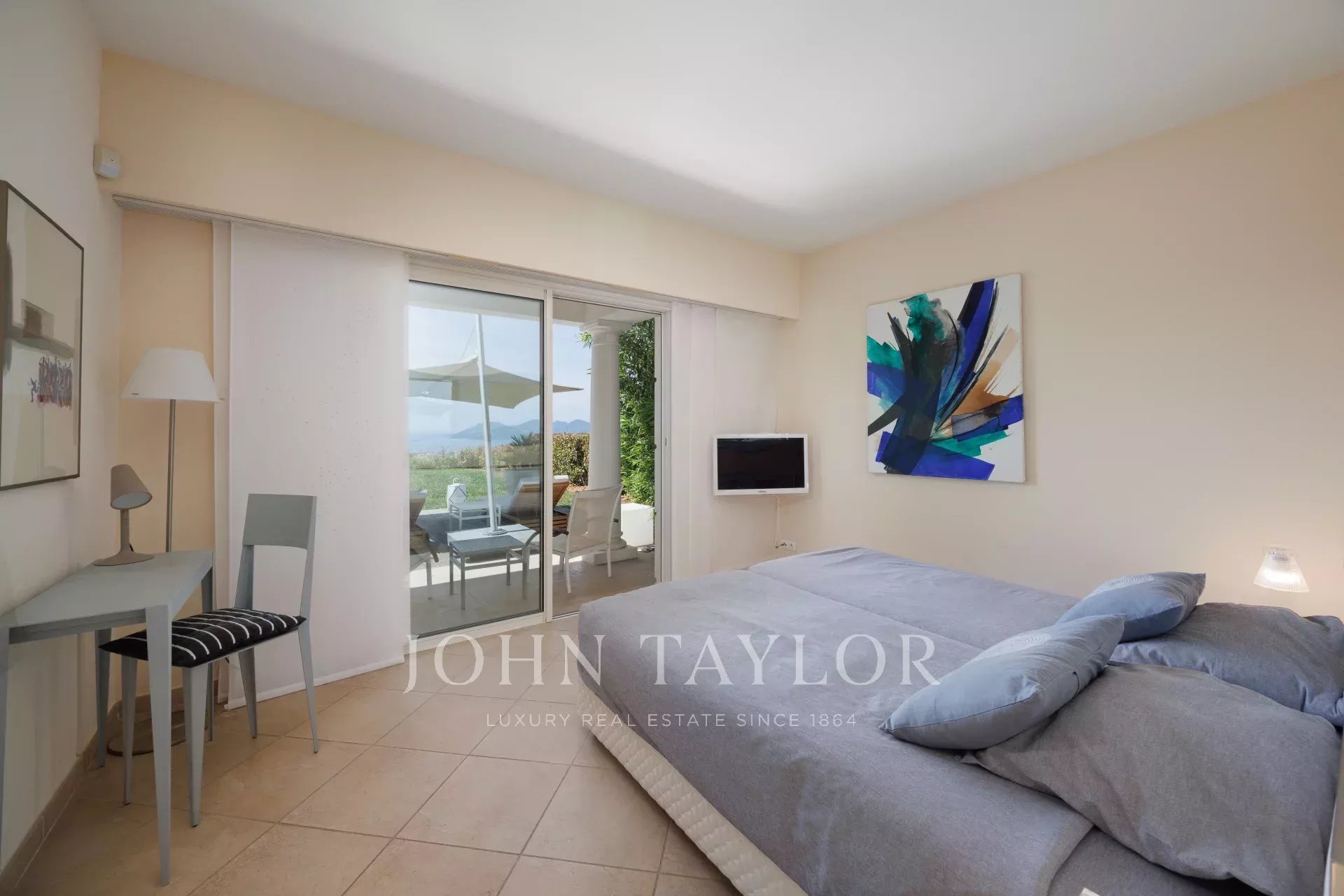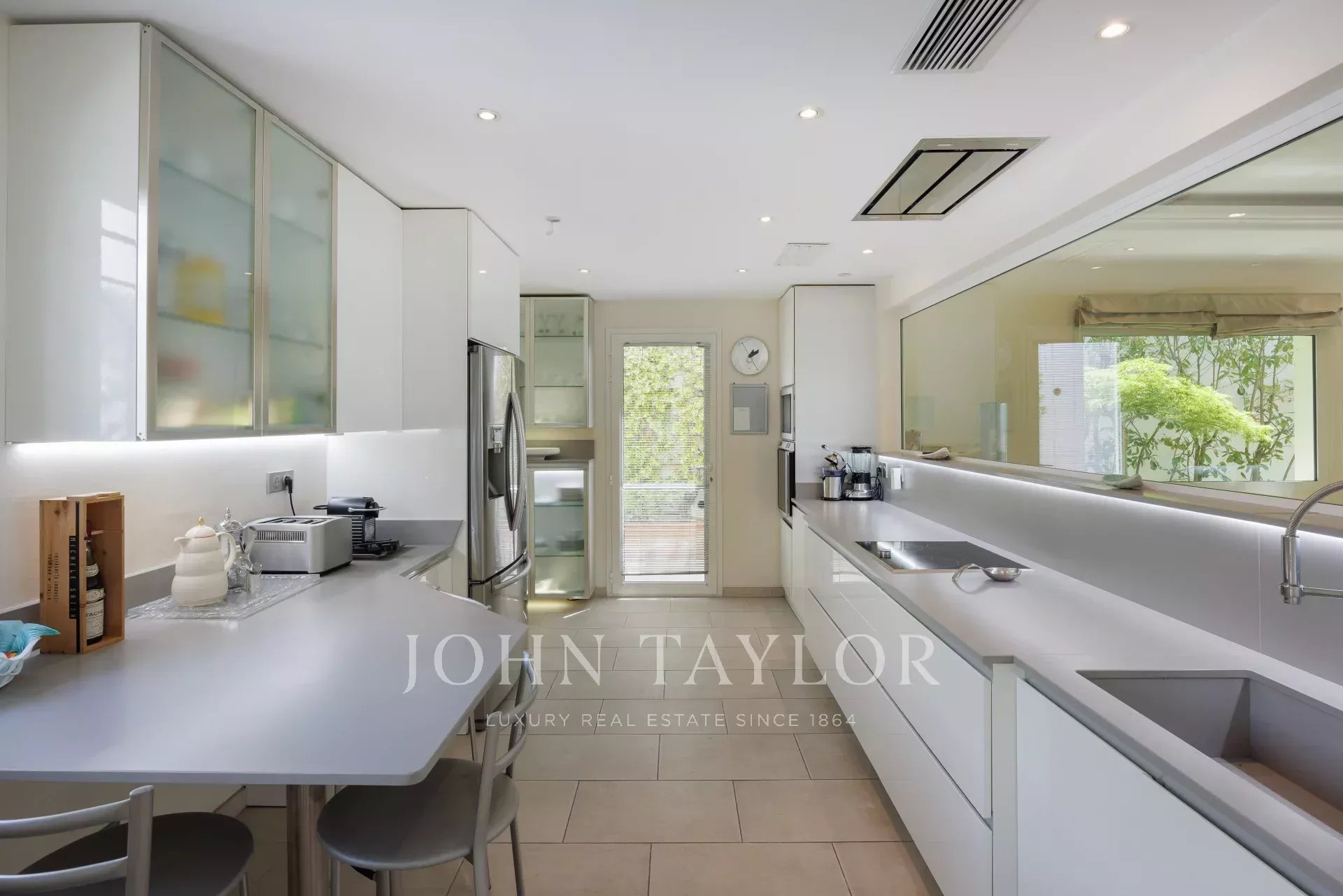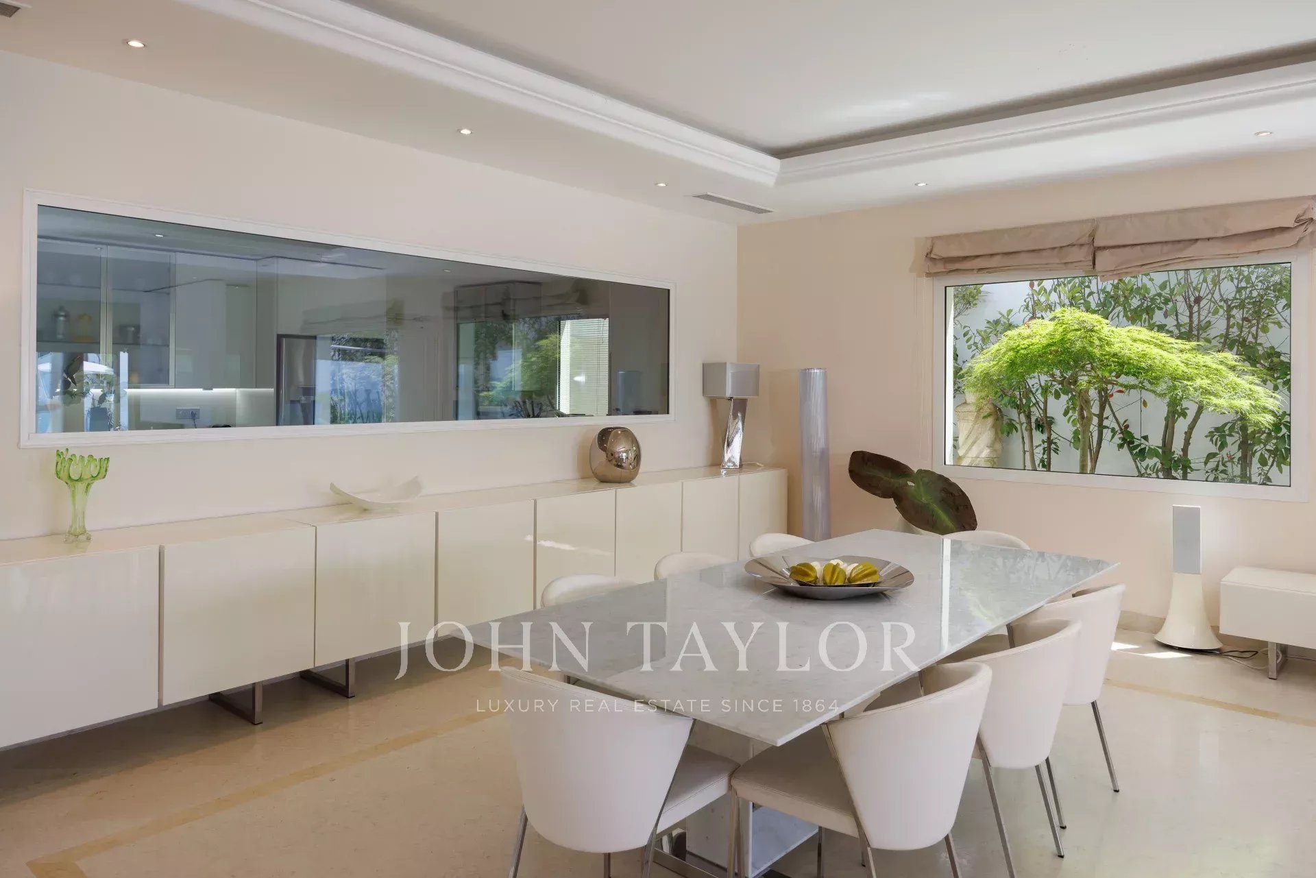 Situata sulle alture di Cannes, in una tenuta privata, questa splendida villa contemporanea di nuova costruzione è completamente climatizzata e vanta una splendida vista sul mare della baia di Cannes e sul massiccio dell'Esterel.