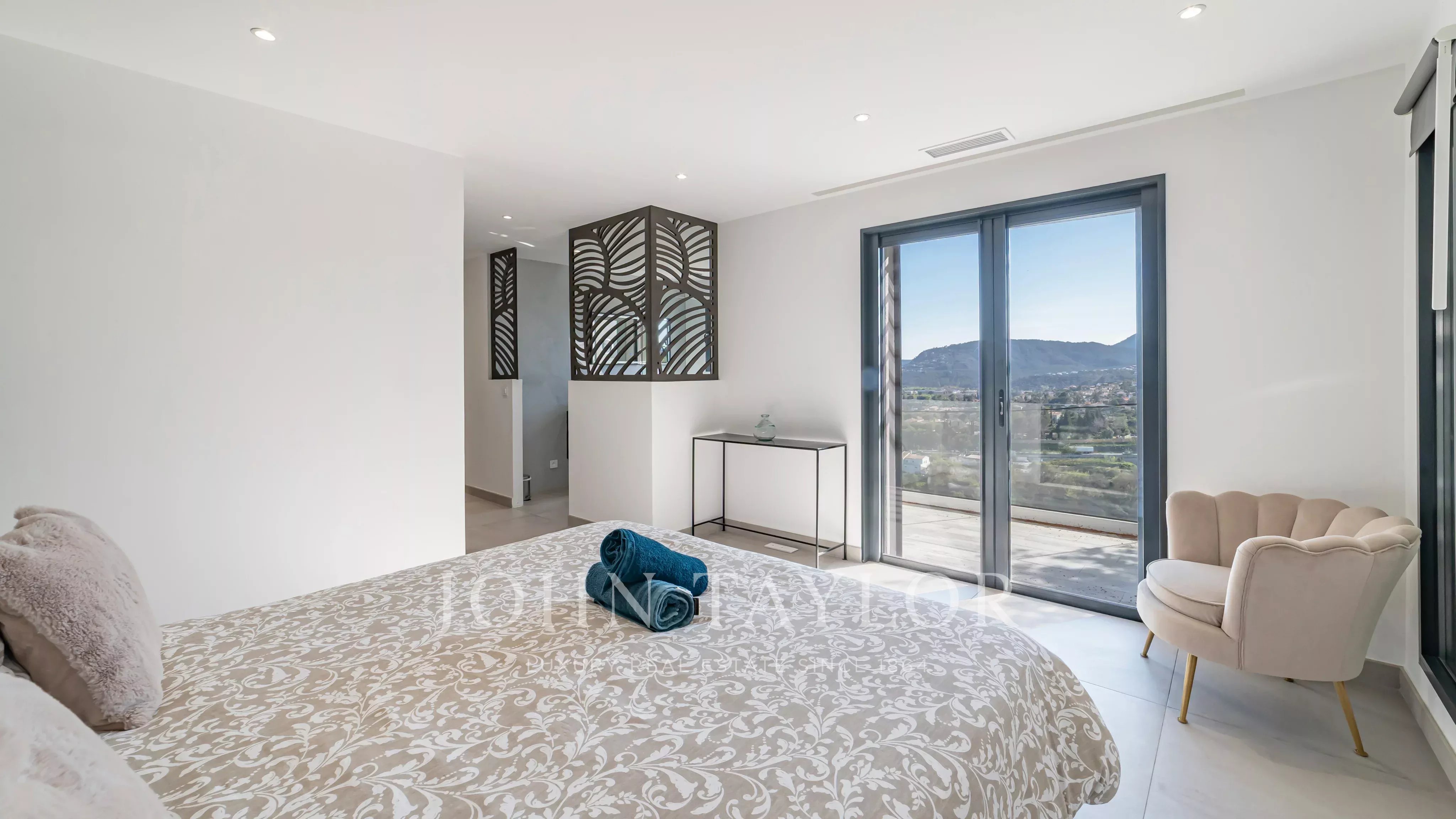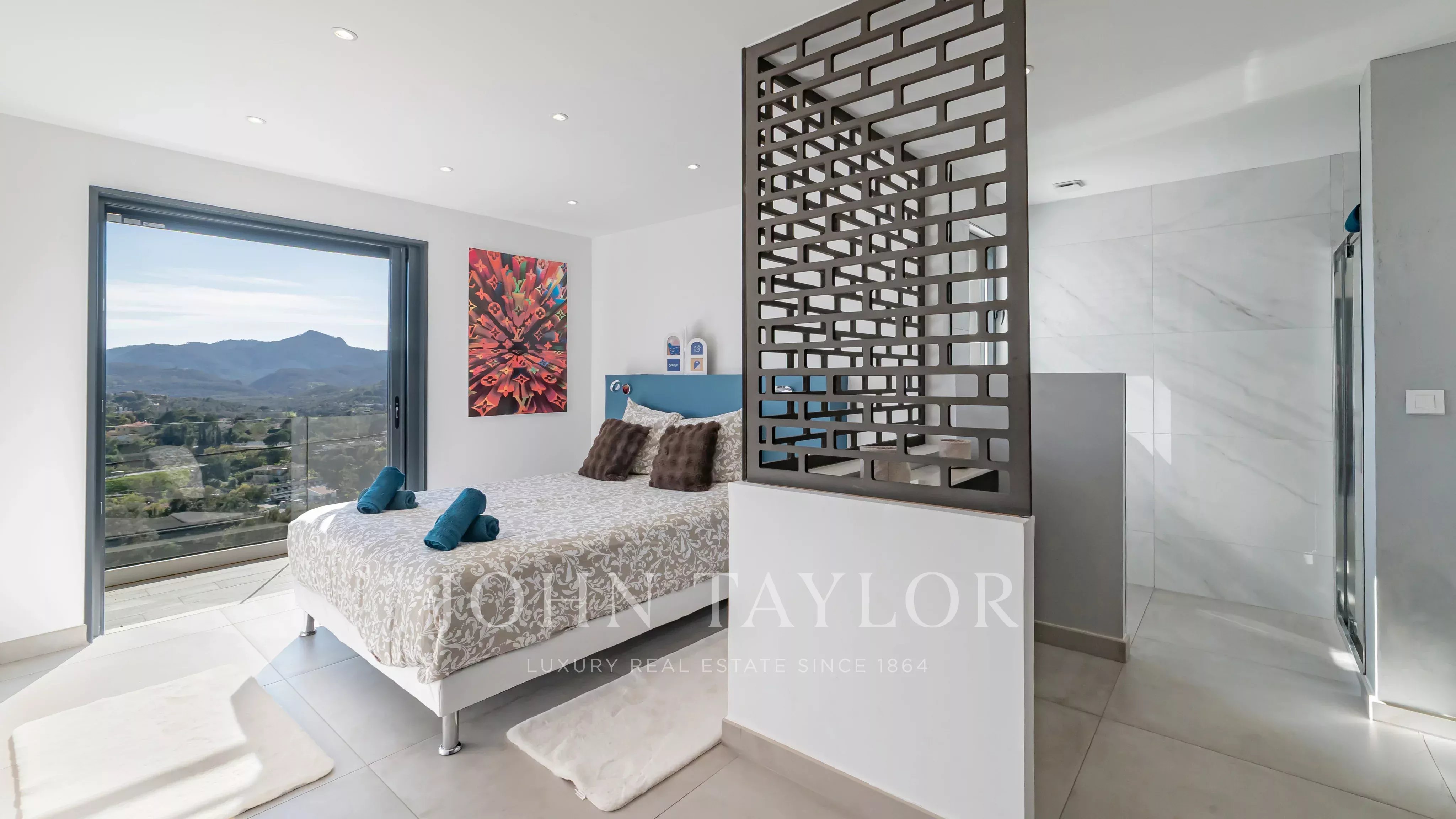 Situata a soli 5 minuti dal centro di Mandelieu, questa magnifica villa contemporanea vanta caratteristiche di alta gamma, un'architettura imponente e una vista ininterrotta sul mare e sulle isole Lérins.