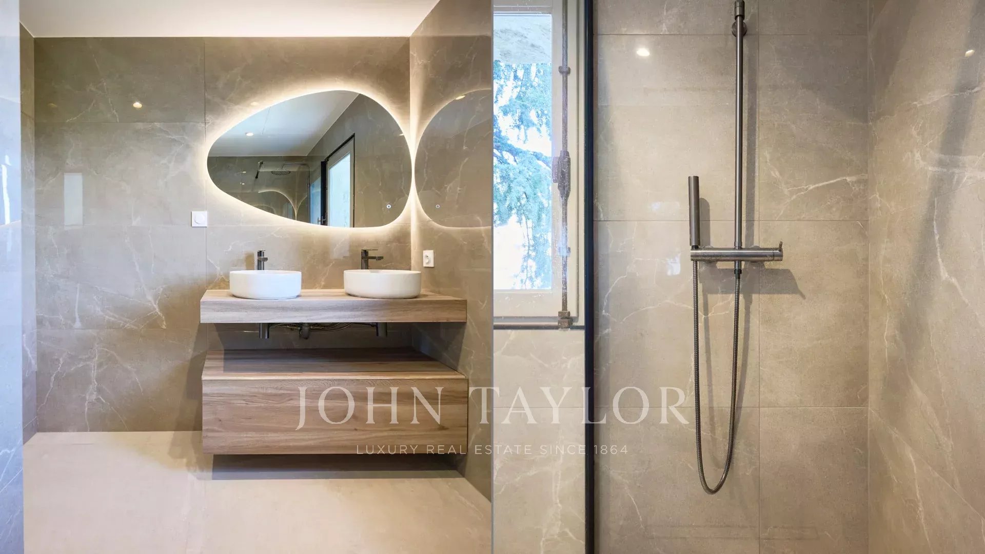 Con 301 m² di superficie abitabile su un terreno di 2147 m², il piano terra comprende un ingresso, un luminoso soggiorno di 120 m², una cucina a pianta aperta, un ufficio, una toilette per gli ospiti e un salotto. Primo piano: camera da letto principale con terrazza, spogliatoio e bagno, WC. Piano giardino: camera da letto con bagno privato con doccia, WC e sala giochi, due camere da letto che condividono un bagno con doccia e WC.