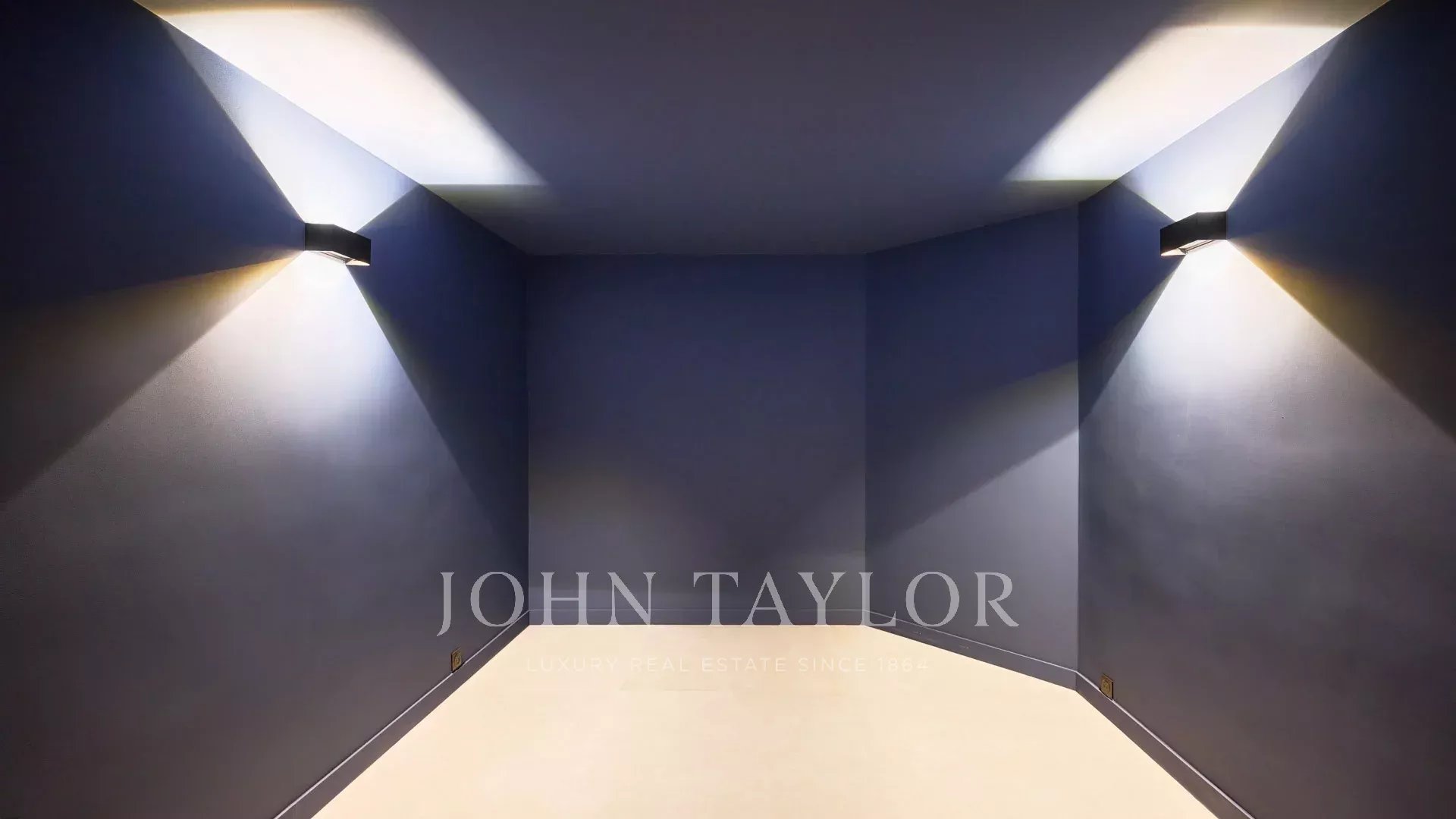 Annessi: garage di 24 m², lavanderia, cantina, locale caldaia, stanza di riserva che potrebbe essere utilizzata come ufficio aggiuntivo o spogliatoio, sala cinema.