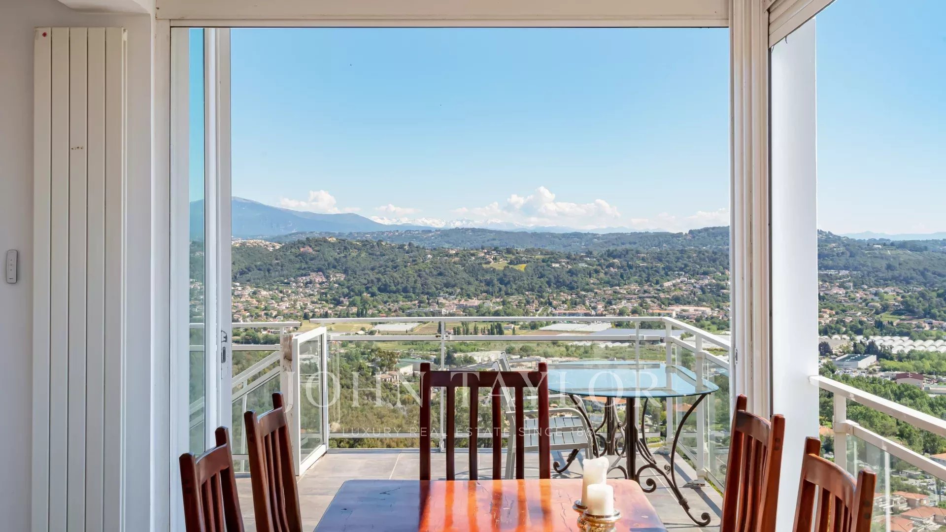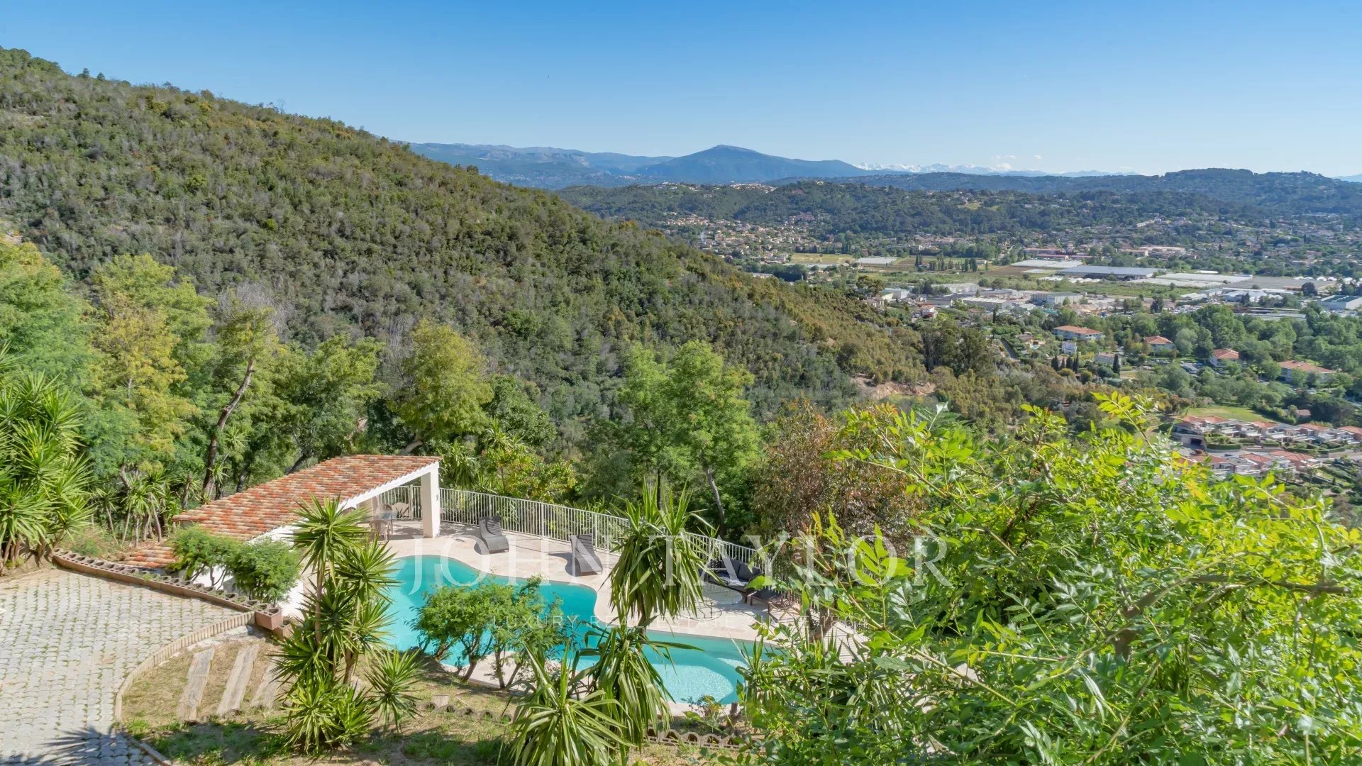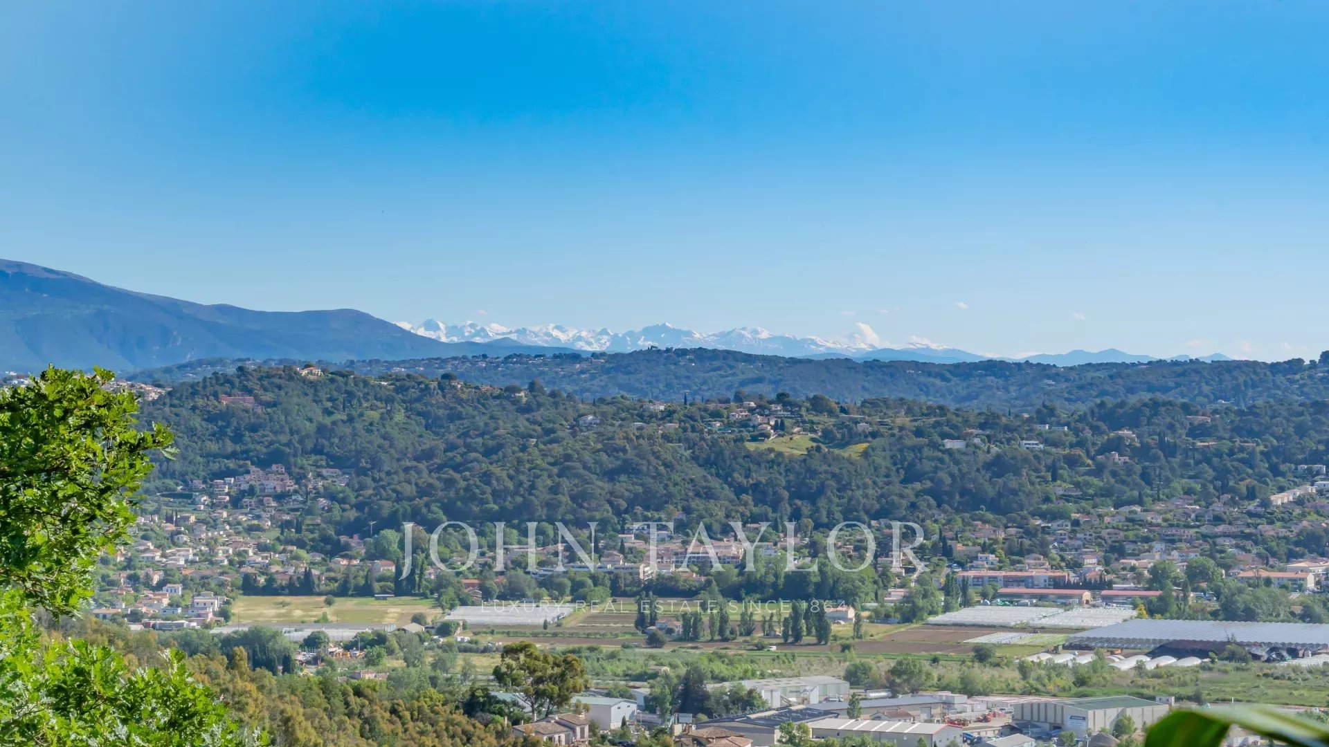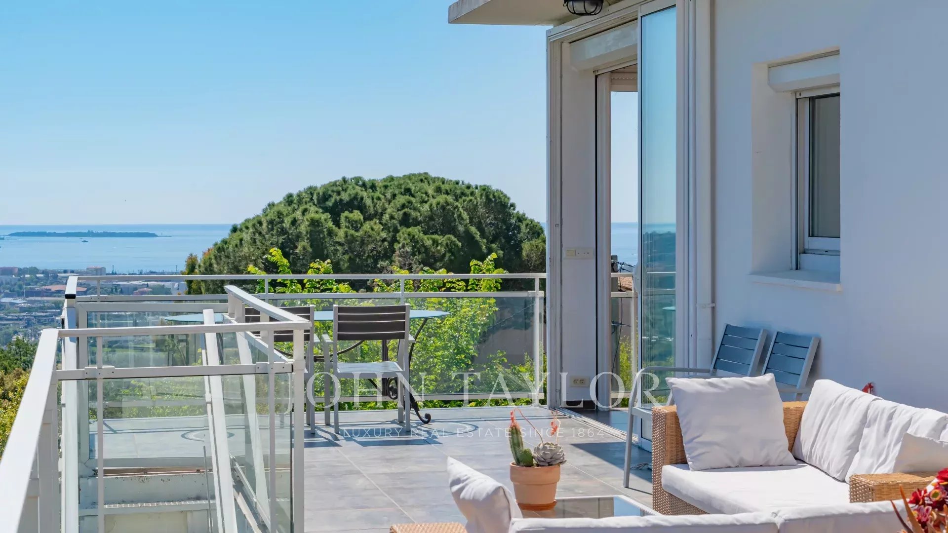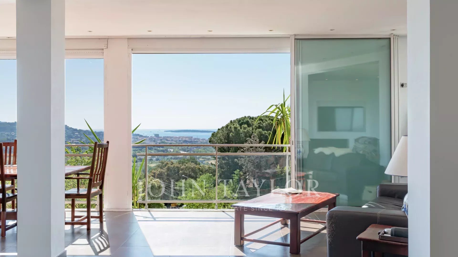Situata sulla collina di Mandelieu, questa villa in stile contemporaneo vanta una vista panoramica mozzafiato a 270 gradi sulle isole, sulla baia di Cannes, sul massiccio dell'Estérel e sulle Alpi.