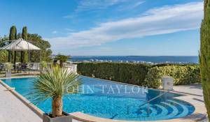 Situata in una zona residenziale vicino al centro di Mandelieu, questa splendida villa esposta a sud con piscina a sfioro vanta una vista panoramica sulla baia di Cannes.