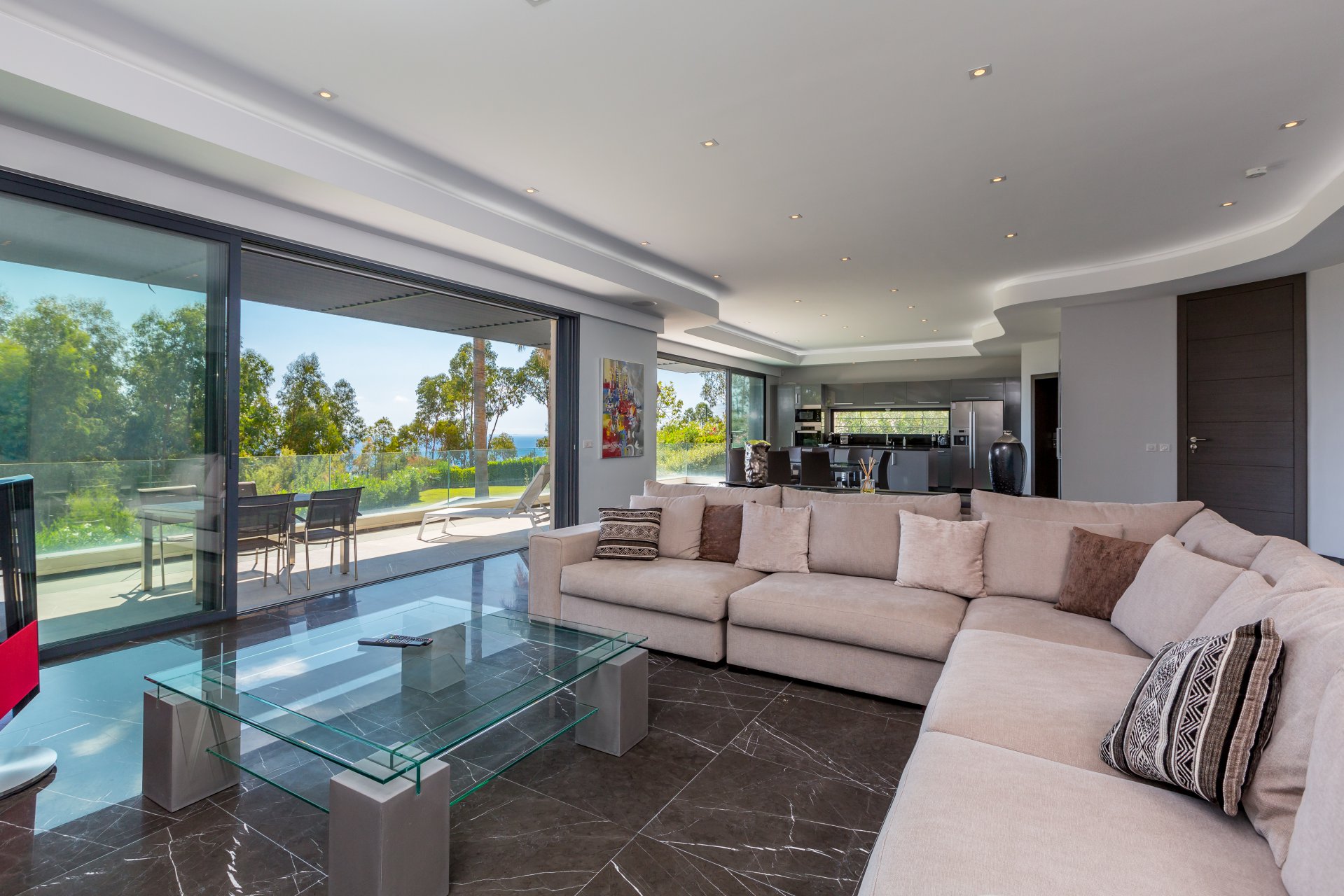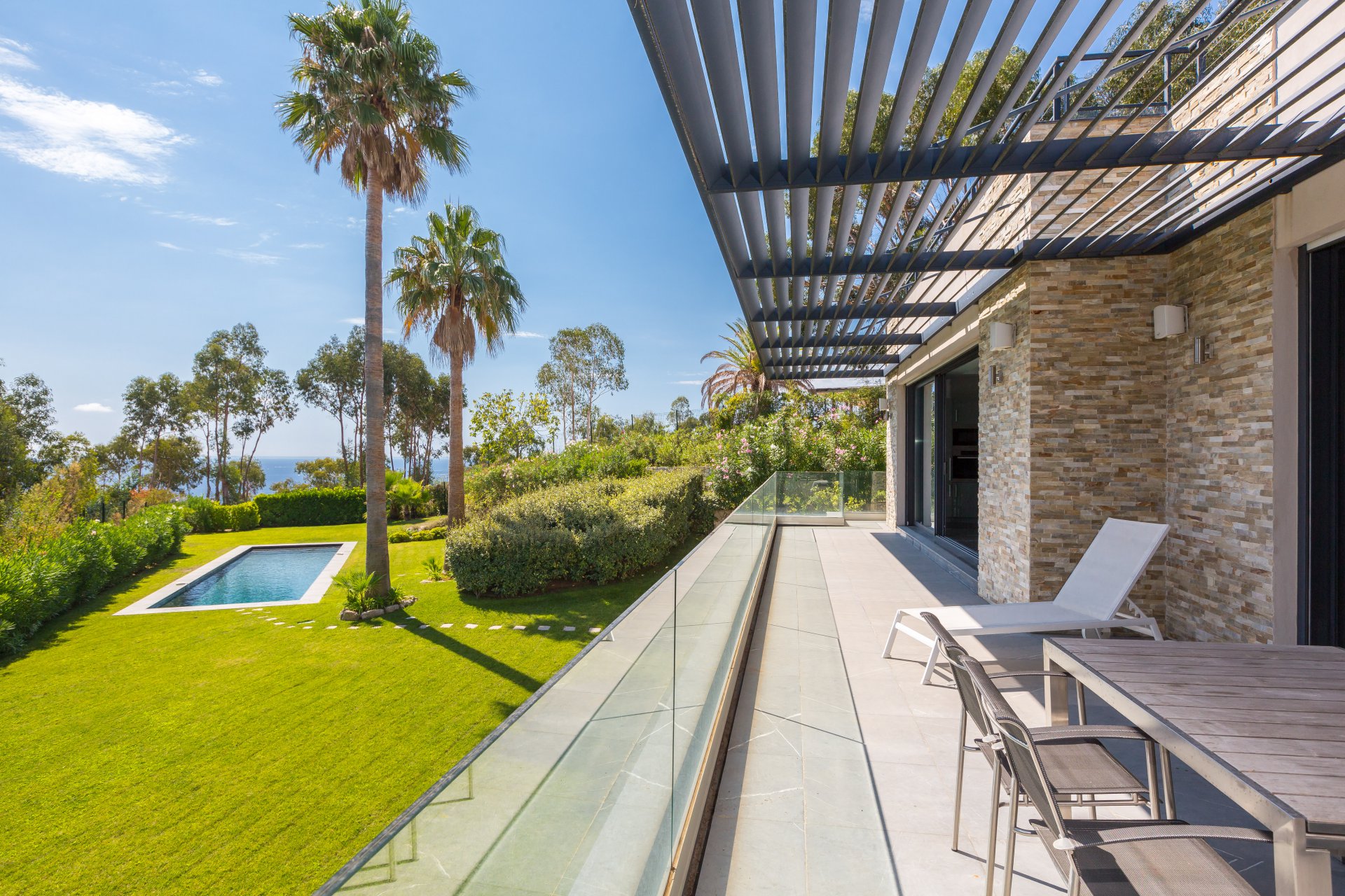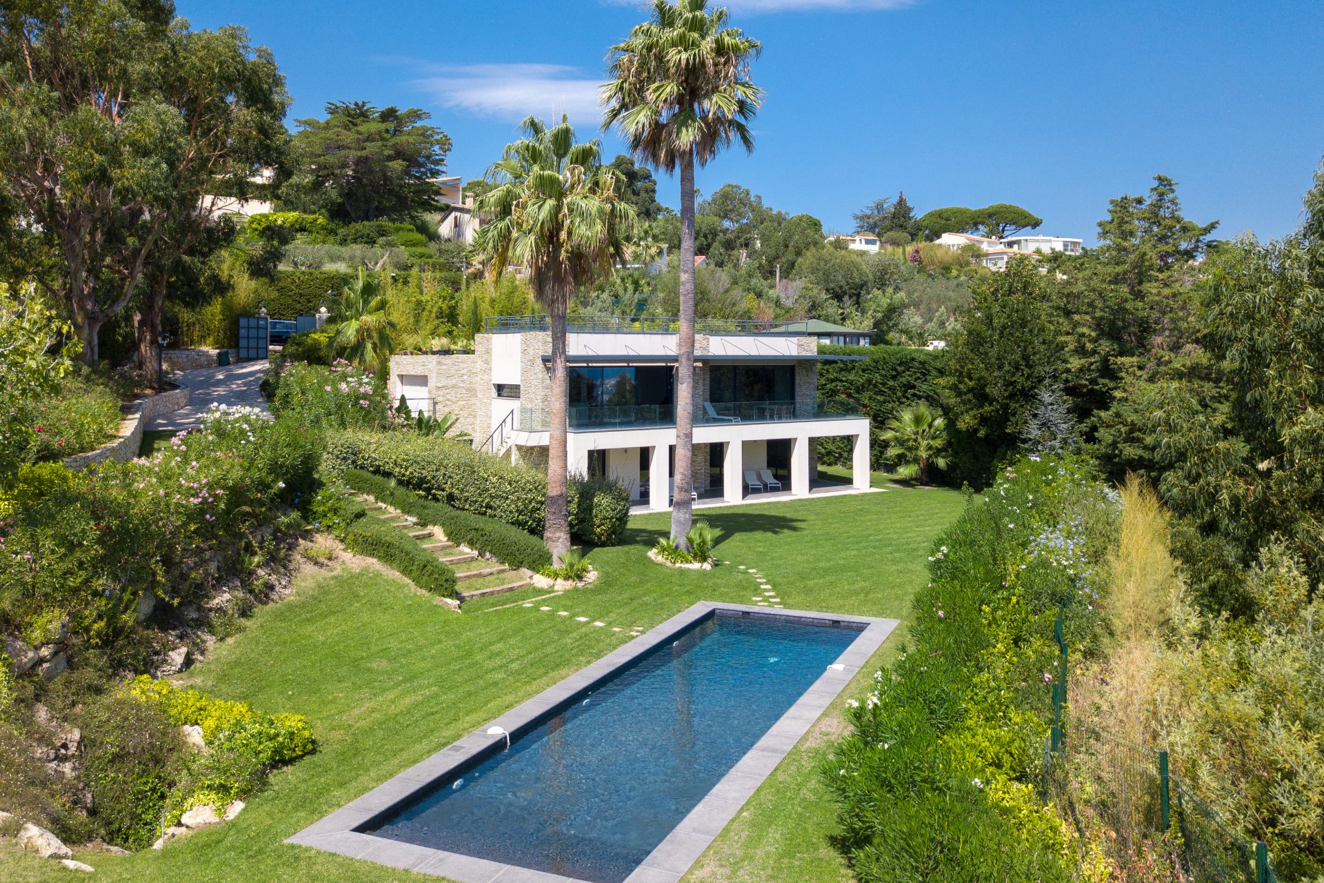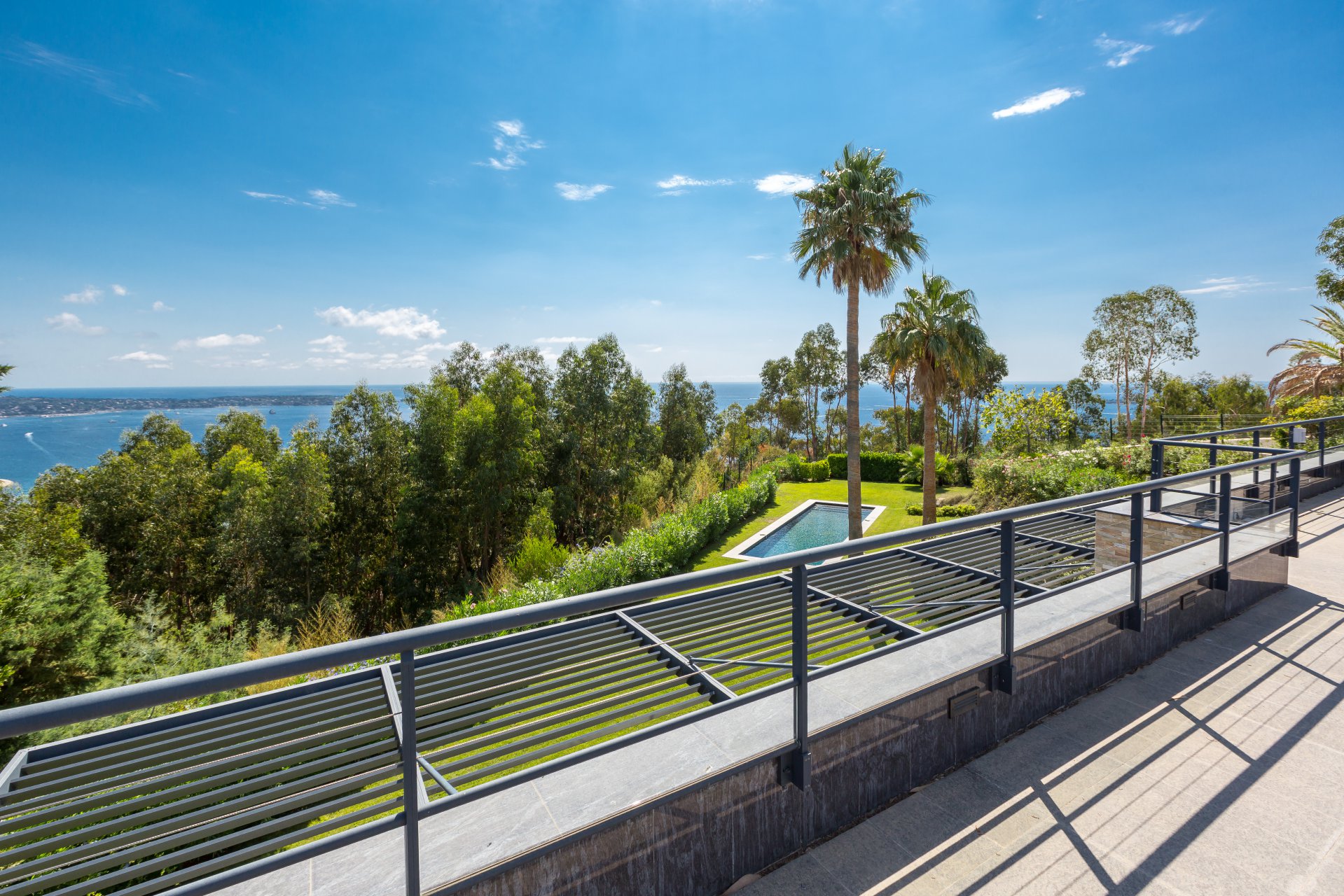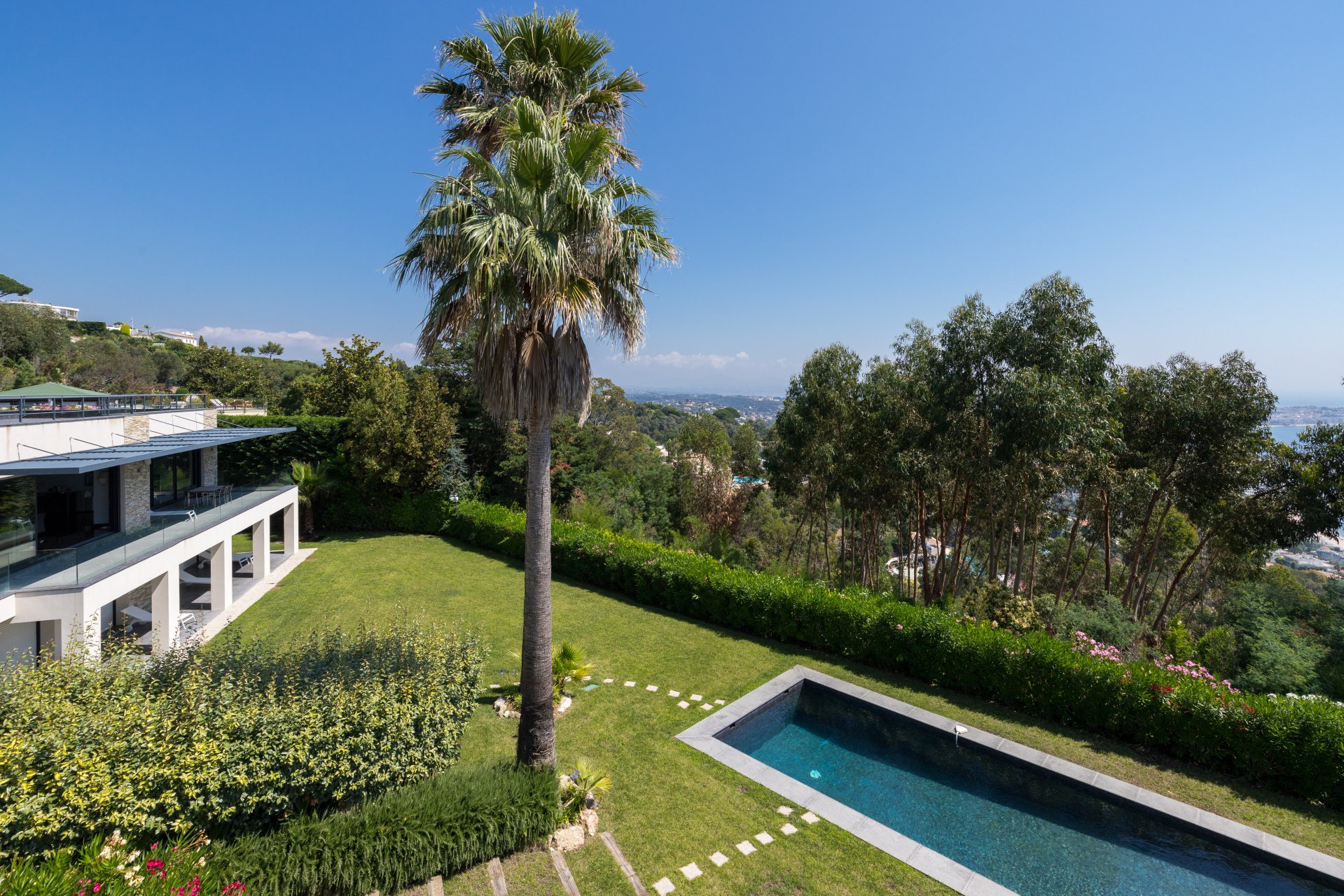 Esclusivo - Nel cuore di un ambiente verde, questa superba villa contemporanea vanta una vista panoramica sul mare che si estende fino a Cap d'Antibes.