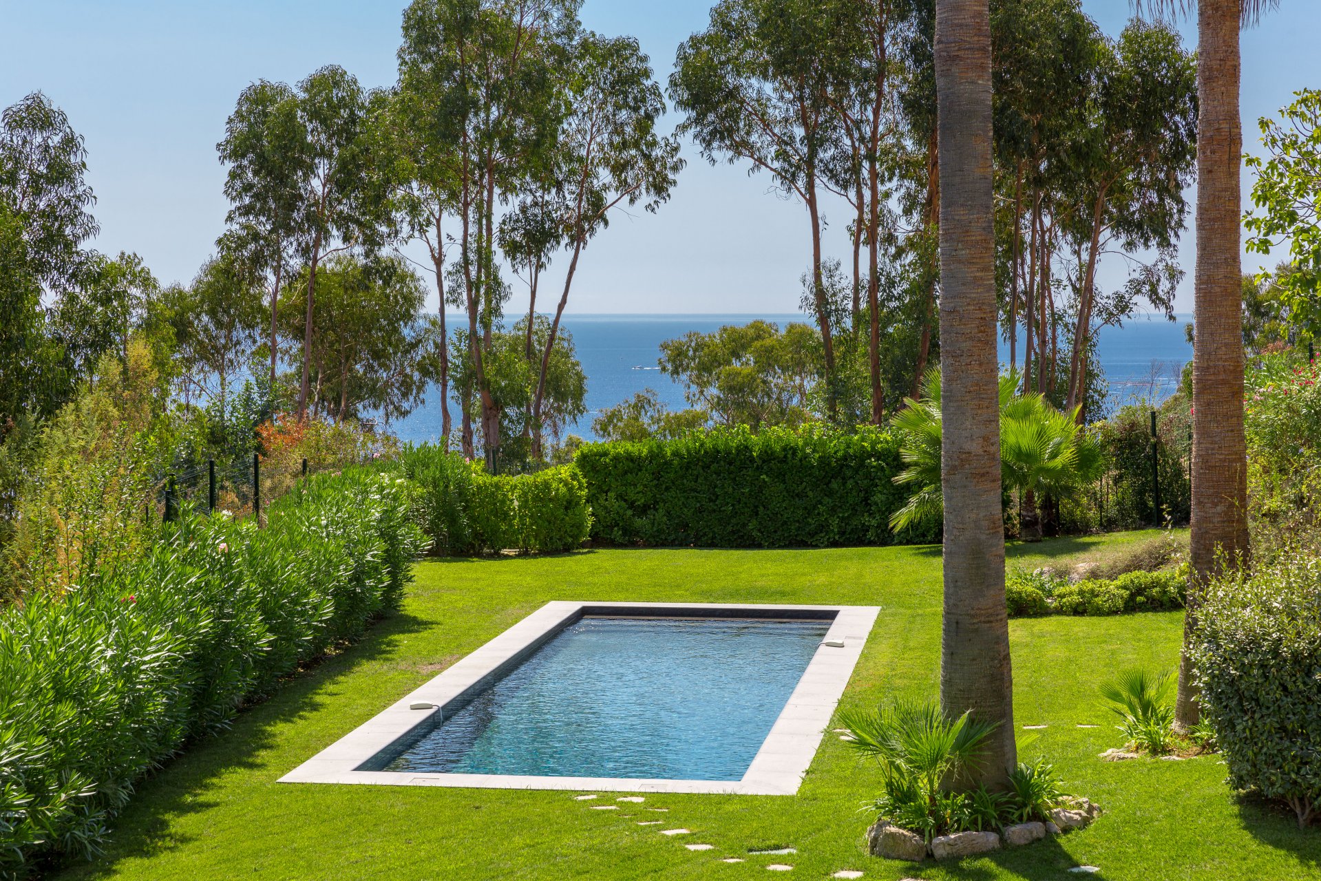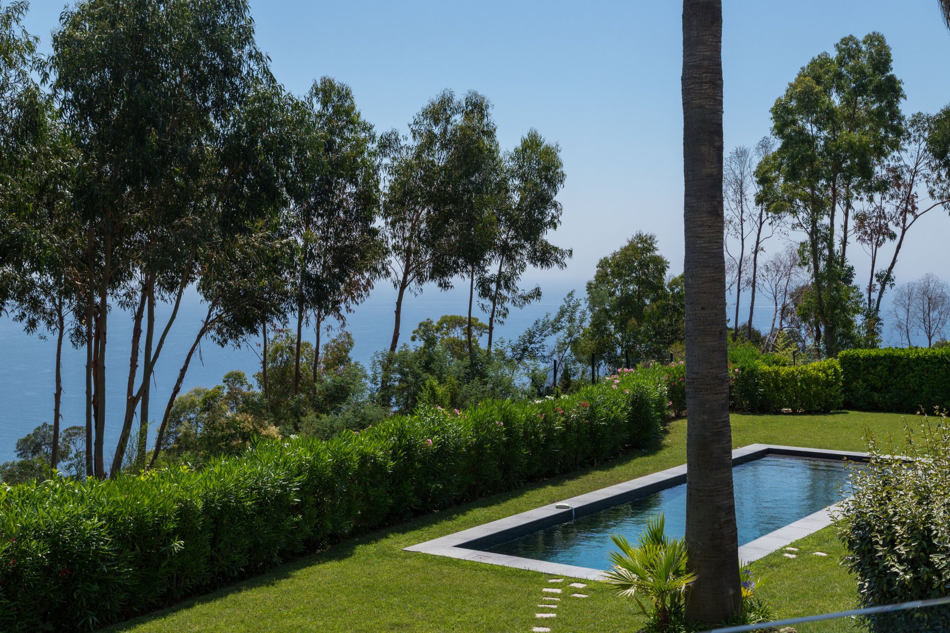 La villa è completata da un magnifico giardino pianeggiante e da un'elegante piscina, ideale per rilassarsi in totale privacy.