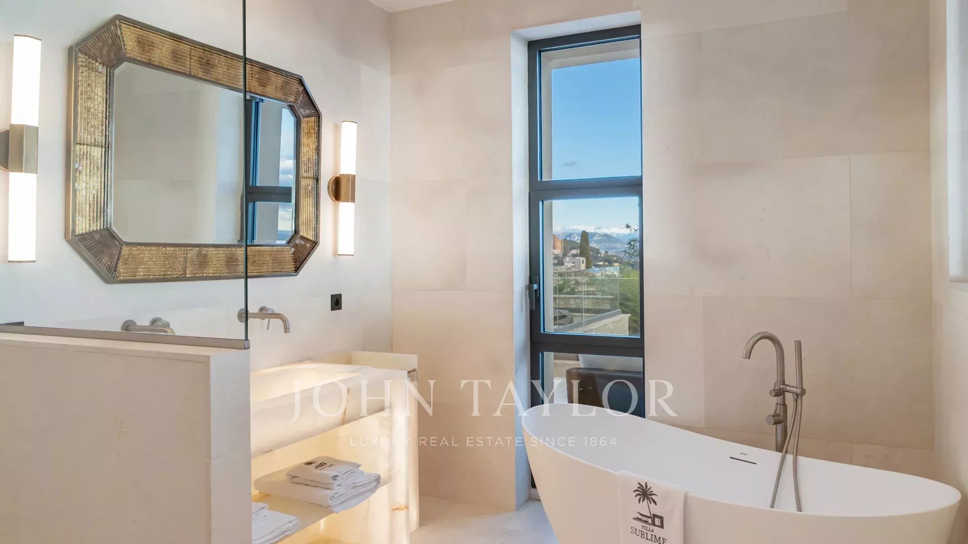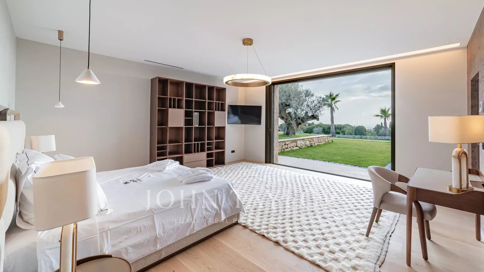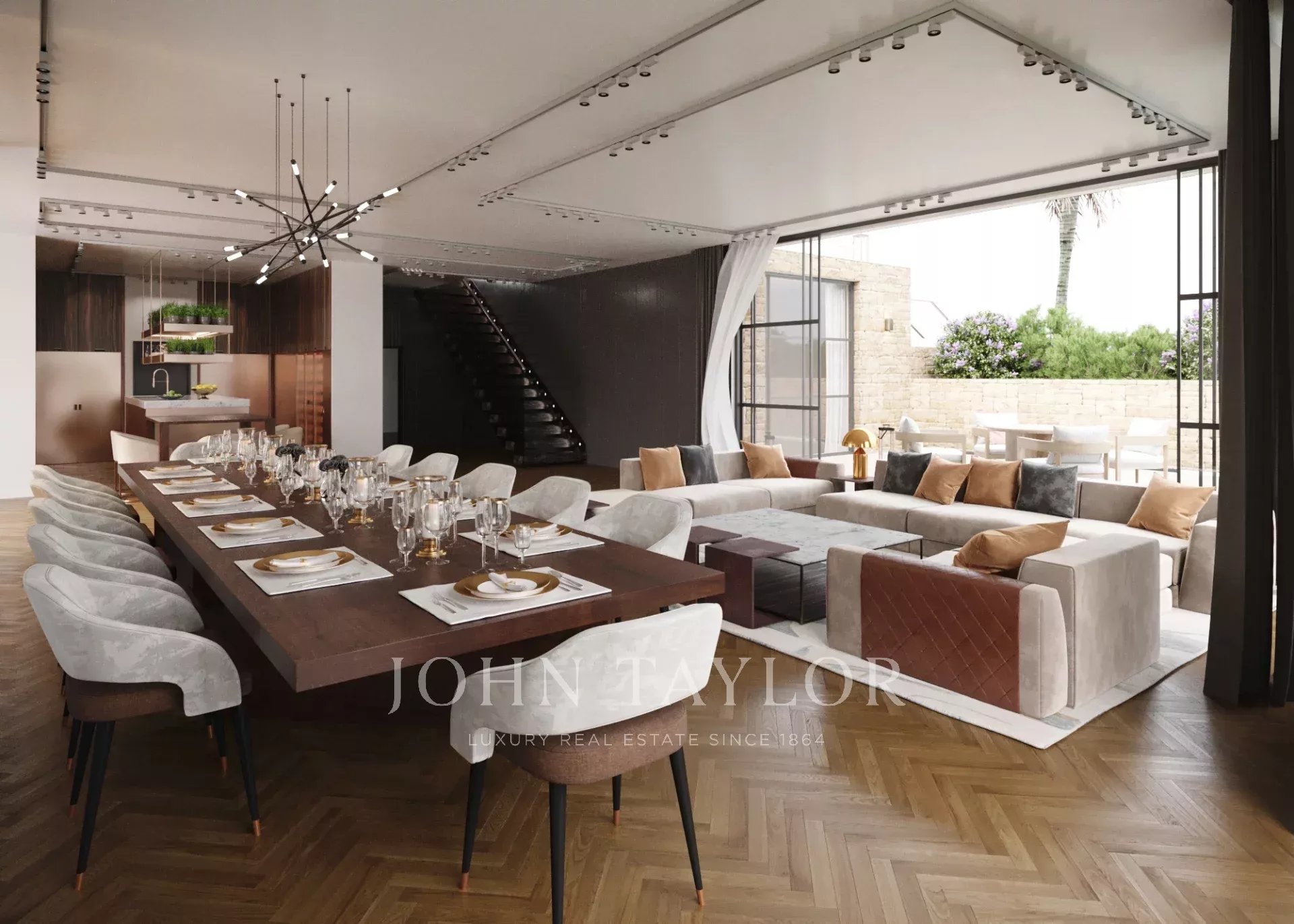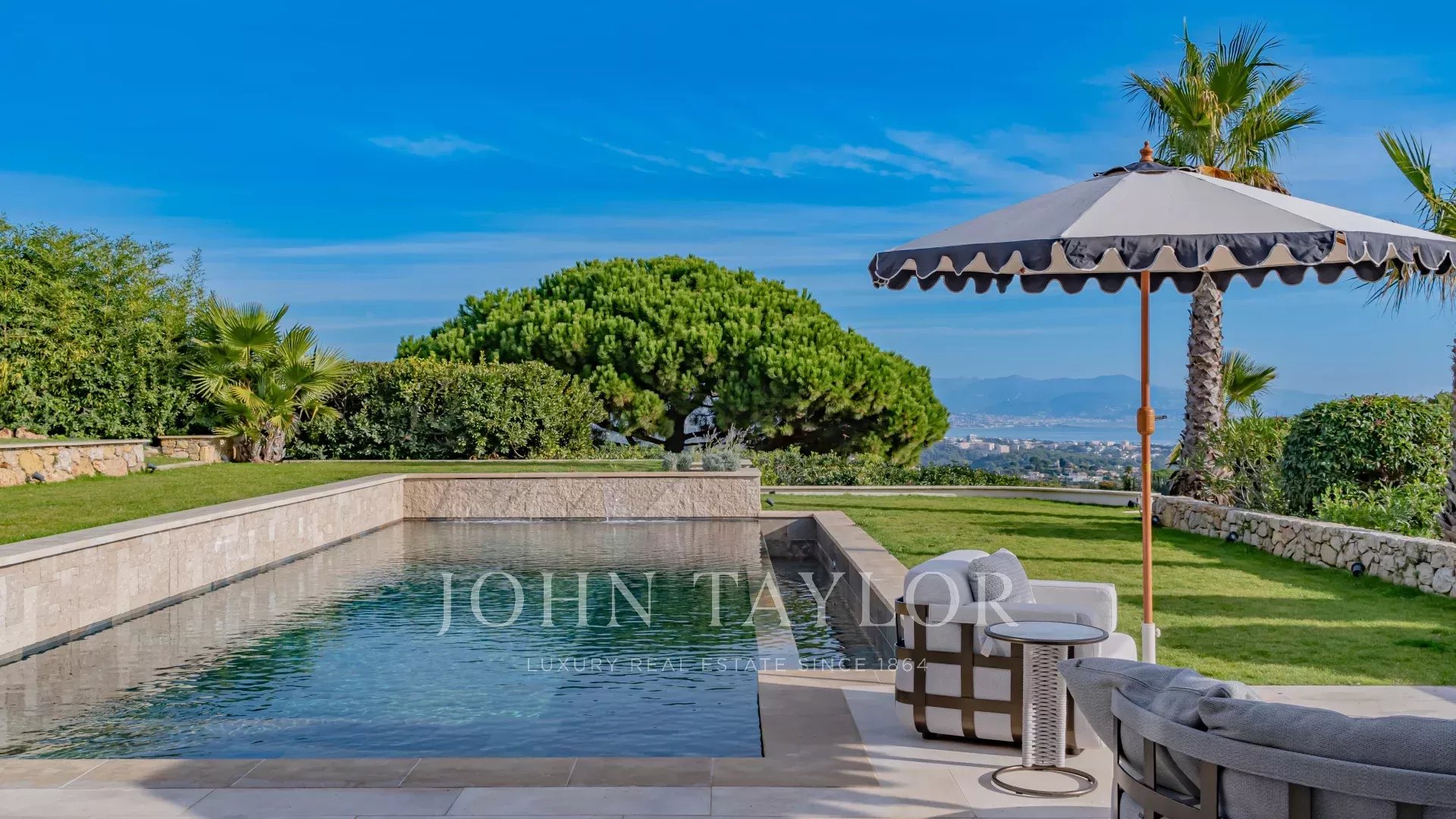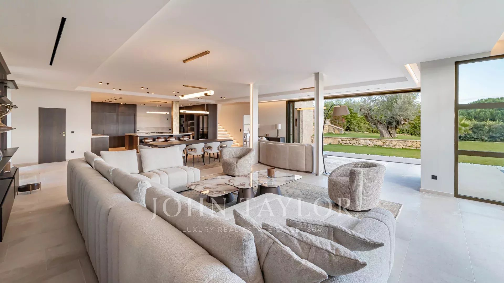 Questa villa contemporanea di circa 400 m² si trova in una tenuta recintata nella prestigiosa e silenziosa zona residenziale di Super Cannes. Situata in posizione dominante su un terreno di 2.090 m², la proprietà gode di una vista sublime che spazia da Cap d'Antibes alle Alpi fino alle montagne italiane.