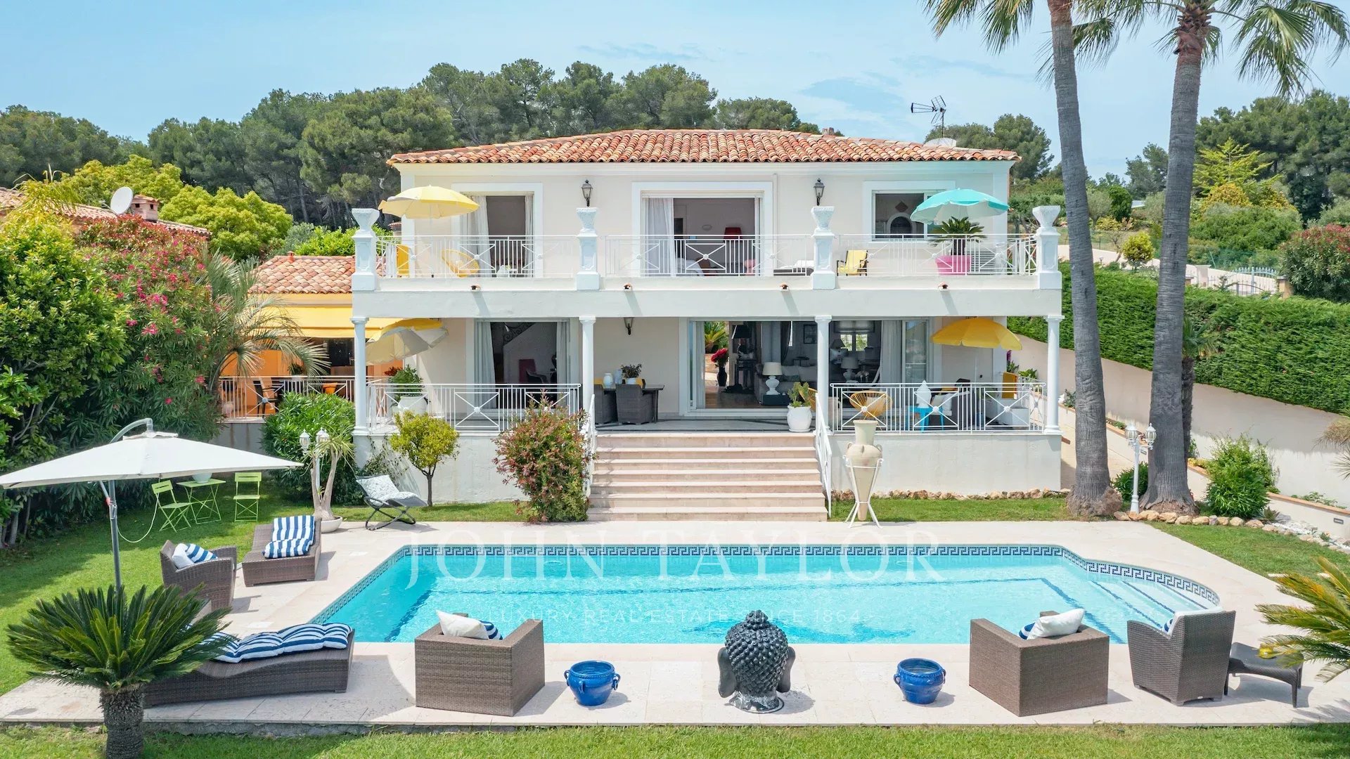 Una piscina e numerose terrazze completano questa rara proprietà in vendita.